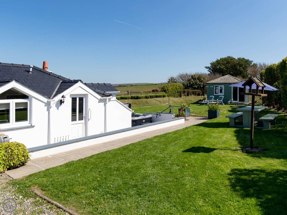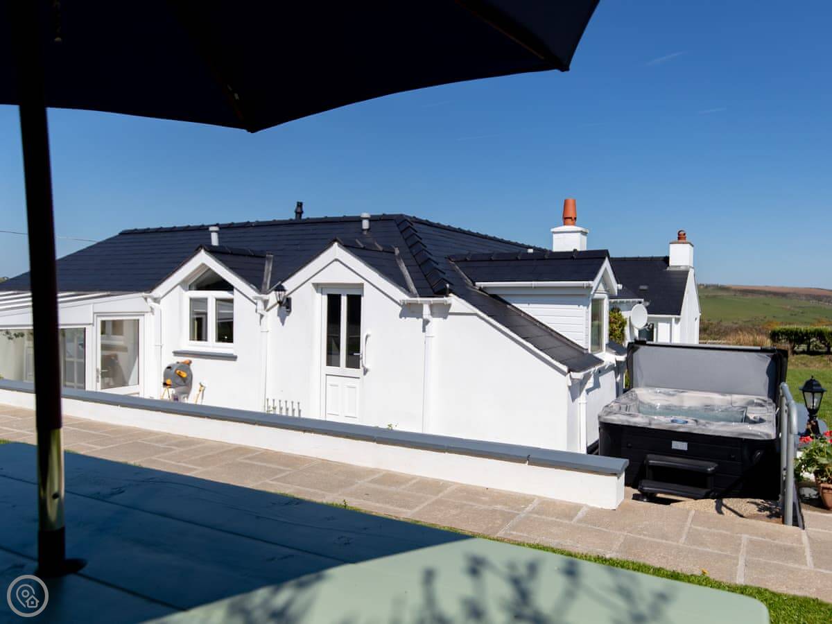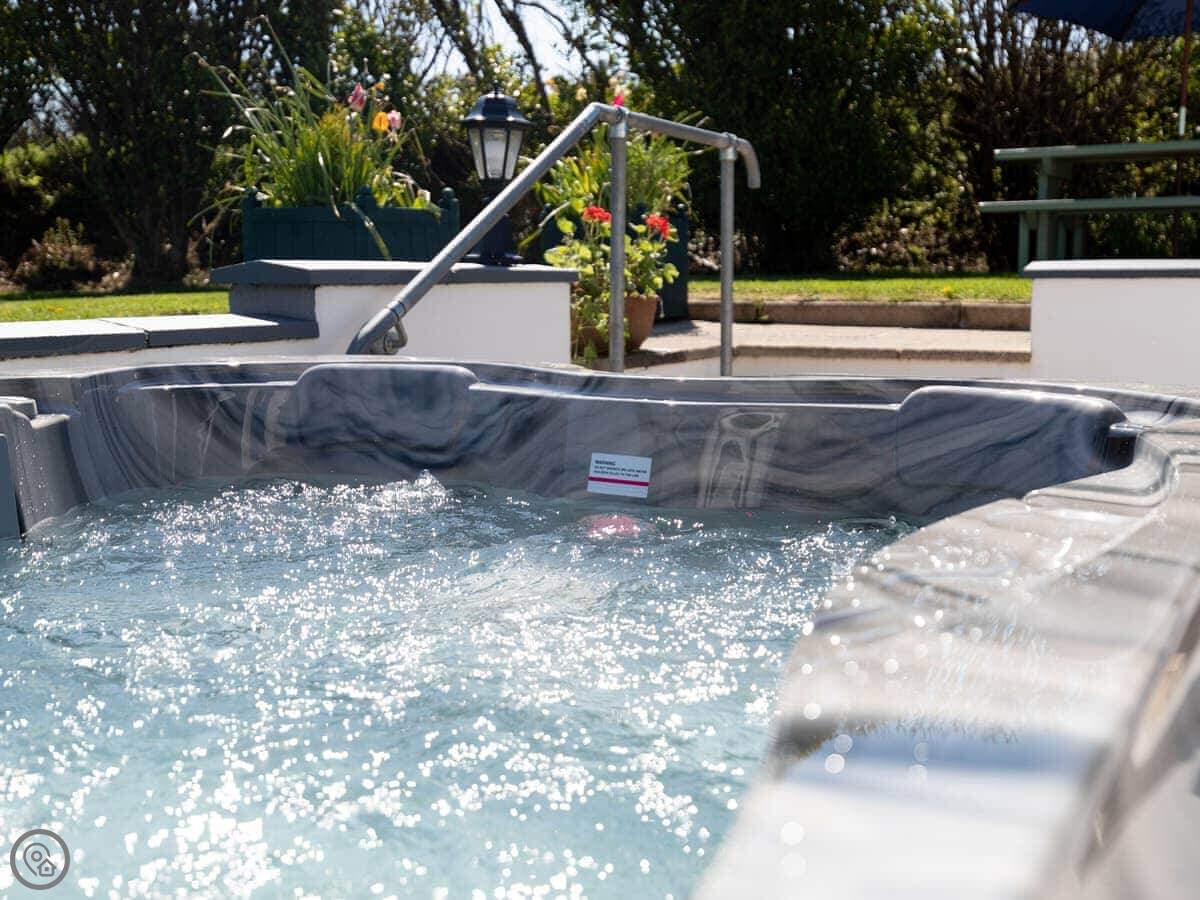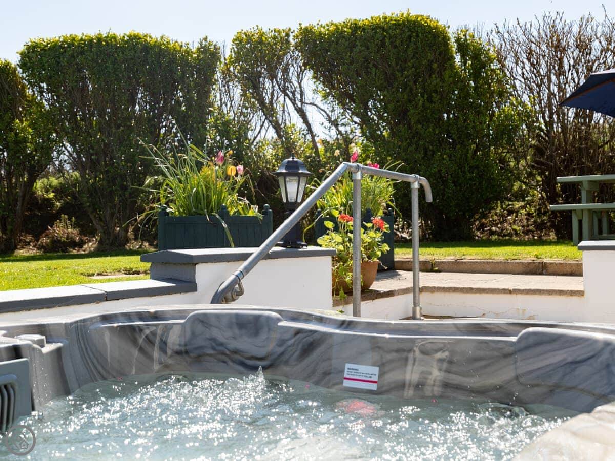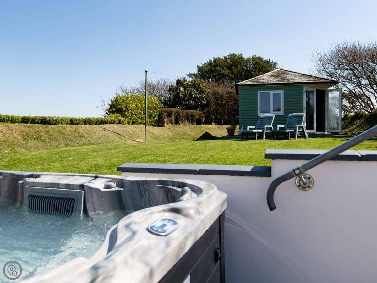 The garden is big and enclosed. There’s a summerhouse at the bottom if you want some quiet. The hot tub is on the patio at the front.