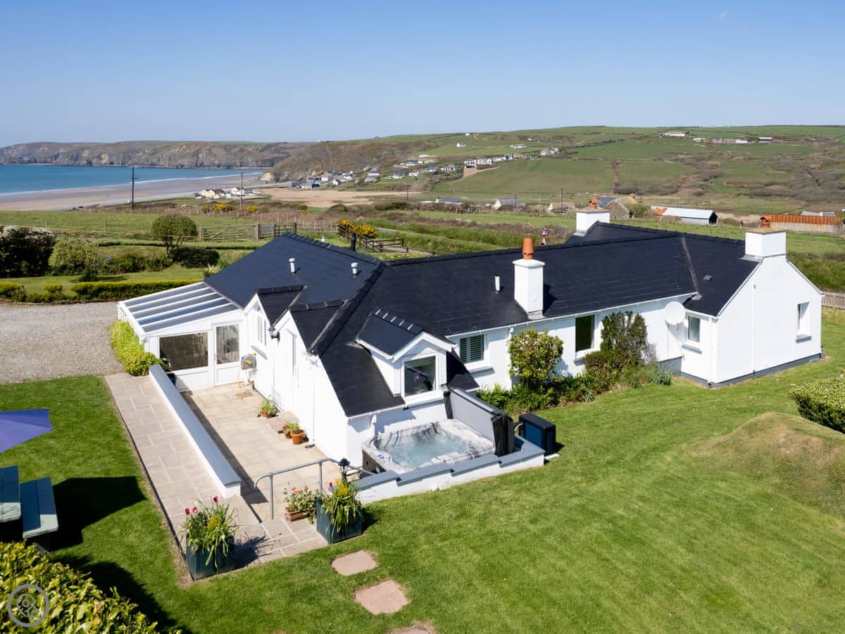 Southwood Cottage is on the hill above Newgale beach. It’s detached, and looks out over the bay. You can see the sea from the front.