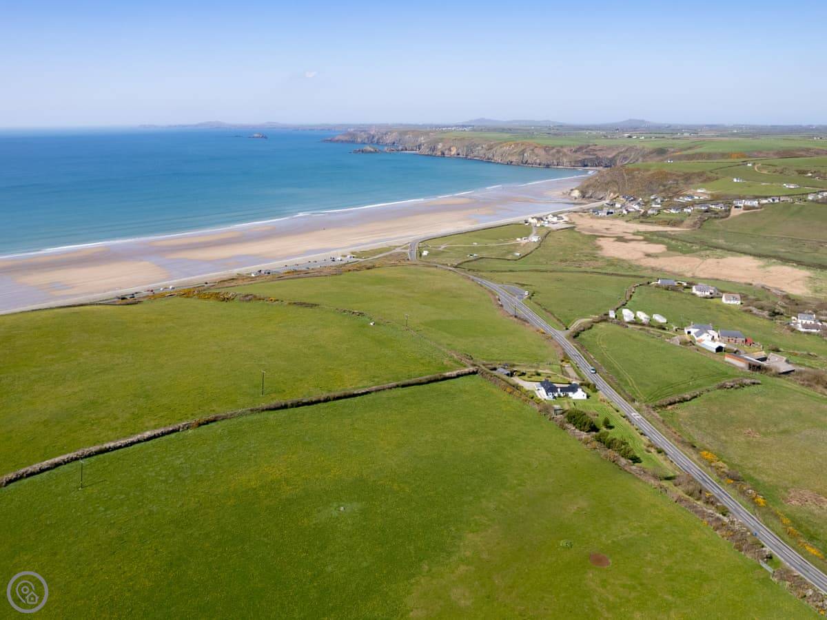 You can walk down to Newgale beach in about five minutes. A public footpath runs past the bottom of the garden. The sea is very cold most of the year, but the sand is great and the surfers are out in all weathers.
