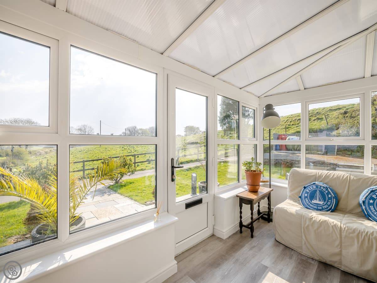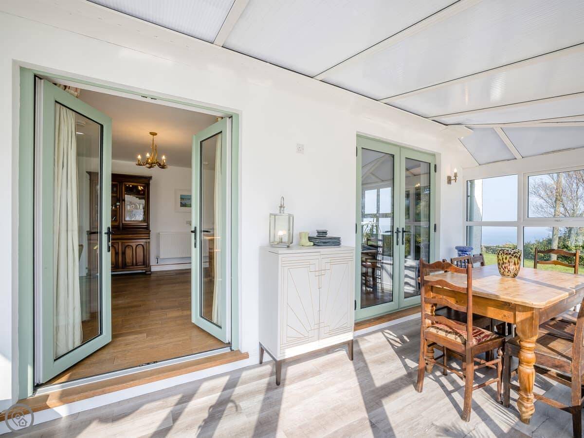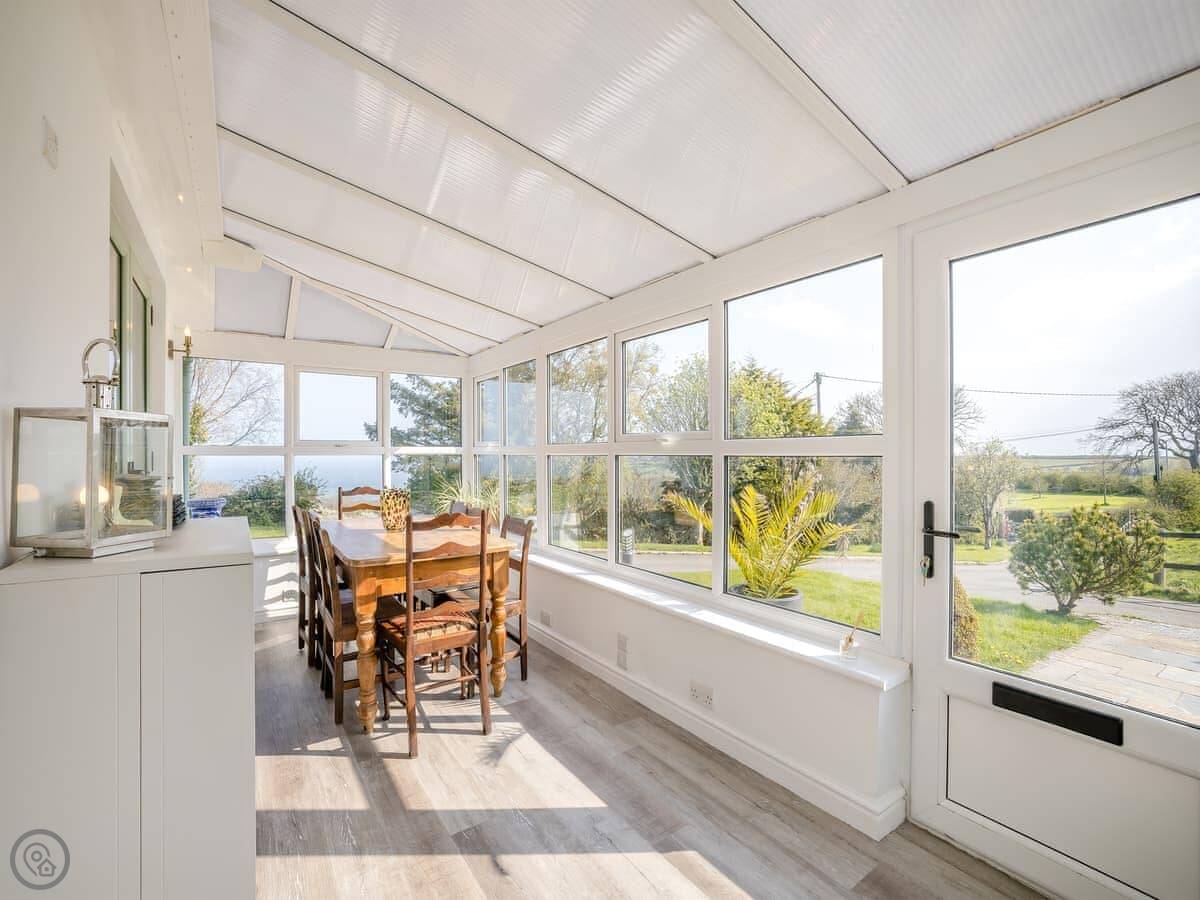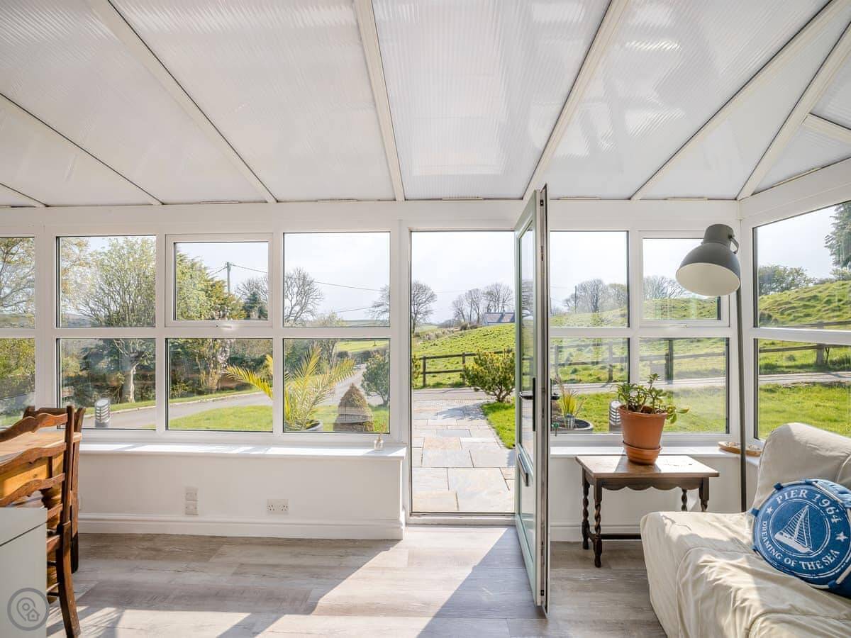 A couple of things to know. The stairs are normal house stairs, not too steep. There's a baby grand piano in the living room. If you can play, great. If not, it's just there. The conservatory gets the morning sun and is a good spot for breakfast.
