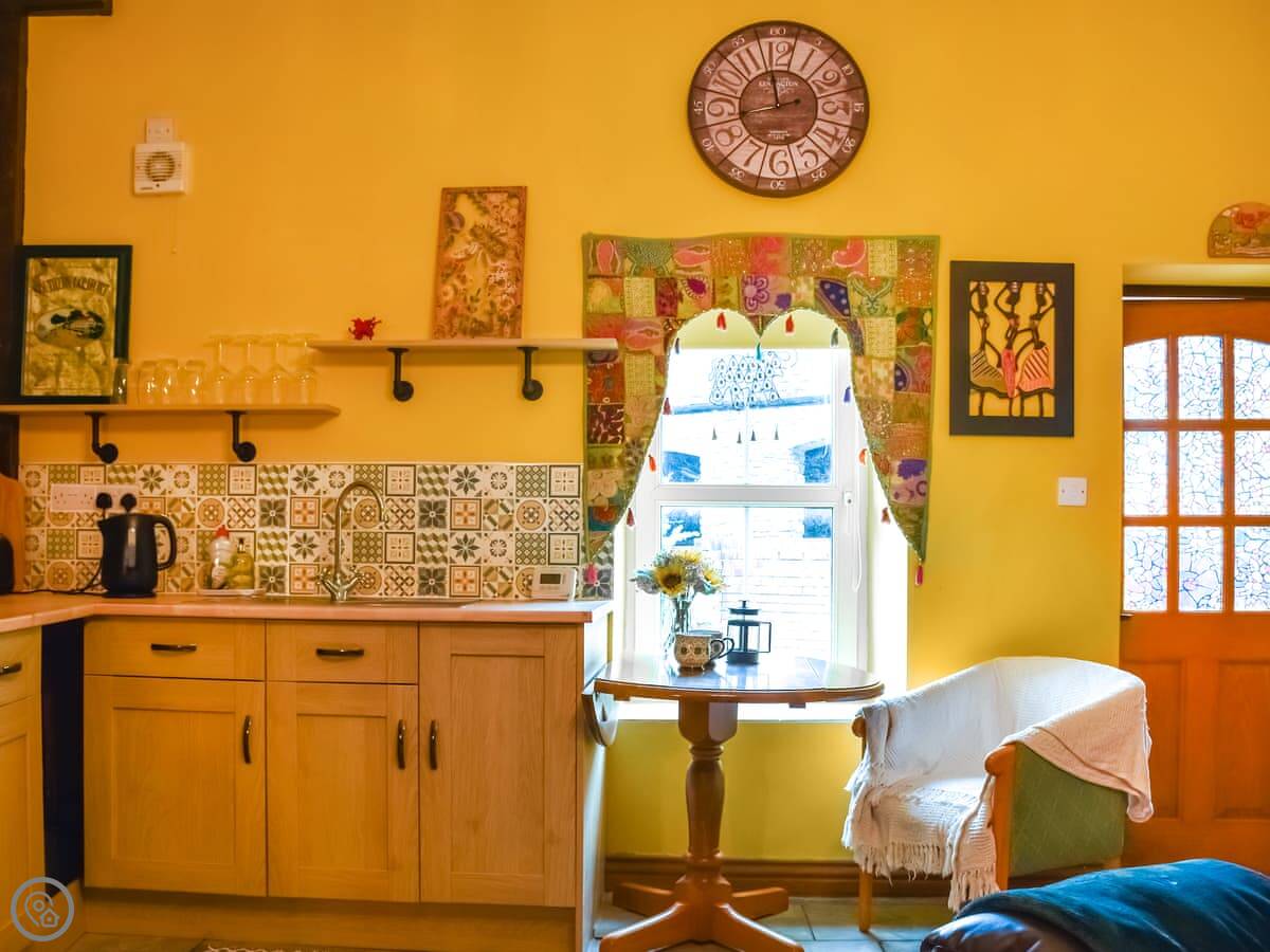 You have your own front door and a little courtyard out the front with a table and chairs. We live next door in the farmhouse, so we're here if you need anything, but you're completely separate.