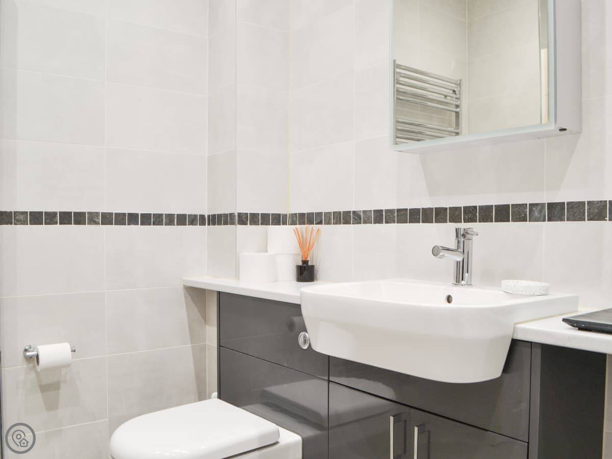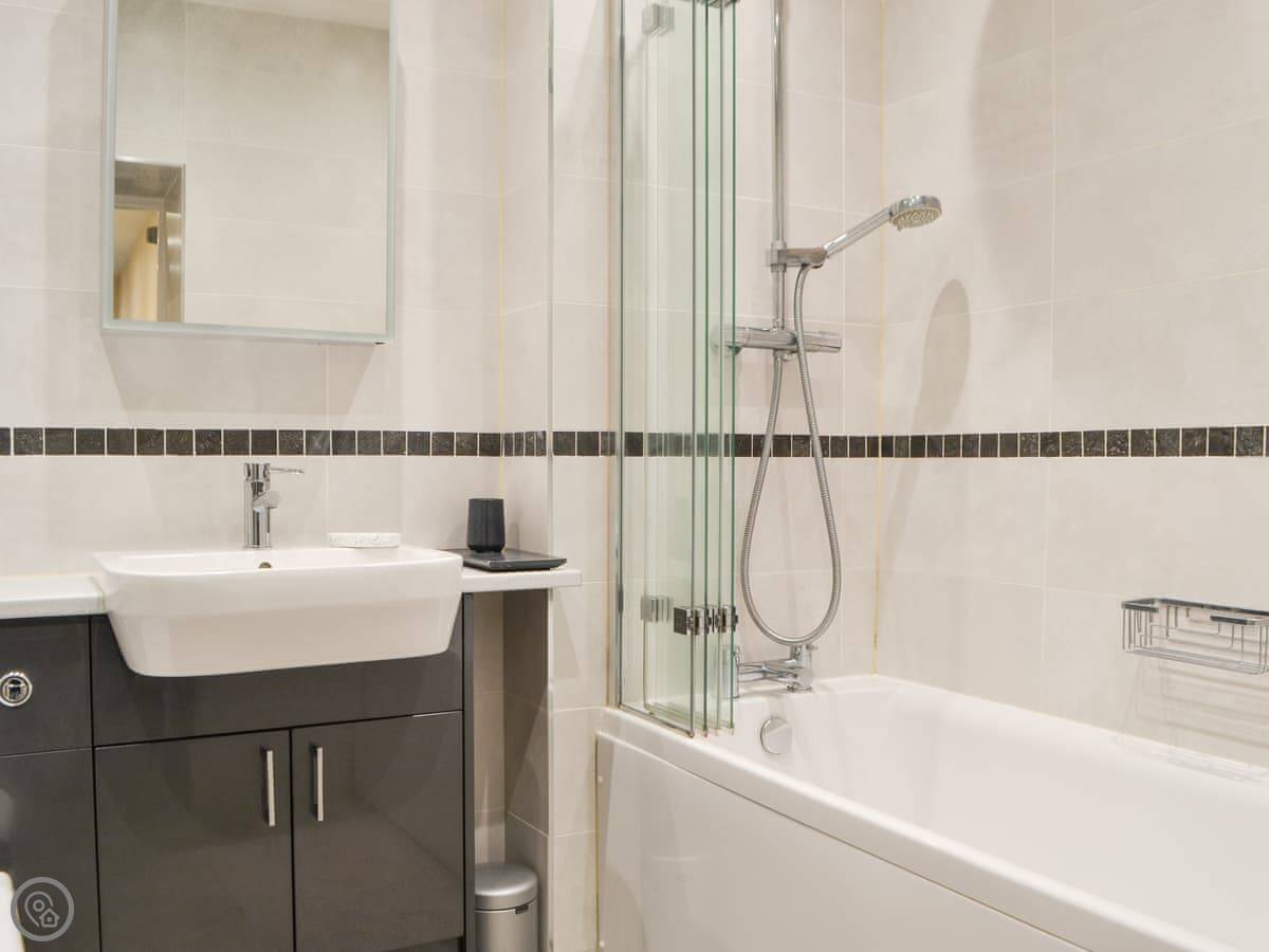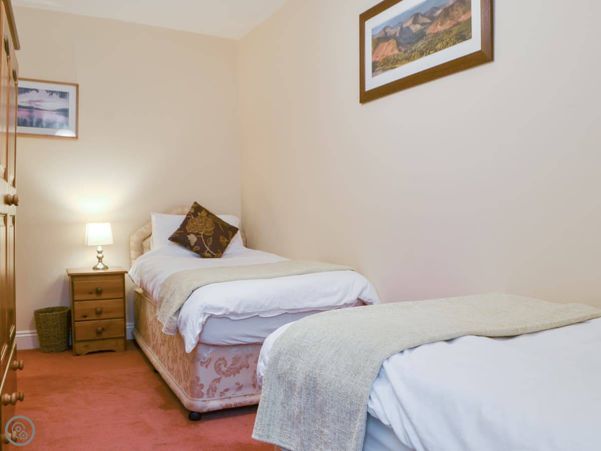 Both bedrooms are downstairs. One double, one twin. The bathroom is down there too, with a shower over the bath.