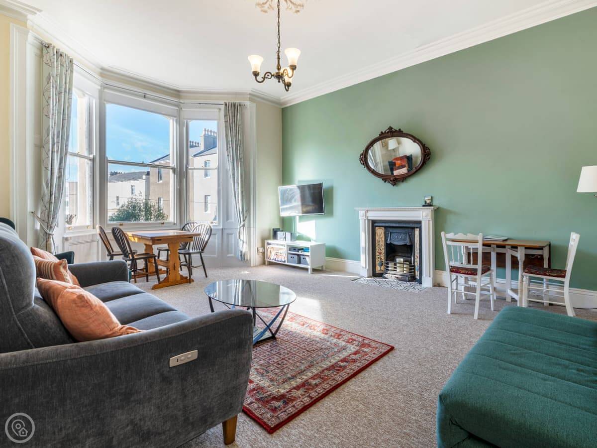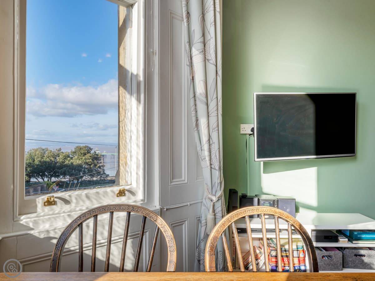 Pier View is a first-floor flat in Clevedon. It's in a converted Victorian house, so the rooms are big with high ceilings. You can see the pier from the front window.