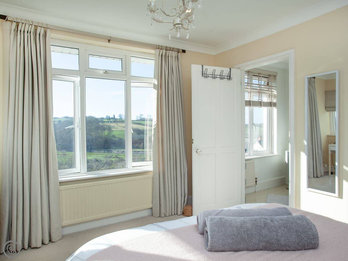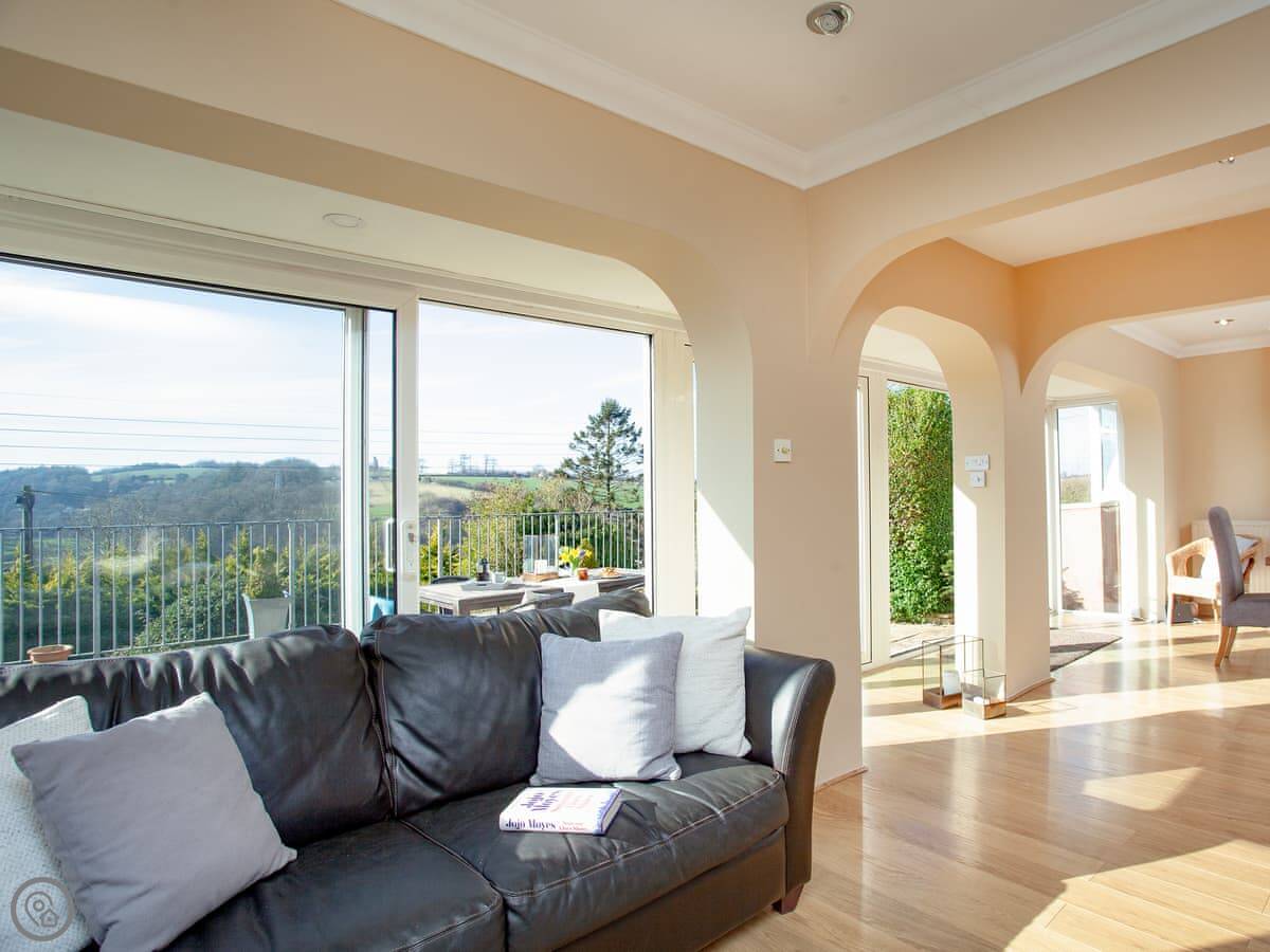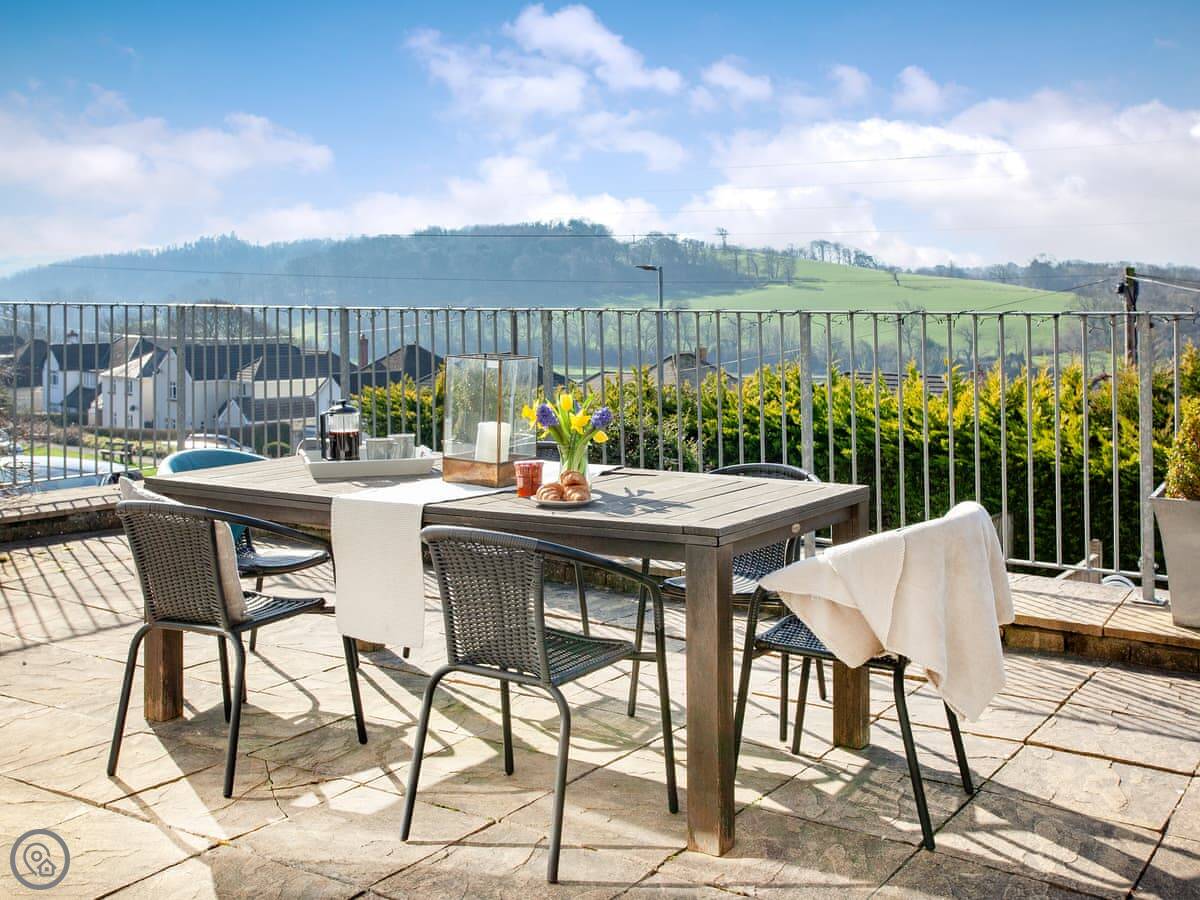 Folly View is a lovely spacious house with fantastic views over the river valley to the front and offers comfortable, modern accommodation. The three bedrooms are found on the first floor - a double with its own small terrace and access to the rear garden, a second double with an en-suite shower room, and a super kingsize bedroom that can be made up as a twin on request. A bathroom with a bath and shower cubicle is also on this level. On the ground floor you’ll find an open-plan, horseshoe-shaped living space with access via patio doors to the front terrace. The cosy living area is hidden away and has a comfy corner sofa and a Smart TV and the kitchen area is open to the dining room with its lovely wood burner. Adjacent is the utility room, where the main access to the property is, and also a handy downstairs toilet. Outside you will benefits from various seating areas, lawns and a large terrace from where you can soak up the sun and take in the gorgeous views or sit with a quiet drink staring up at the starry night sky and enjoying the view towards Tawstock Castle, which looks lovely when lit up.