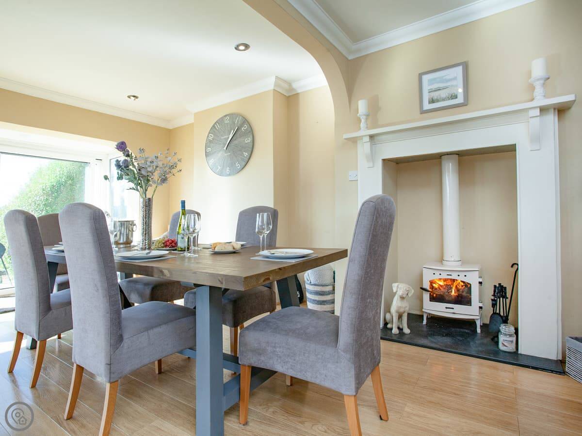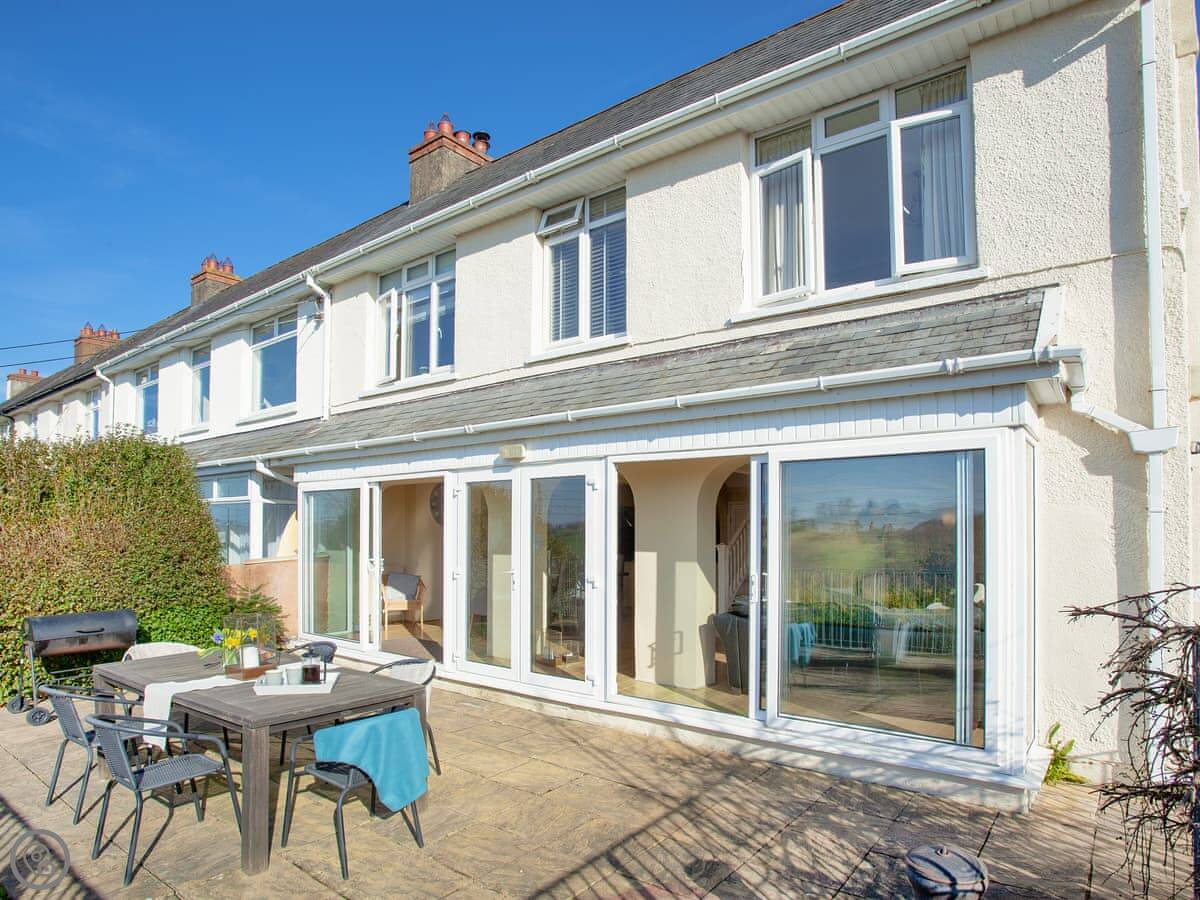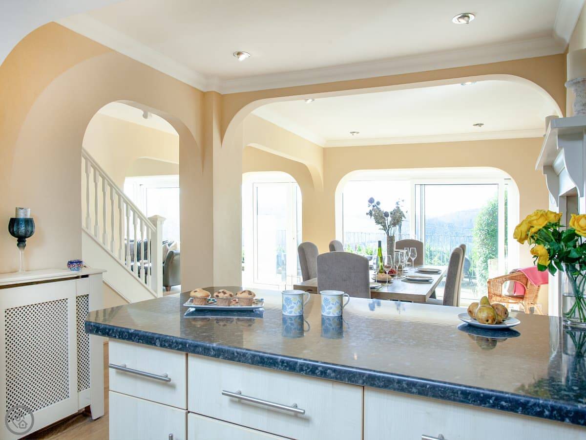 Folly View is a lovely spacious house with fantastic views over the river valley to the front and offers comfortable, modern accommodation. The three bedrooms are found on the first floor - a double with its own small terrace and access to the rear garden, a second double with an en-suite shower room, and a super kingsize bedroom that can be made up as a twin on request. A bathroom with a bath and shower cubicle is also on this level. On the ground floor you’ll find an open-plan, horseshoe-shaped living space with access via patio doors to the front terrace. The cosy living area is hidden away and has a comfy corner sofa and a Smart TV and the kitchen area is open to the dining room with its lovely wood burner. Adjacent is the utility room, where the main access to the property is, and also a handy downstairs toilet. Outside you will benefits from various seating areas, lawns and a large terrace from where you can soak up the sun and take in the gorgeous views or sit with a quiet drink staring up at the starry night sky and enjoying the view towards Tawstock Castle, which looks lovely when lit up.