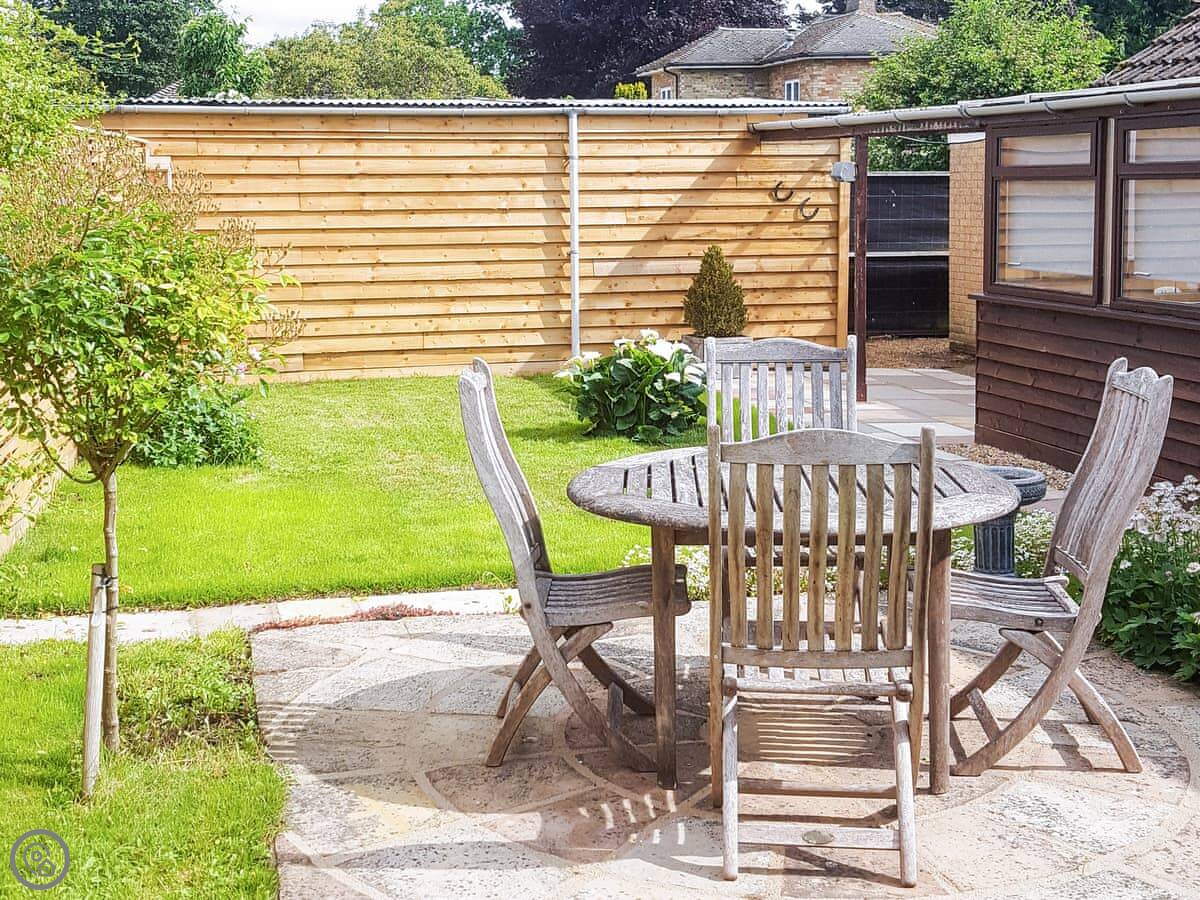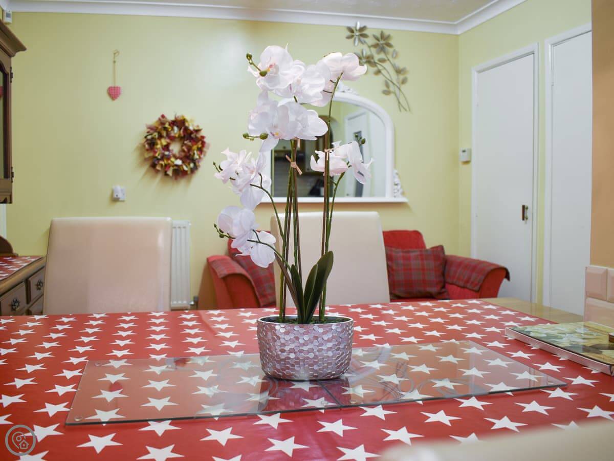 The kitchen is open plan with the dining area, which is good if someone's cooking and others are sitting at the table. There's a separate living room and then a conservatory on the back. The garden is enclosed, which is handy if you have dogs. It's got a lawn and a patio with a barbecue.