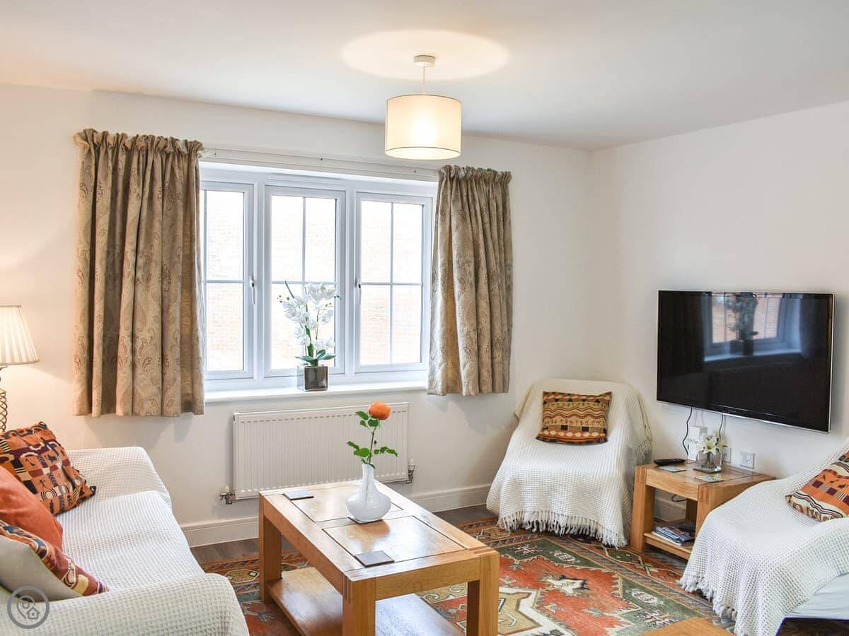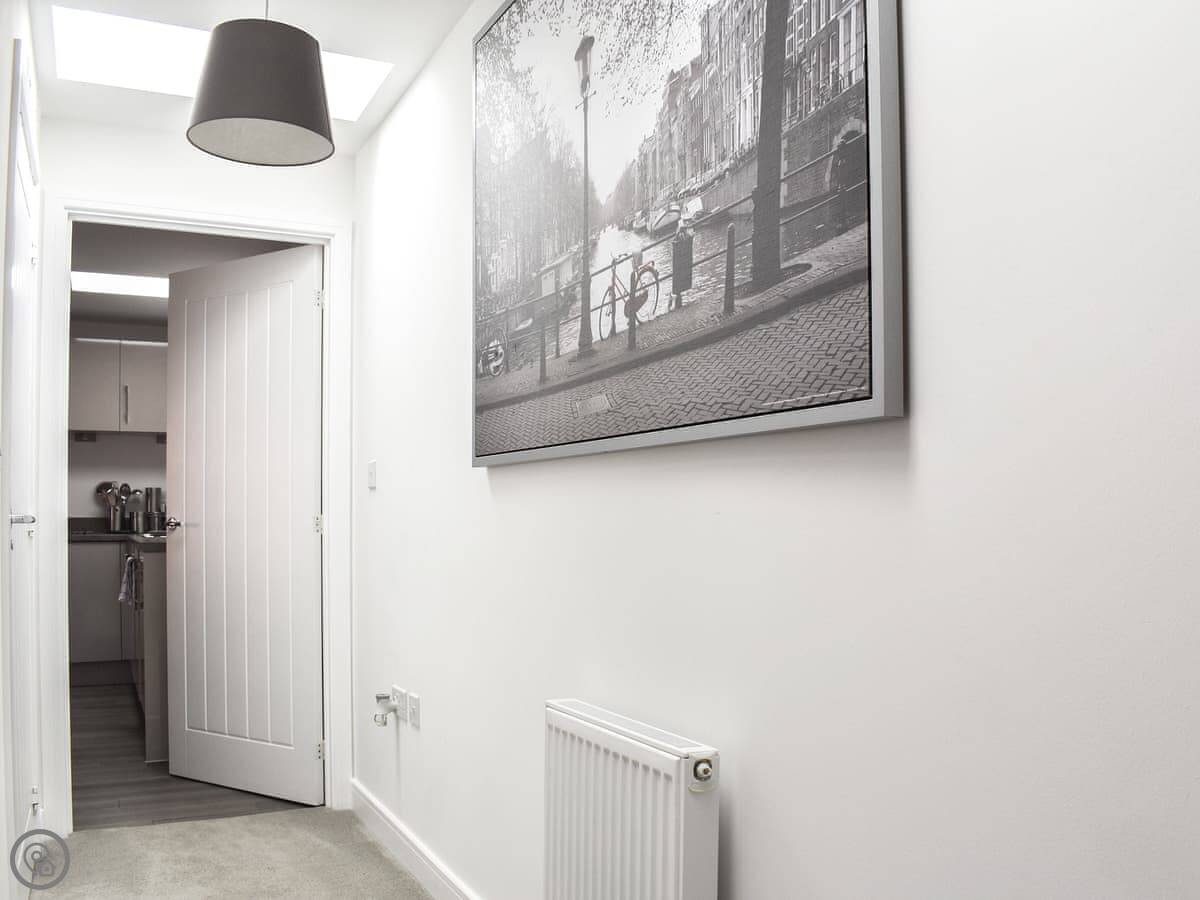 Finders Nook is a new build coach house near Westergate. It’s on its own, not overlooked, so it feels private. It’s built above three garages, so it’s all on the first floor.