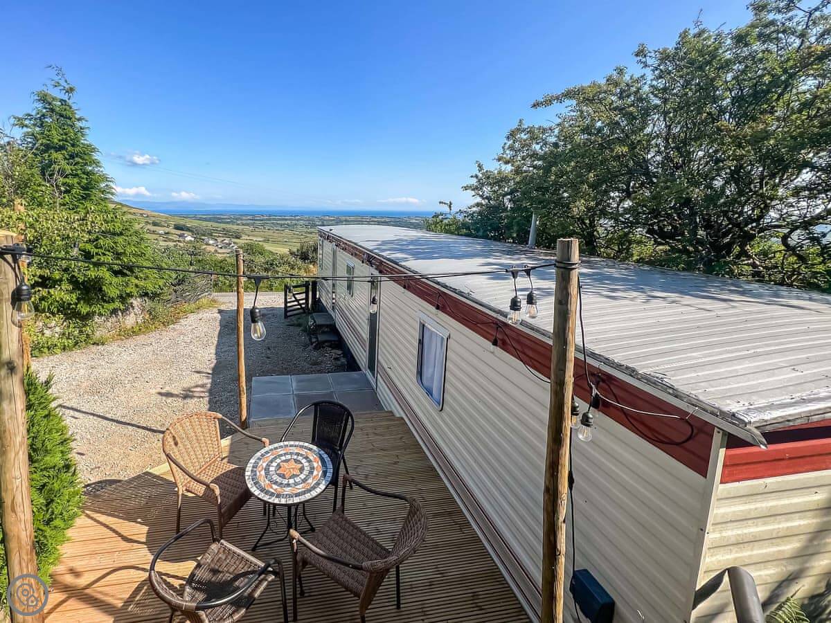 Tyn Y Parc is in Llithfaen, up on the Llyn Peninsula in North Wales. It's a static caravan. It's detached and in a quiet spot, looking out over the fields.
