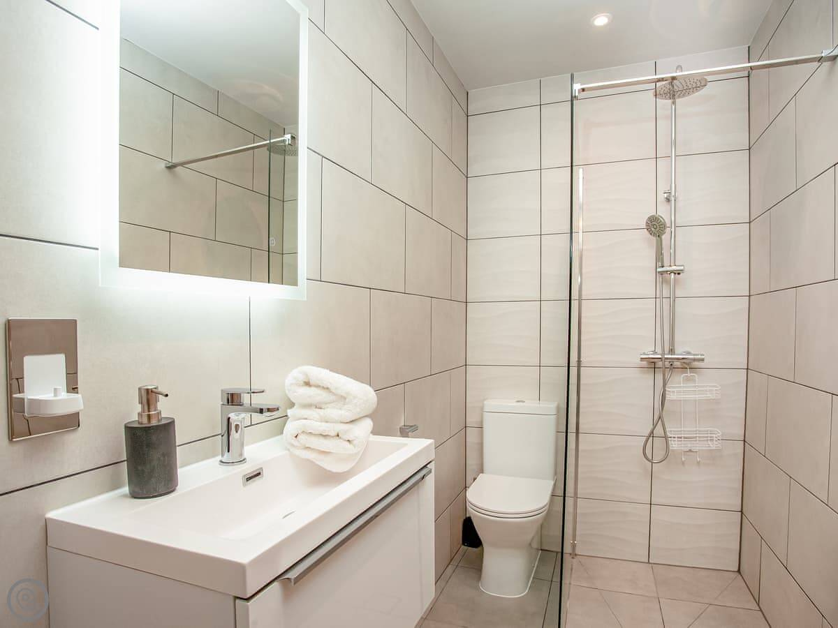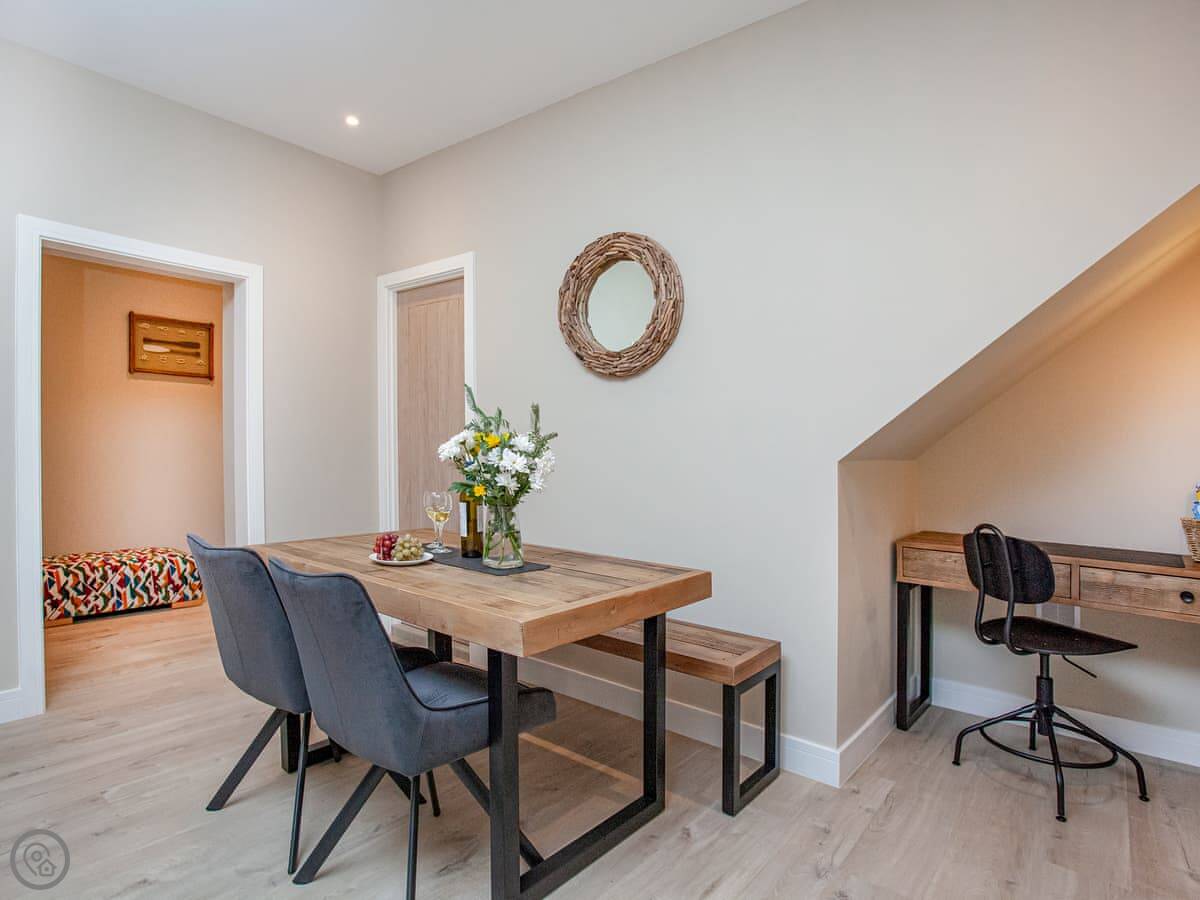 It's for two people. One bedroom with a big bed, one shower room. It's got a 4 Star rating. Everything's there and it's well looked after. You can bring one dog.