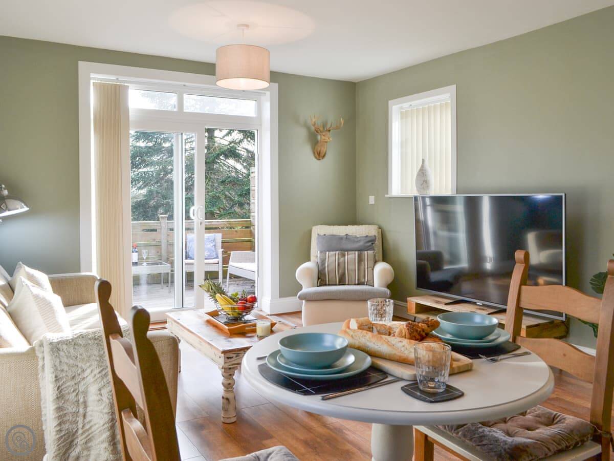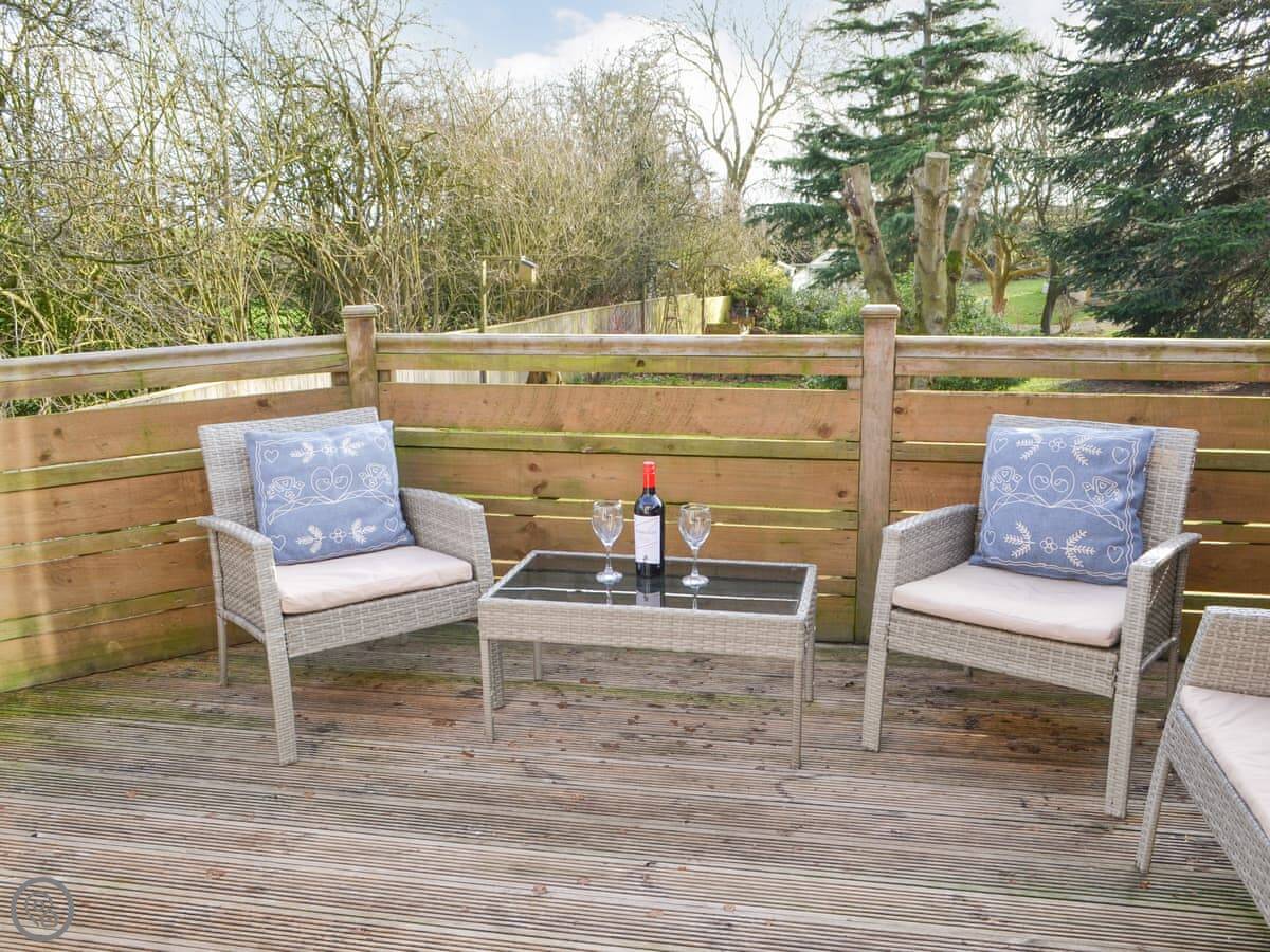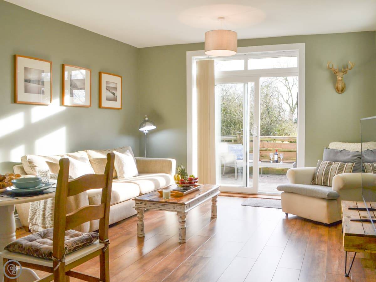 Step inside via the utility room with washing machine and tumble dryer, then on through into the galley style kitchen which offers a host of modern appliances and plenty of worktop space from which to prepare delicious evening meals. The large living room offers lovely views over the owner’s garden; and patio doors that lead out onto an enclosed raised decked area with additional seating. During the warmer months, this is the perfect spot for an al fresco breakfast whilst planning the day’s activities. A large sofa is ideally placed for a movie evening in and the country style dining table sits to one side. Across the hall is a modern bathroom with a large walk-in shower and heated towel rail. As the day draws to a close, retire to the kingsize double bedroom. Decorated in pretty tones and beautiful soft furnishings it provides a relaxing ambience for a great night’s sleep.