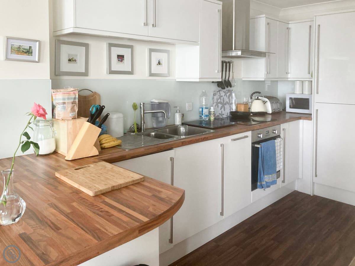 A third-floor apartment with lift access, Vue de Mer Ella is a spacious, two bedroom apartment that has the most stunning sea view. You are welcomed by a spacious hallway with two bedrooms, one with en-suite, and a bathroom. At the front of the apartment, you will find a fabulous open-plan living space with a kitchen, living and dining area. The beauty of Vue de Mer Ella is the large balcony that looks onto the beach front.