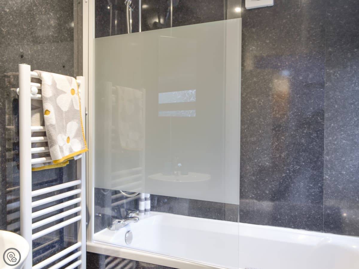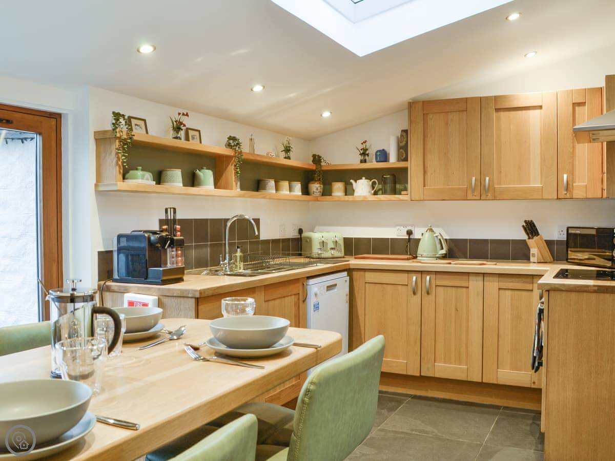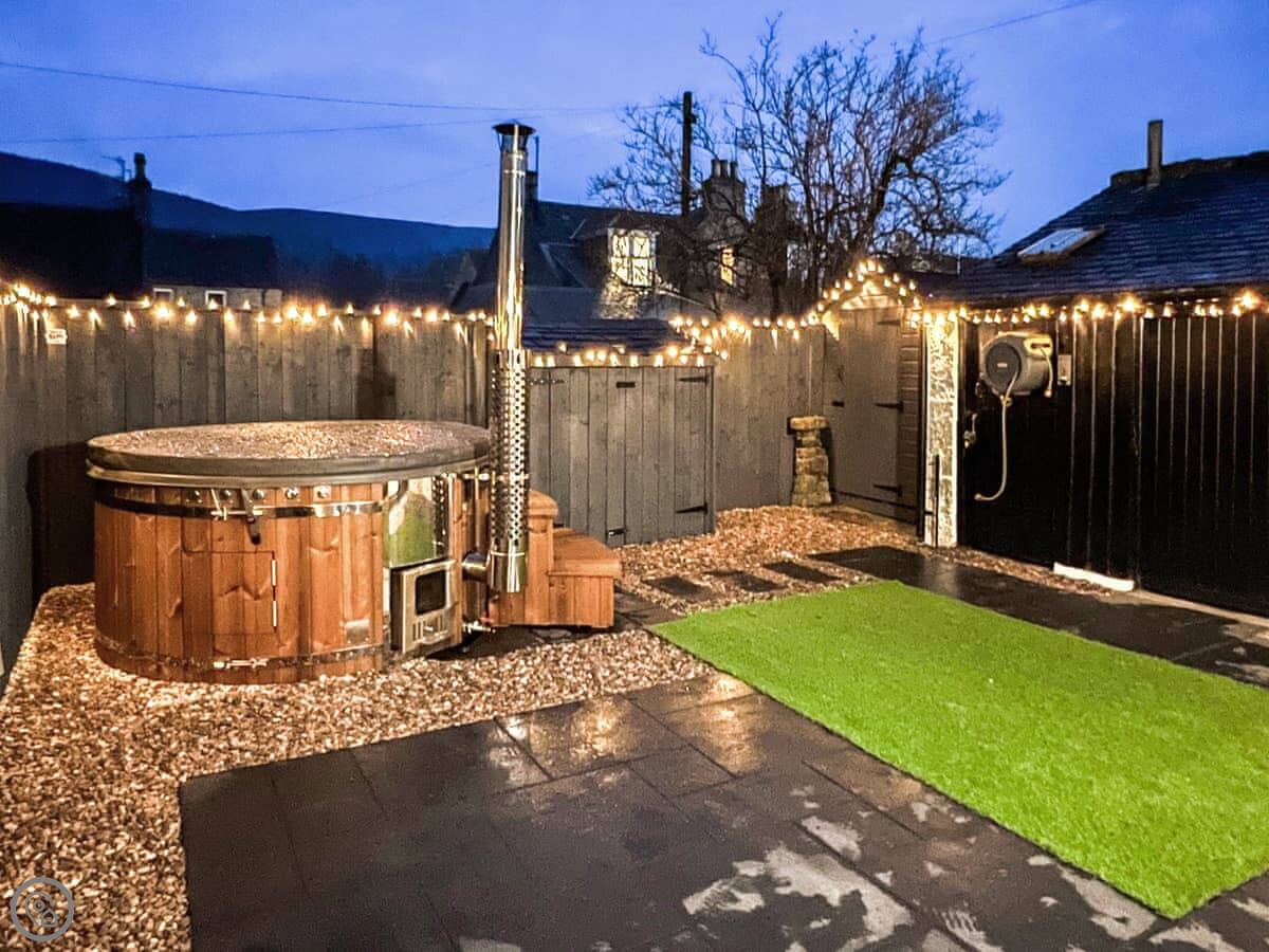 It’s got a wood burner in the living room. There’s a biomass boiler for heating and solar panels, so it’s warm. They’ve also put in a wood-fired hot tub in the garden. You have to light it and wait for it to heat up, but it’s there if you want it.