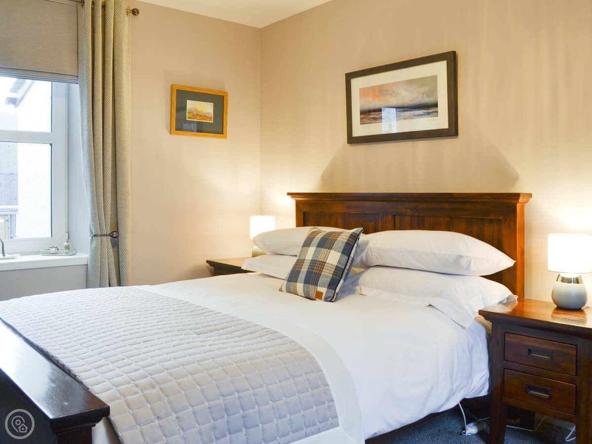 It sleeps four. Two bedrooms, one bathroom. It’s a 5 Star rating, which means it’s well-finished and has everything you’d need. The second bedroom is smaller with a three-quarter bed, so it’s fine for kids or one adult. The main bedroom is a decent size.