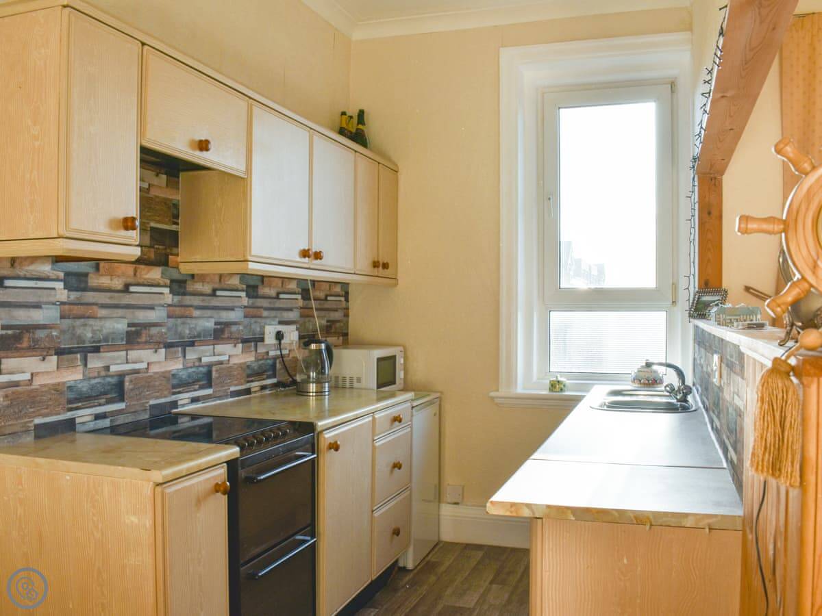 A great spot for watching the world pass by, the living area is open plan, with a well-equipped kitchen so that you can create romantic meals for two, or if you are meeting friends or family whilst here the living area is more than spacious enough to entertain. This apartment has a cosy welcoming feel throughout, with sofas around the TV for you can sink into after a long day of exploring. The bedroom is a generous size, with a double bed and built-in wardrobes for your belongings. In the bathroom, you have a bath with a shower over so that you have the option of a relaxing soak, or a refreshing shower to start or end each day.
