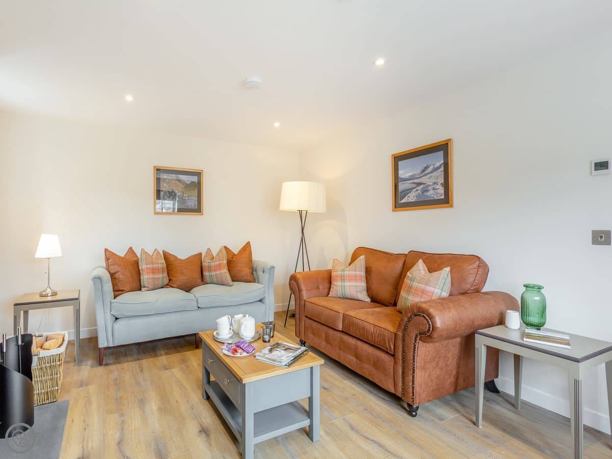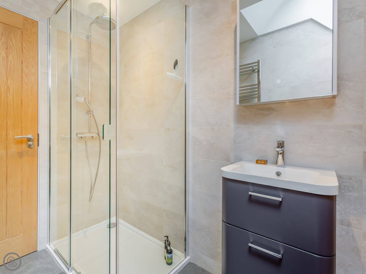 Sleeps four in two bedrooms. Both are upstairs. One has a kingsize bed that can split into two singles if you need that. The other is a twin room. Just the one shower room, also upstairs. It has a walk-in shower.