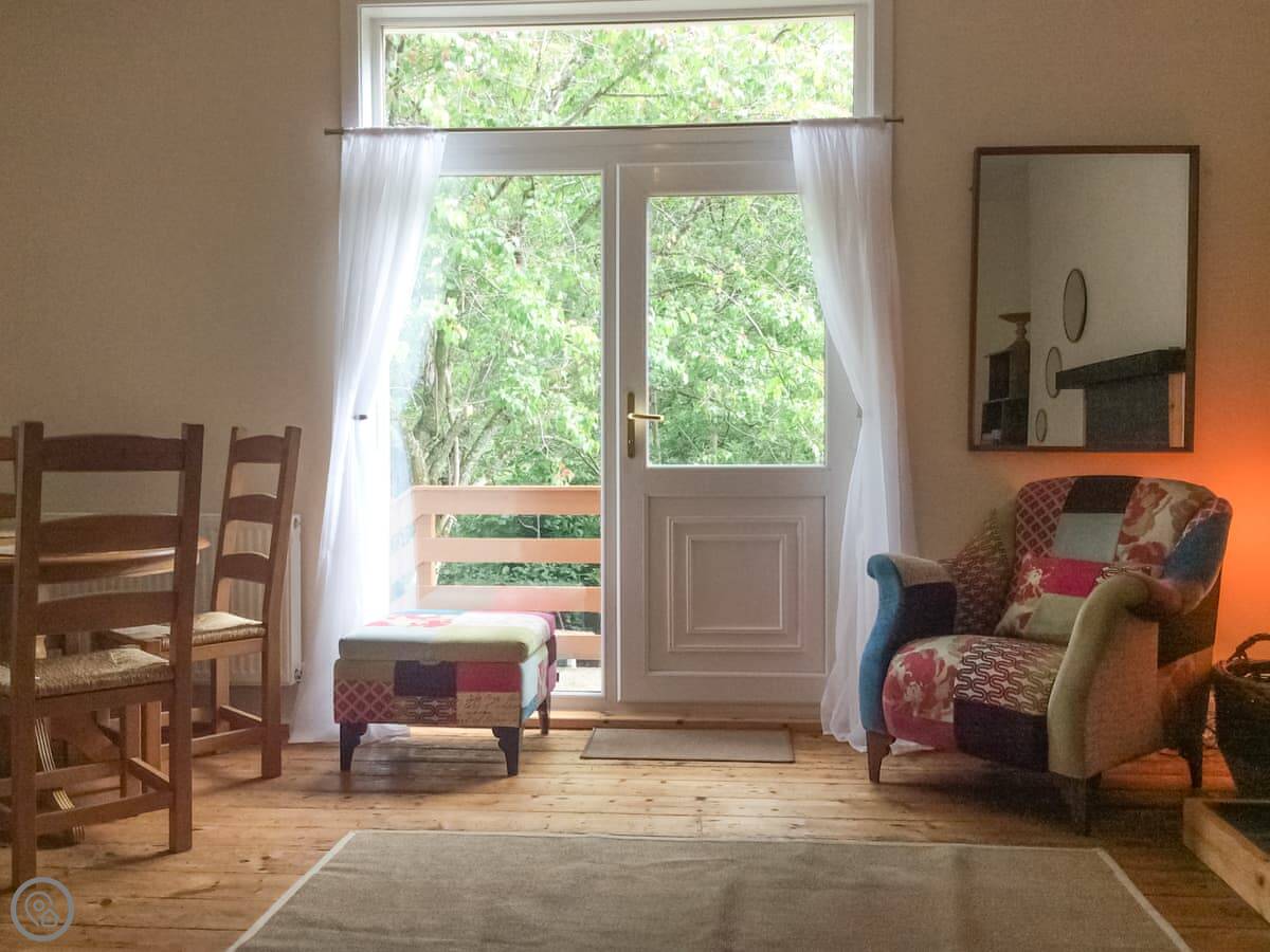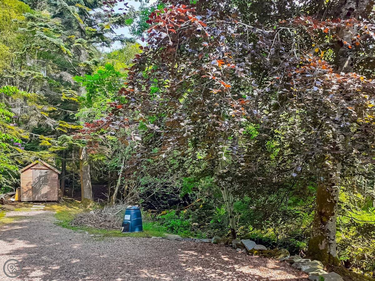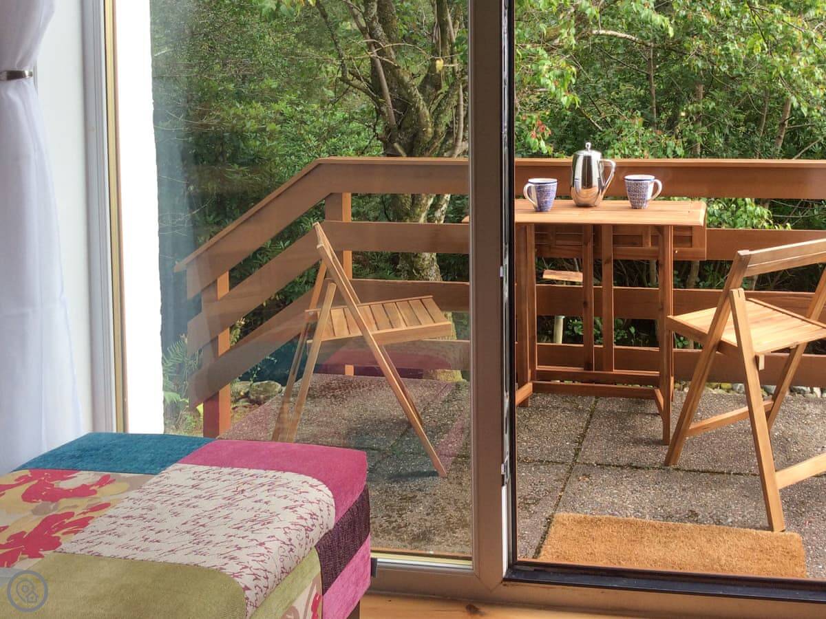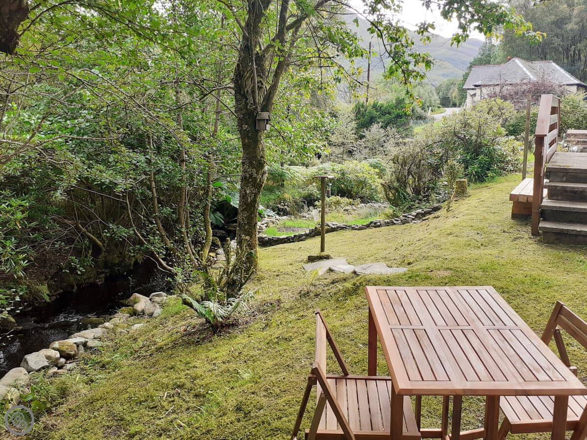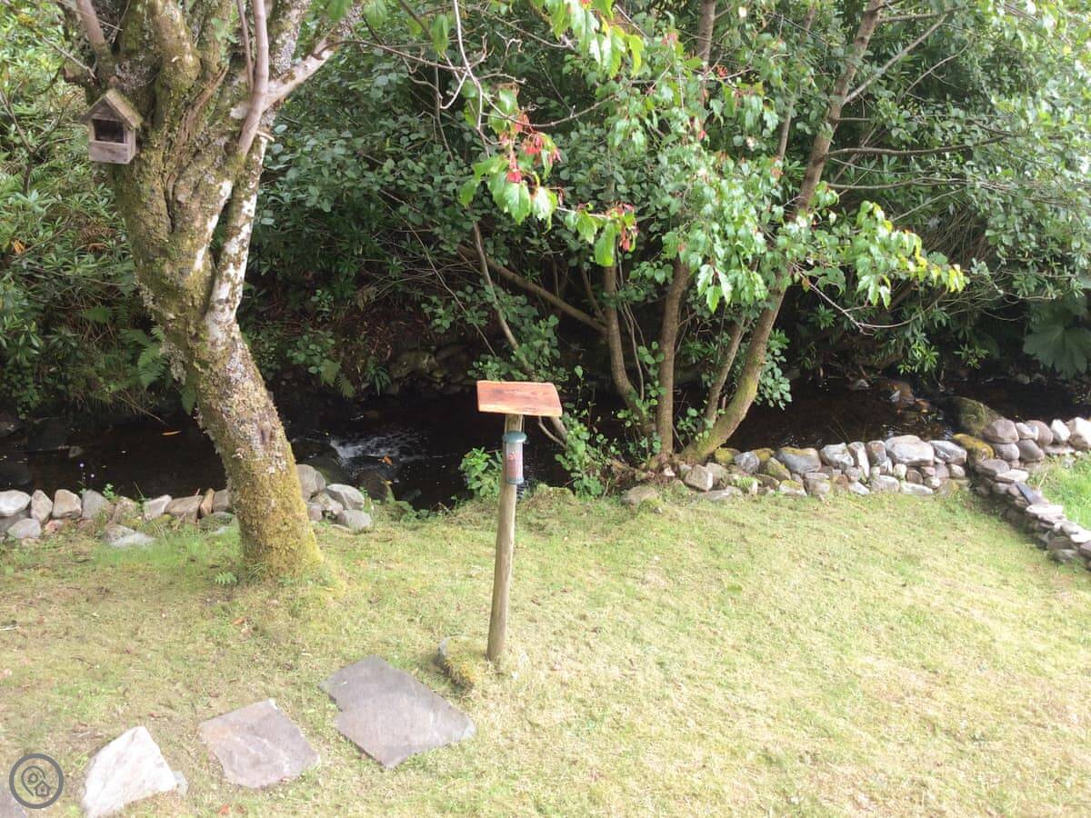 Outside, there's a bit of garden. You can walk up past the cottage a little way along the burn. It's quite shaded with trees. There's an outside tap and a hose, useful for washing off muddy boots or a dog.