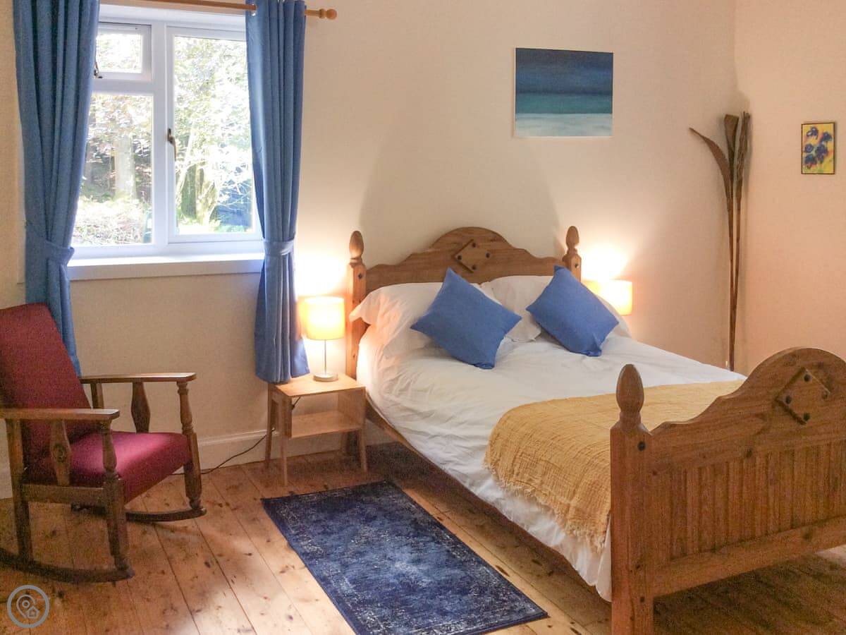 The bedroom's at the back. It has windows on two sides. One looks over the burn, the other towards a small waterfall. You can hear the water running. It's a nice sound.