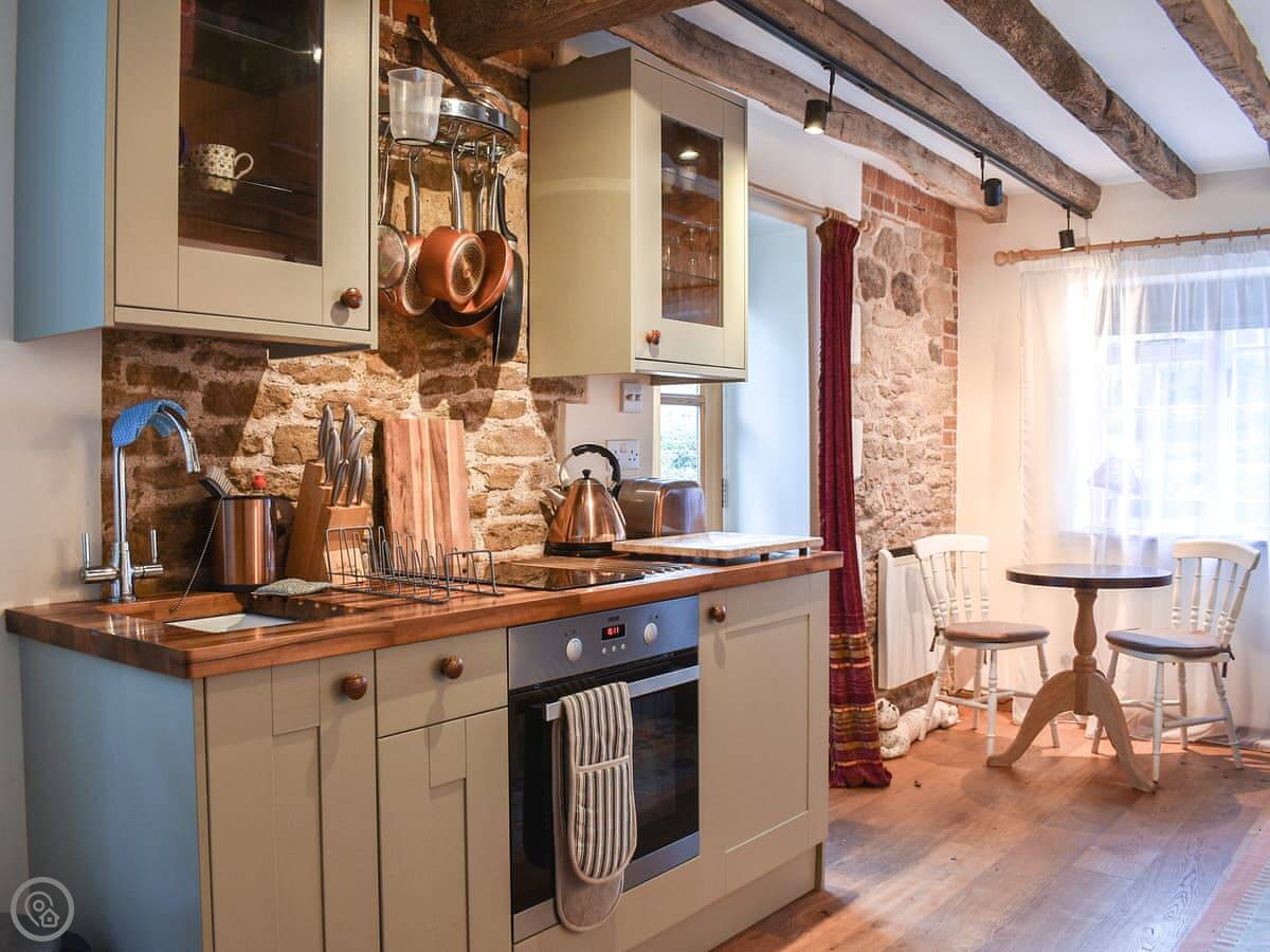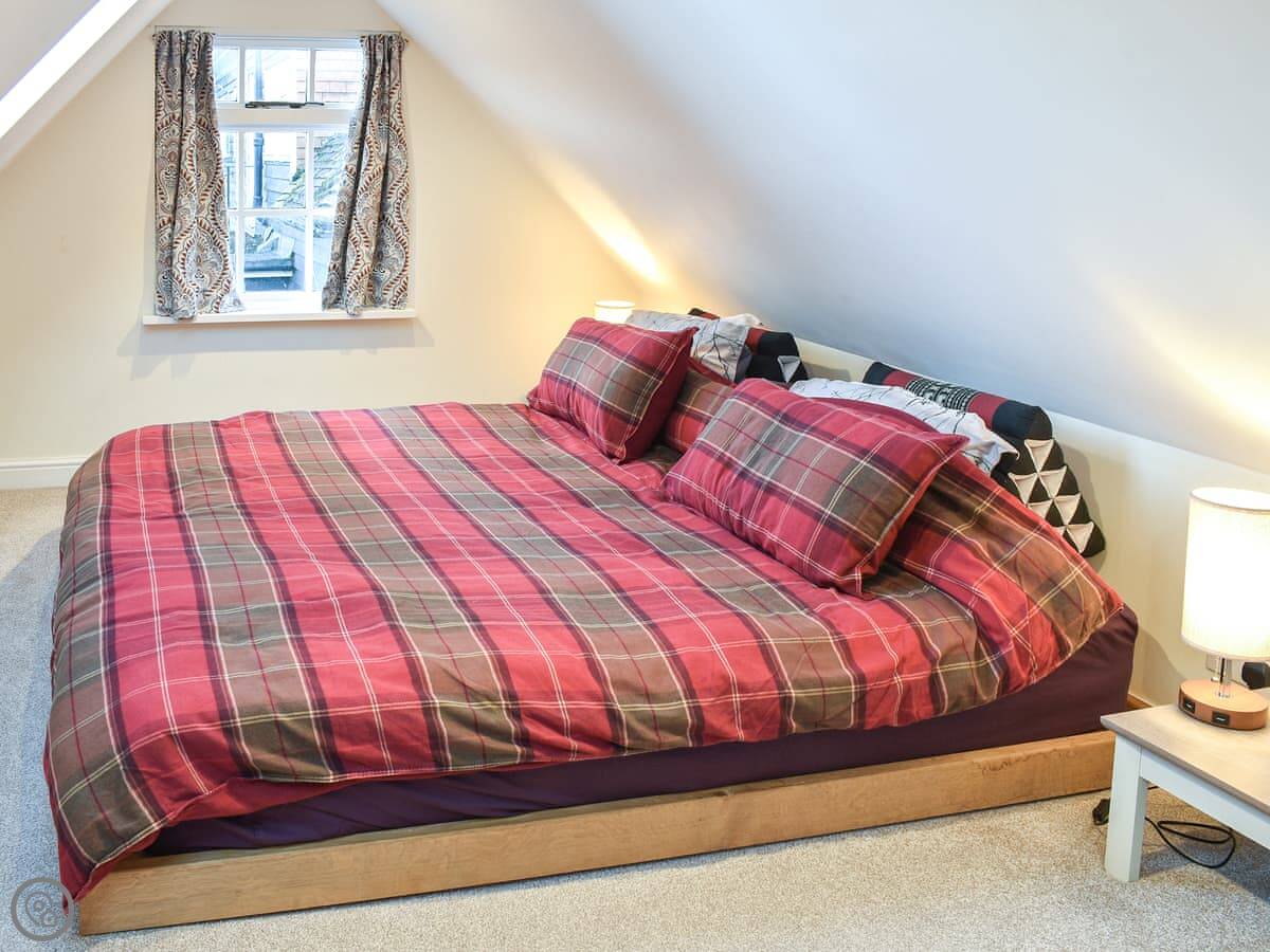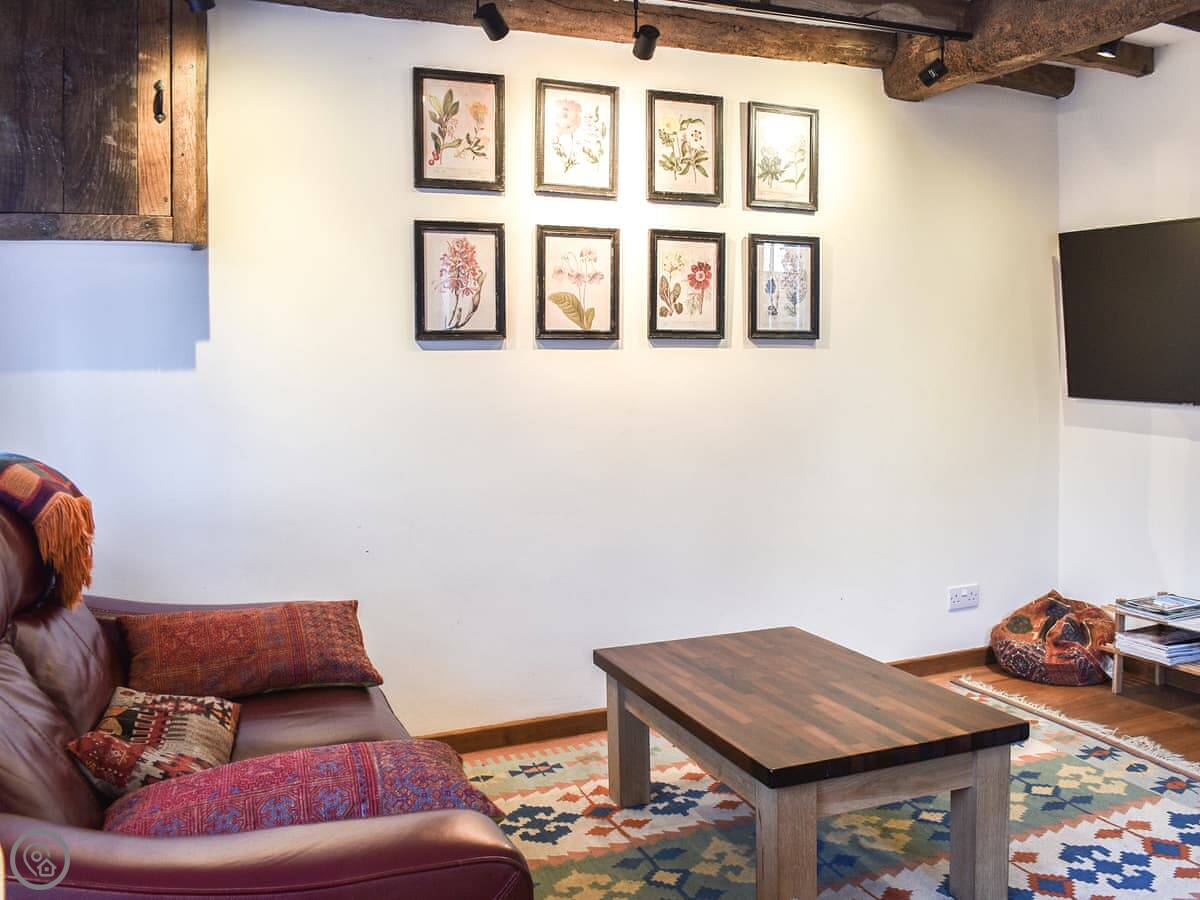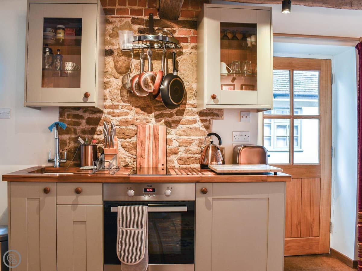 With its own enclosed courtyard garden, this is a quiet and peaceful holiday home. It was formerly an old coach house that has been stylishly refurbished whilst retaining much of the original period features. Downstairs the cottage has a lovely open plan living space with oak flooring, reclining sofa and a Smart TV. It offers a private enclosed sitting-out area with outdoor table, chairs and covered seating. Upstairs in the eaves, with countryside side views, is a carpeted bedroom with lower level kingsize bed .