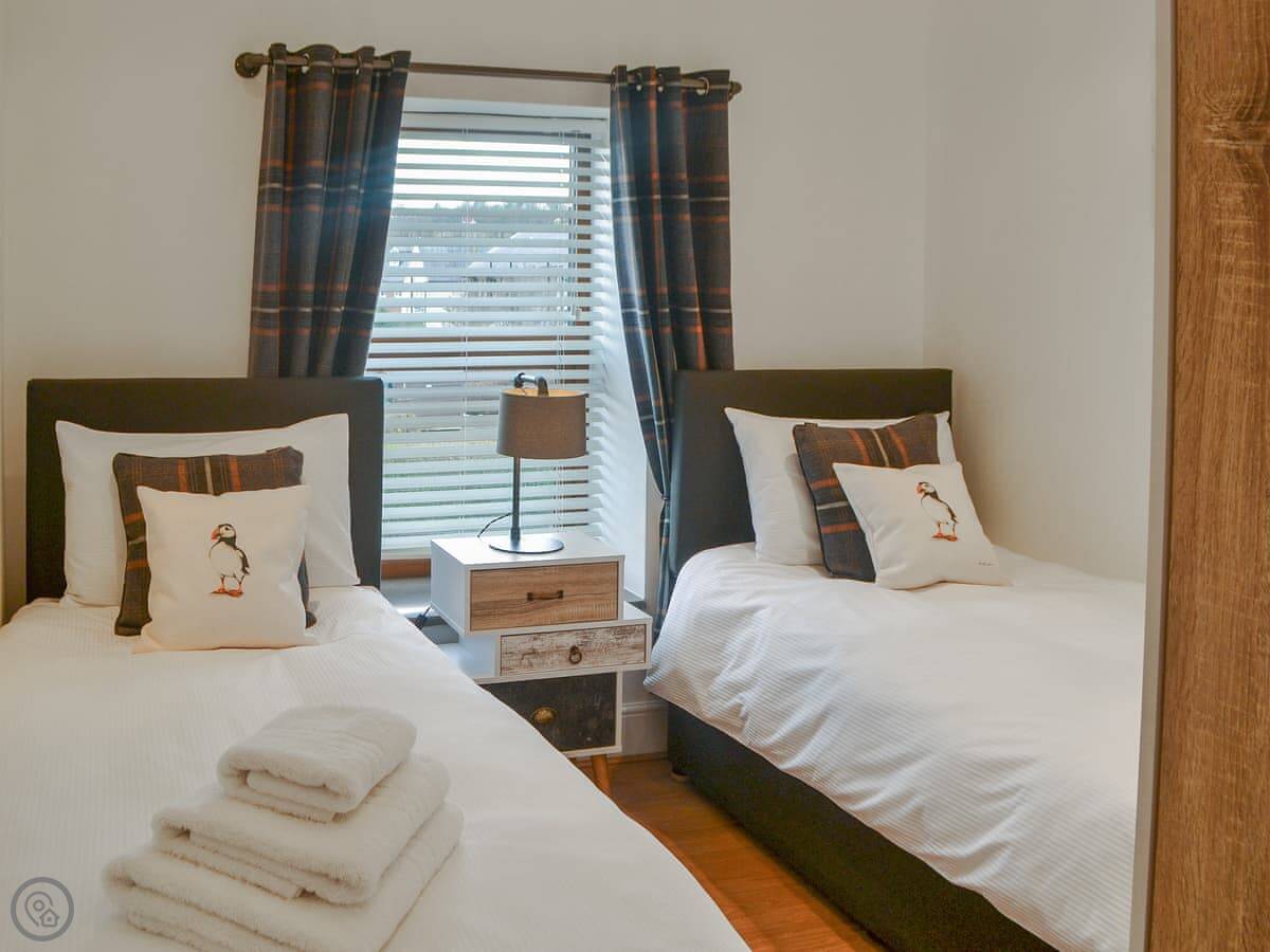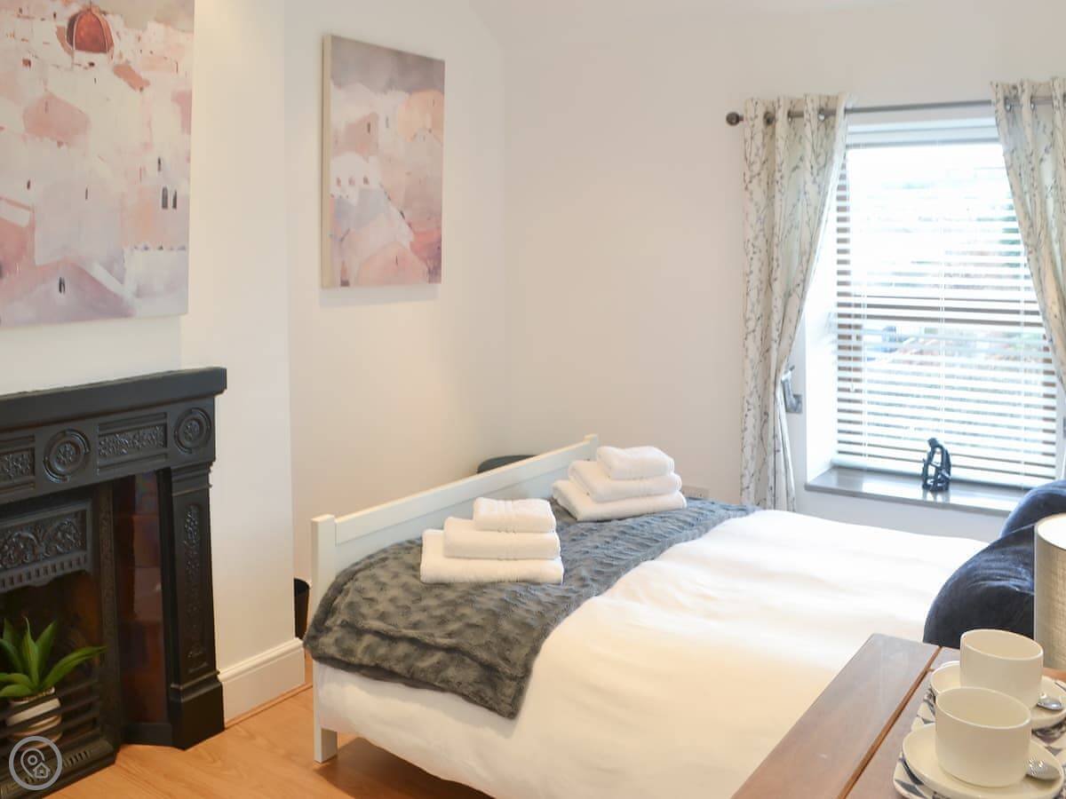 It sleeps four in two bedrooms, one double and one with bunk beds. There's one bathroom with a shower. It's got a 4 Star rating. It's been done up well inside, it's comfortable. There's an open fireplace in the front room, which is nice.