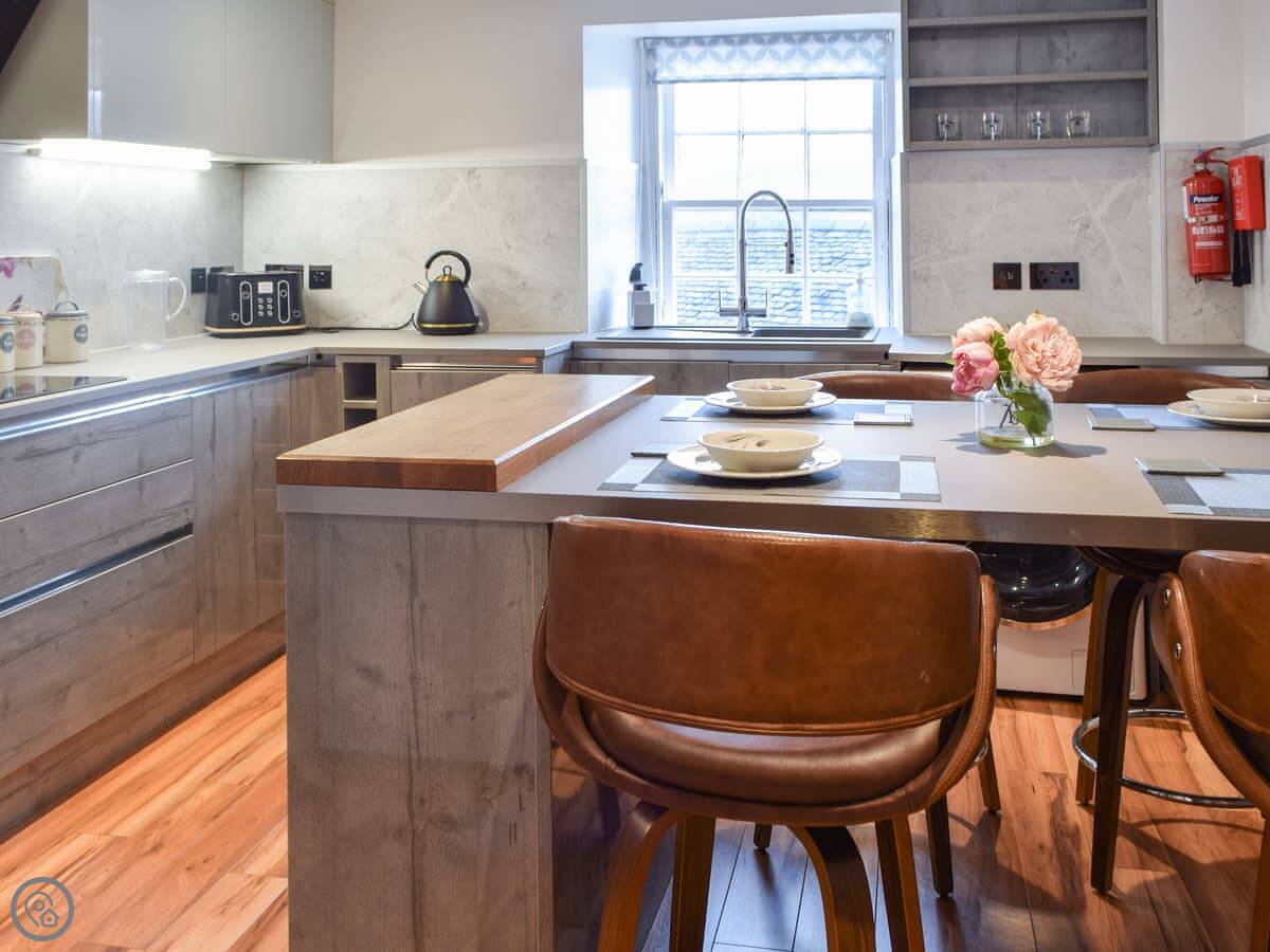 Lochside Apartment is a modern first floor apartment situated in a historical ‘A’ listed building. Offering comfort beside the shores of beautiful Loch Fyne and conveniently situated in the centre of Inveraray, the historic county town of Argyll. Lochside offers a fantastic social space in the cosy living room area, with comfy sofas and a dedicated workspace, ideal for lounging and relaxing after a busy day exploring the surrounding, stunning countryside. Entering the kitchen/dining area which enjoys views over Loch Fyne, you will find that the kitchen is well-equipped with everything you’ll need to self-cater with ease. You’ll sleep like a log in the spacious bedrooms with comfortable kingsize beds, one with fantastic sea views, all served by a modern bathroom with shower over the bath.