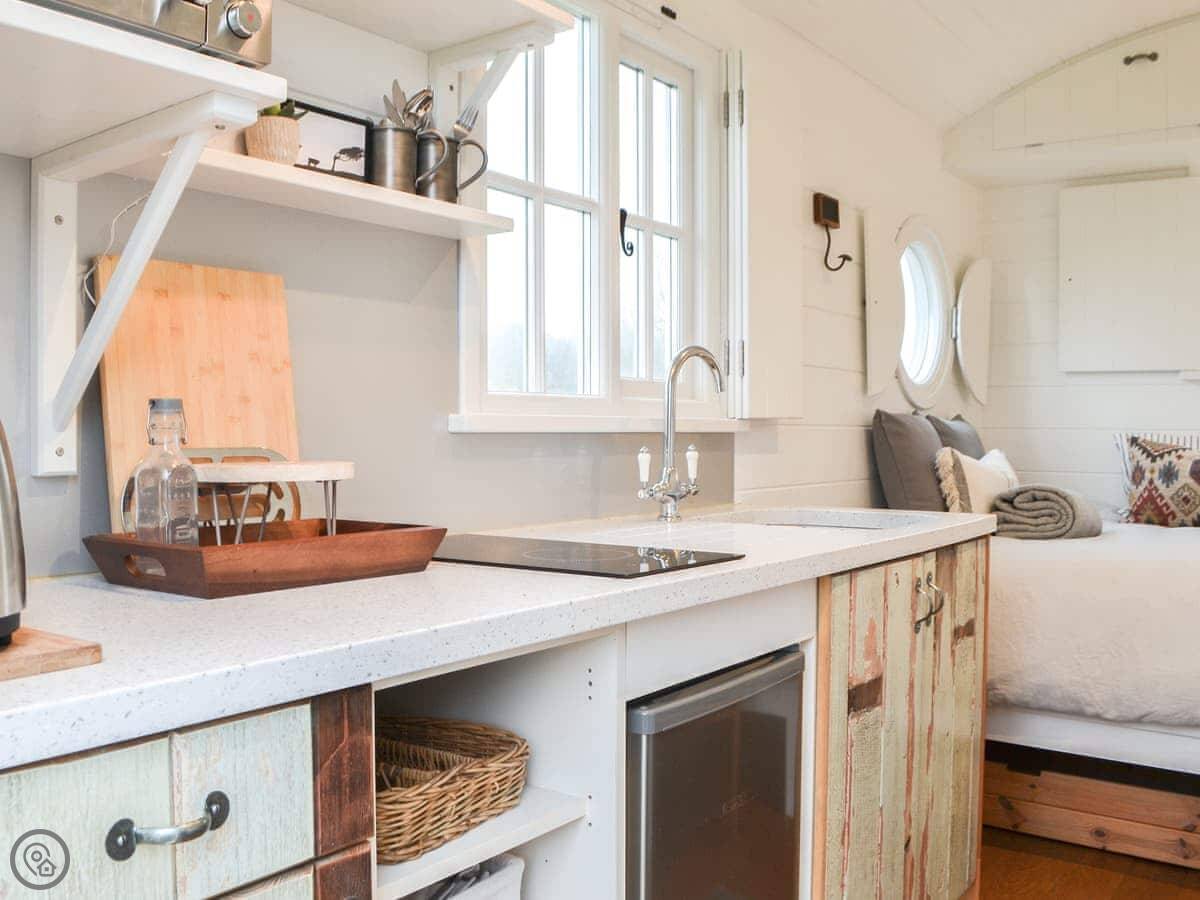 Welcome to Fergie’s Hut! Perfect for a romantic break in The Lake District, with your own private hot tub and unobstructed fell views, you’ll love the privacy and the feeling of escapism from the moment you arrive. Ever dreamed of staying in a traditional Cumbrian shepherd’s hut? Look no further! Fergie’s Hut is quaint, comfortable and has lots of cosy features which will make this stay a memorable one, like the little wood burner, which you can light if the night gets cool. Every detail in this quirky hideaway has been carefully thought through with guest comfort in mind, but without losing too much of the original charm that these huts provided to the shepherds while tending their valuable flocks in Victorian times and right into the 1950’s. Outside you have a BBQ and firepit to enjoy whilst sitting outside, and if that’s not warm enough for you, the showstopper must be the beautiful calming hot tub, set in a genuine, restored 1920’s farm cart shed, with views of the surrounding farmland and fells. Fergie’s Hut is a little different from many – it has a separate centrally heated ‘wash ‘n’ dry hub’ with en-suite and walk in shower, a hair drying station, and room for drying clothes and footwear.