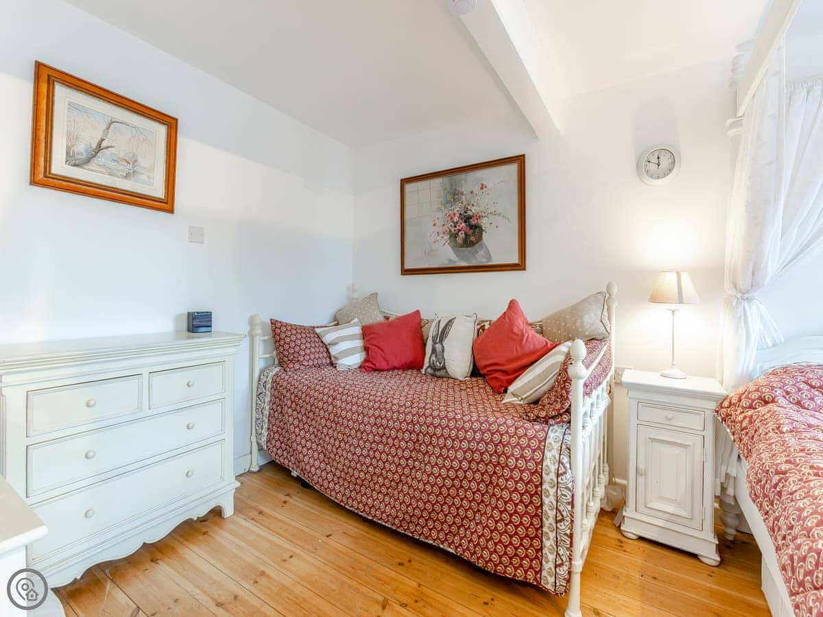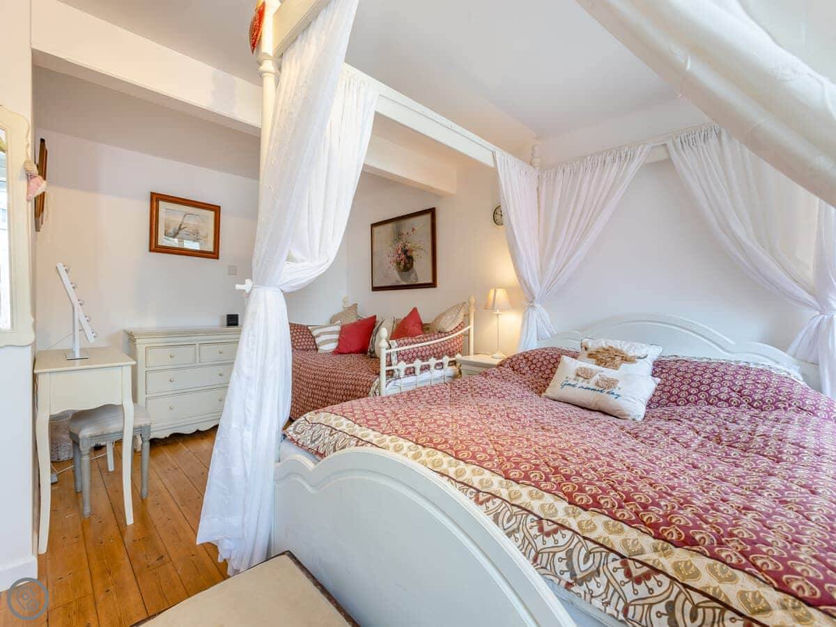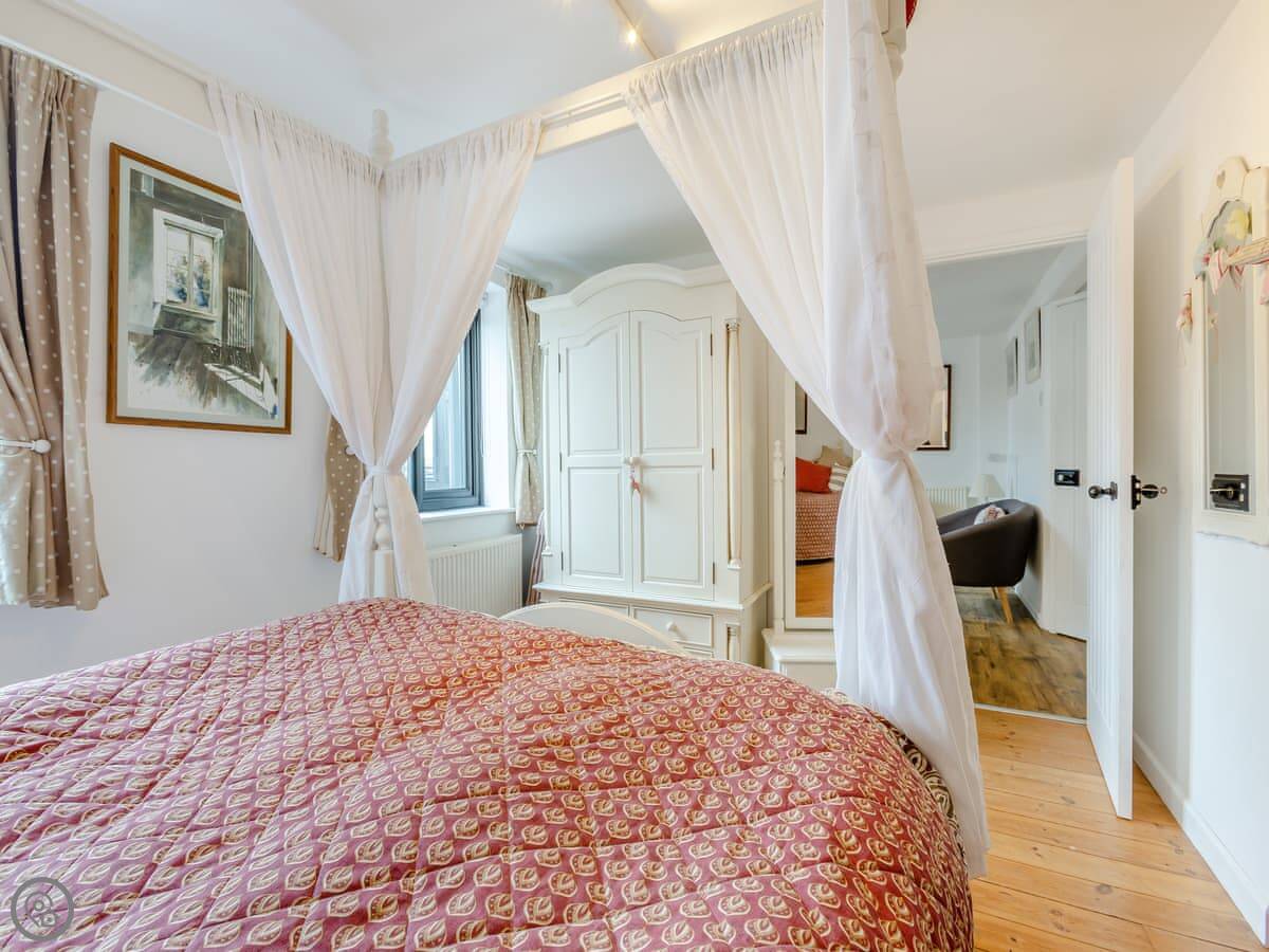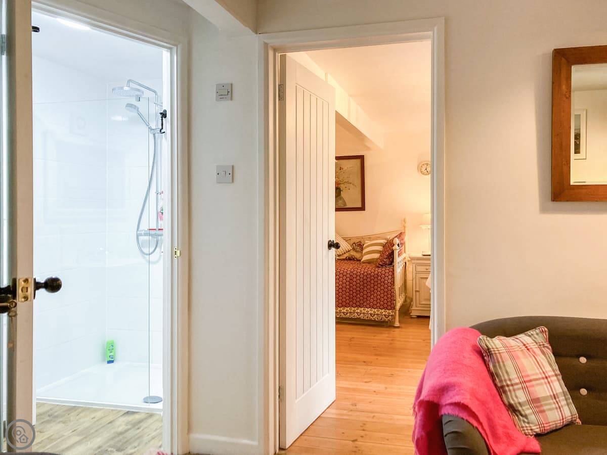 The Farmers Den is an annexe next to my farmhouse just outside Lydford. It sleeps up to three people. There's a king-sized four-poster bed and a single day bed in the one bedroom.