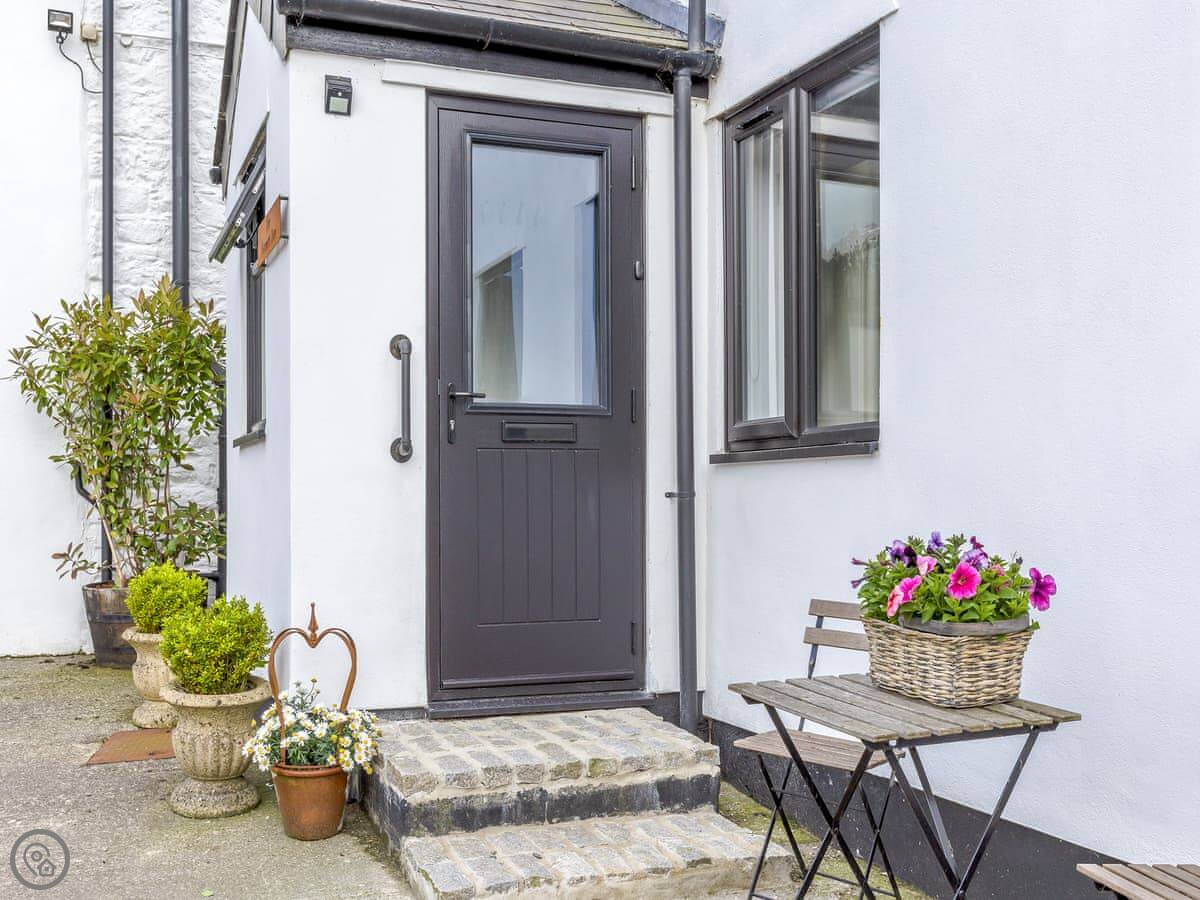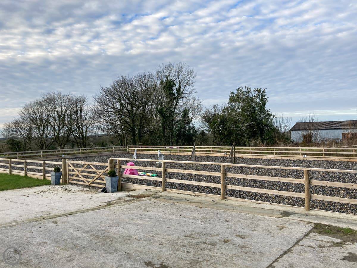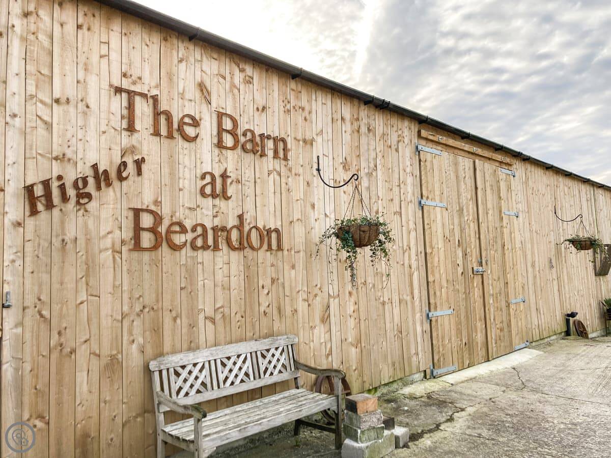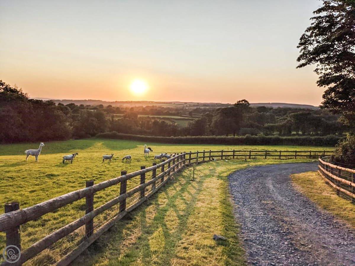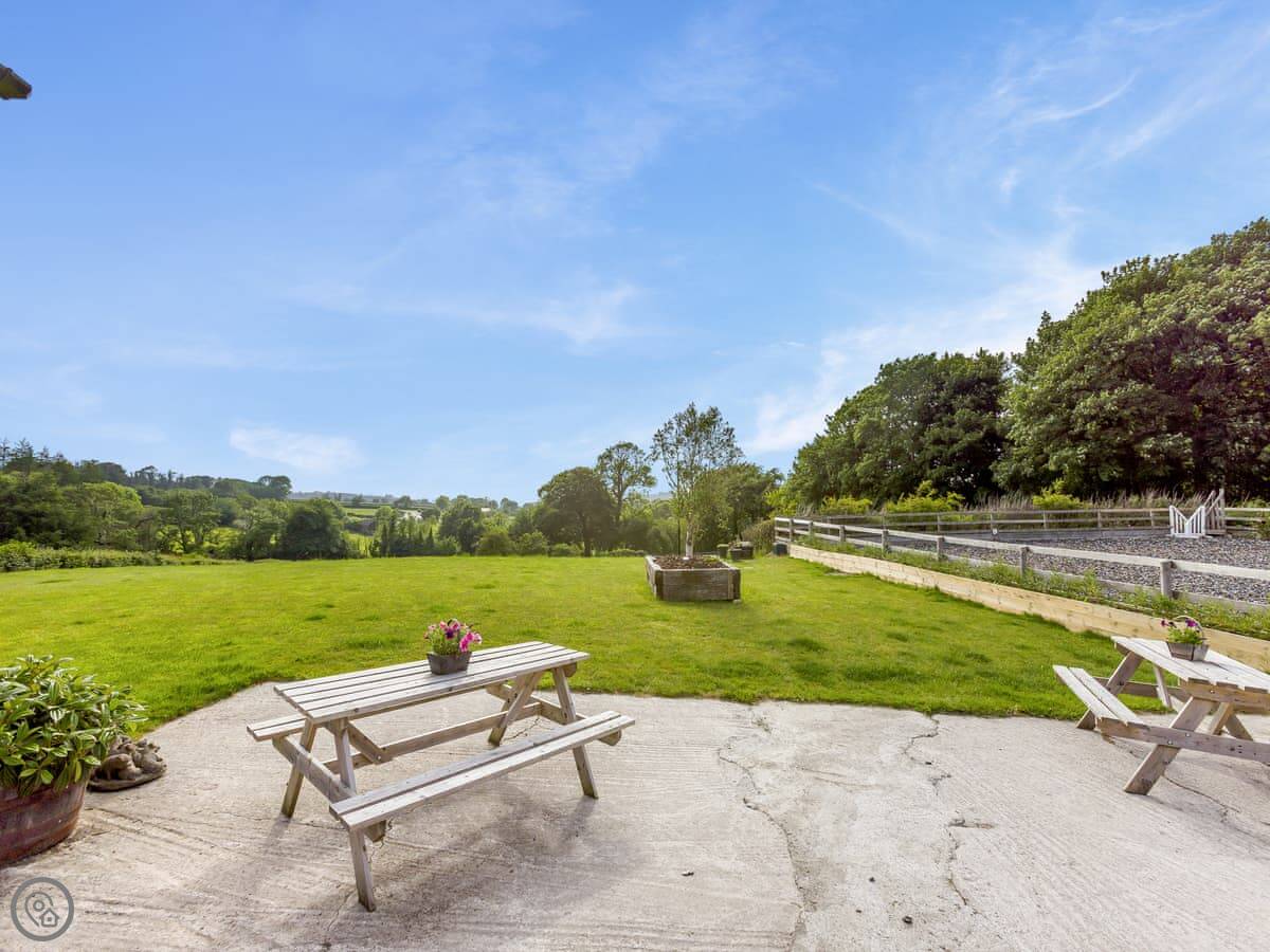 Outside, there's a seating area in the field by the wedding barn we run here. The view from there is across our land towards the moor. You can park right outside.