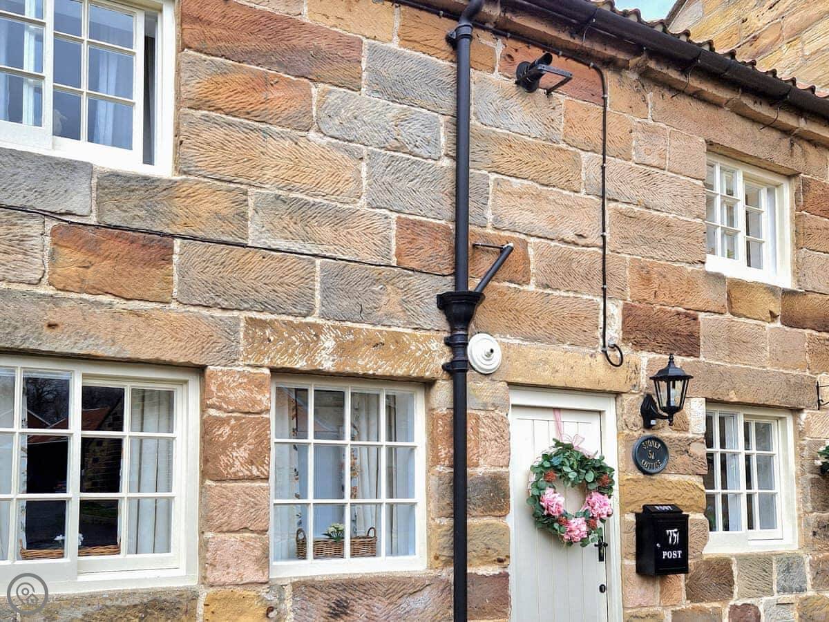 Stoney Cottage is in Loftus, North Yorkshire. It's on a quiet side road with a little stream running past the front.