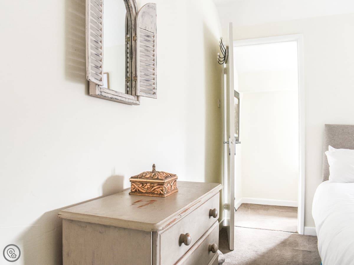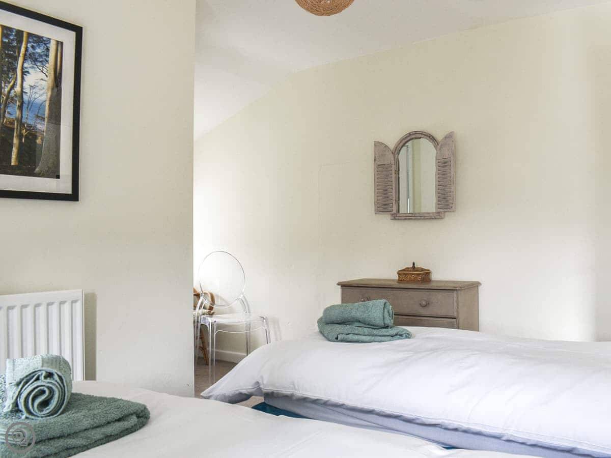 Upstairs, the bedroom is a good size. You can have it as a double or two singles. There's an ensuite bathroom with a shower. Plenty of storage.