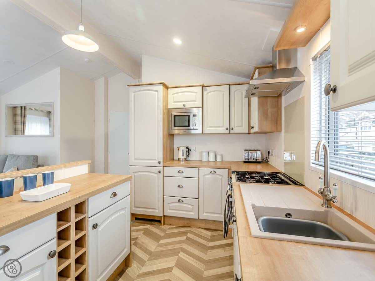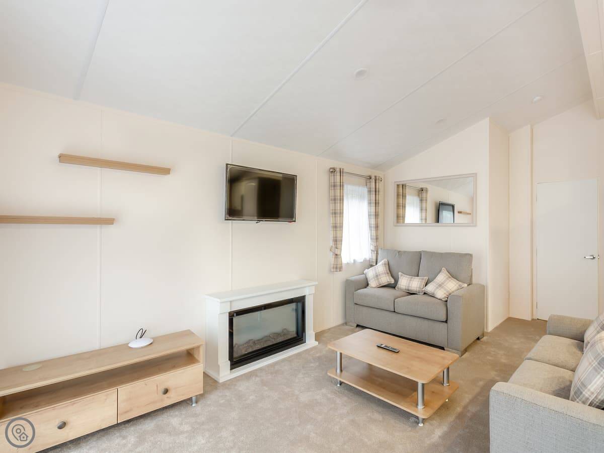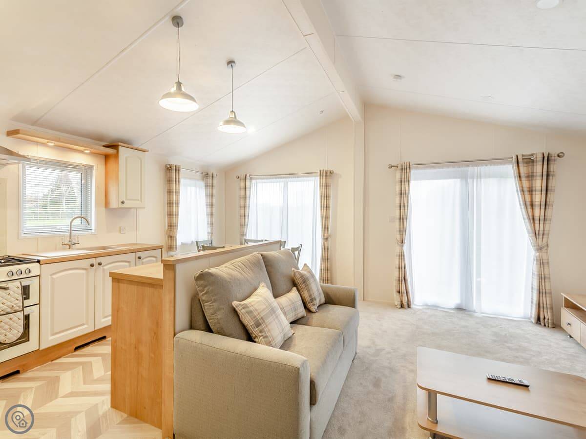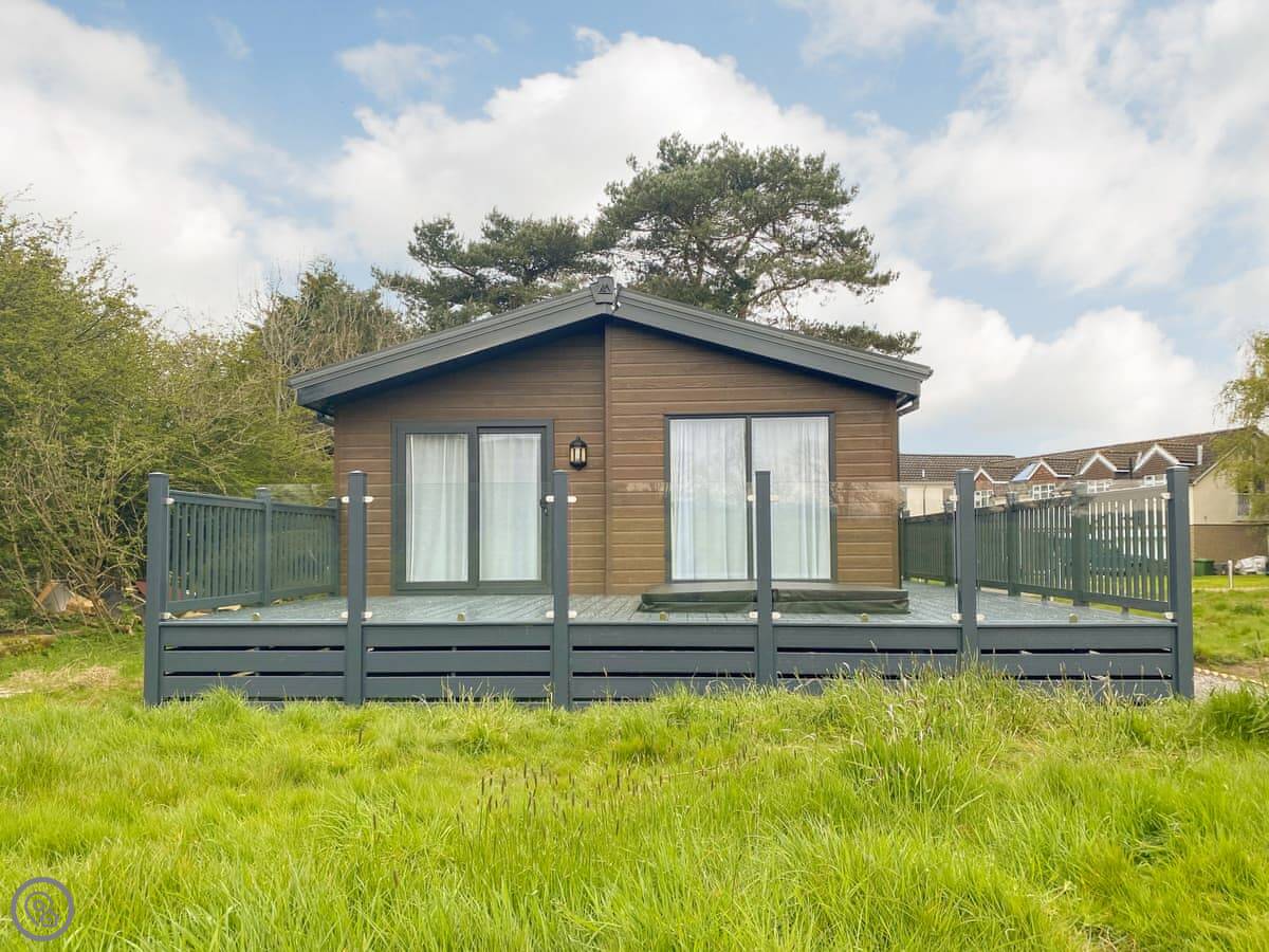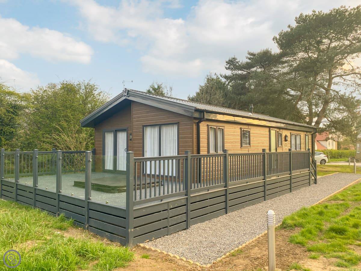 The lodge is called Roseberry Topping and it's near Great Broughton. It's one of a pair set back from the road. You get your own bit of patio with a hot tub. The view is just fields and hills. Good for stargazing.