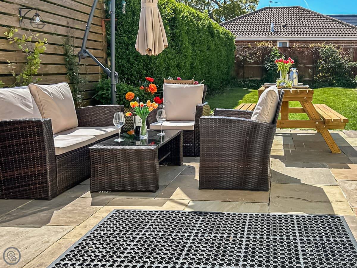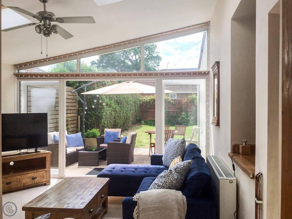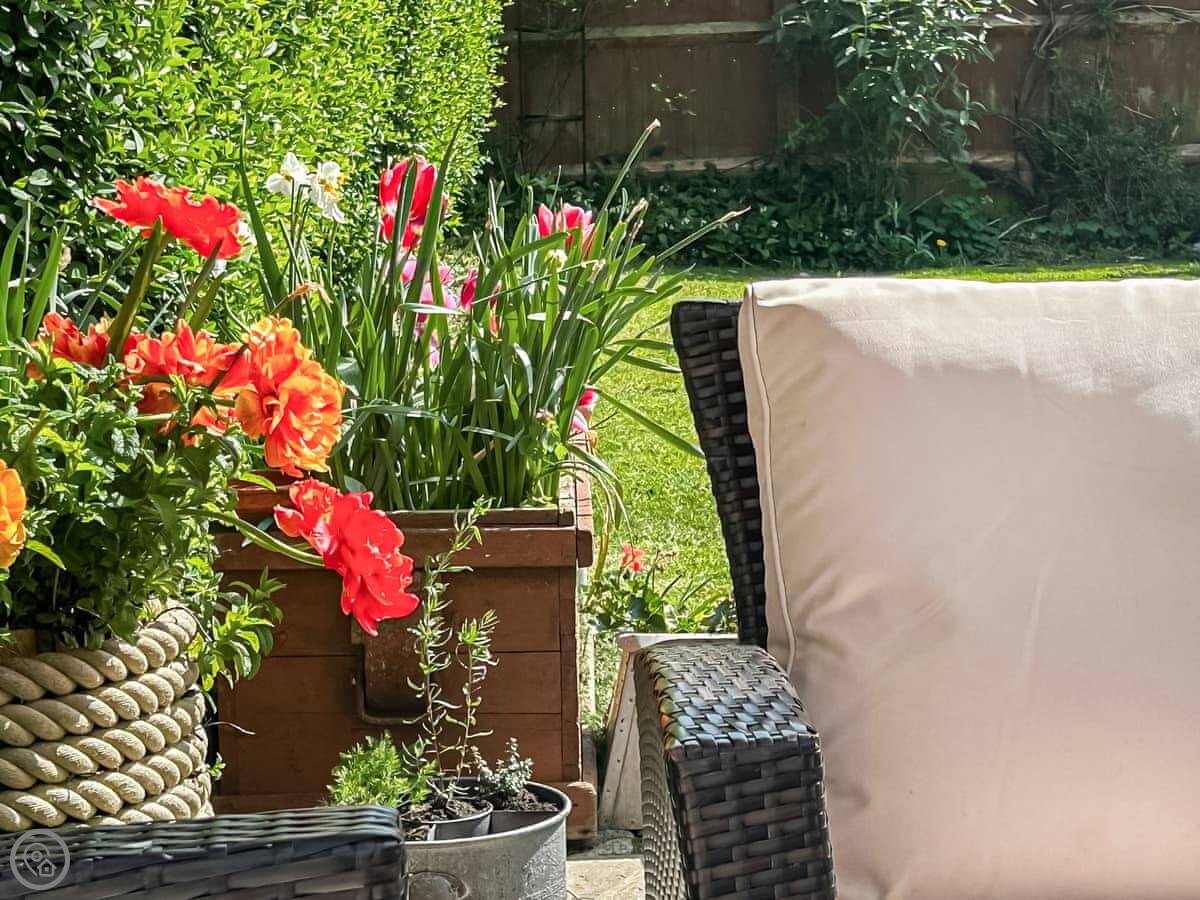 Selsmore Cottages are on a private lane in South Hayling. It's quiet. You get number three, which is an end terrace. The garden is fully enclosed, which is good if you've got kids or a dog.