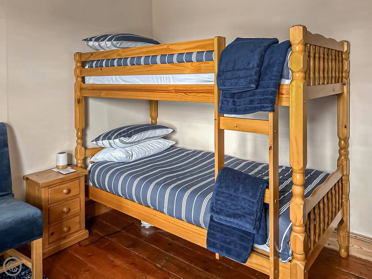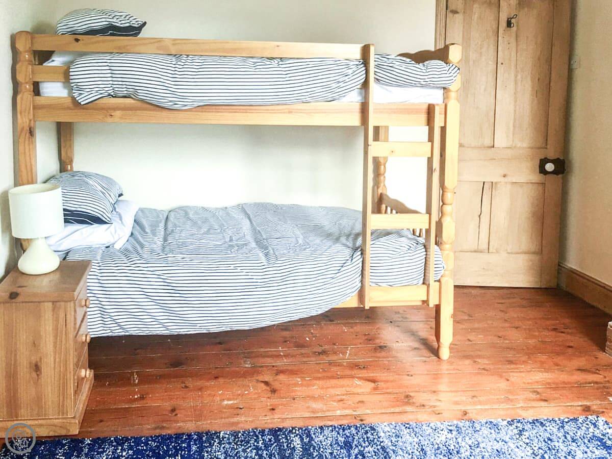 It sleeps six. Three bedrooms, one bathroom. There's a downstairs loo as well. It's got a 4 Star rating, so it's comfortable and well looked after. The stairs are a typical cottage staircase, so they turn a corner and are a bit steep.