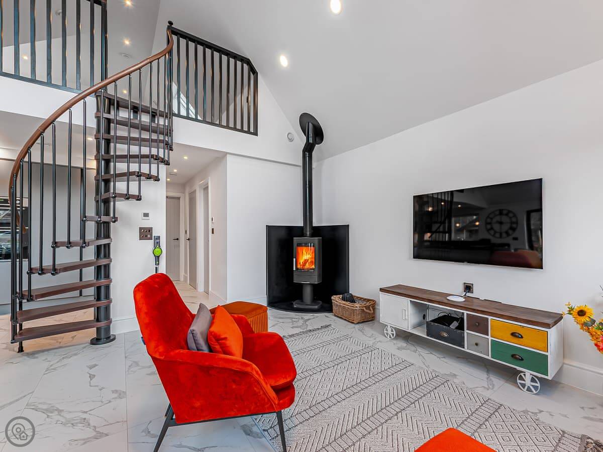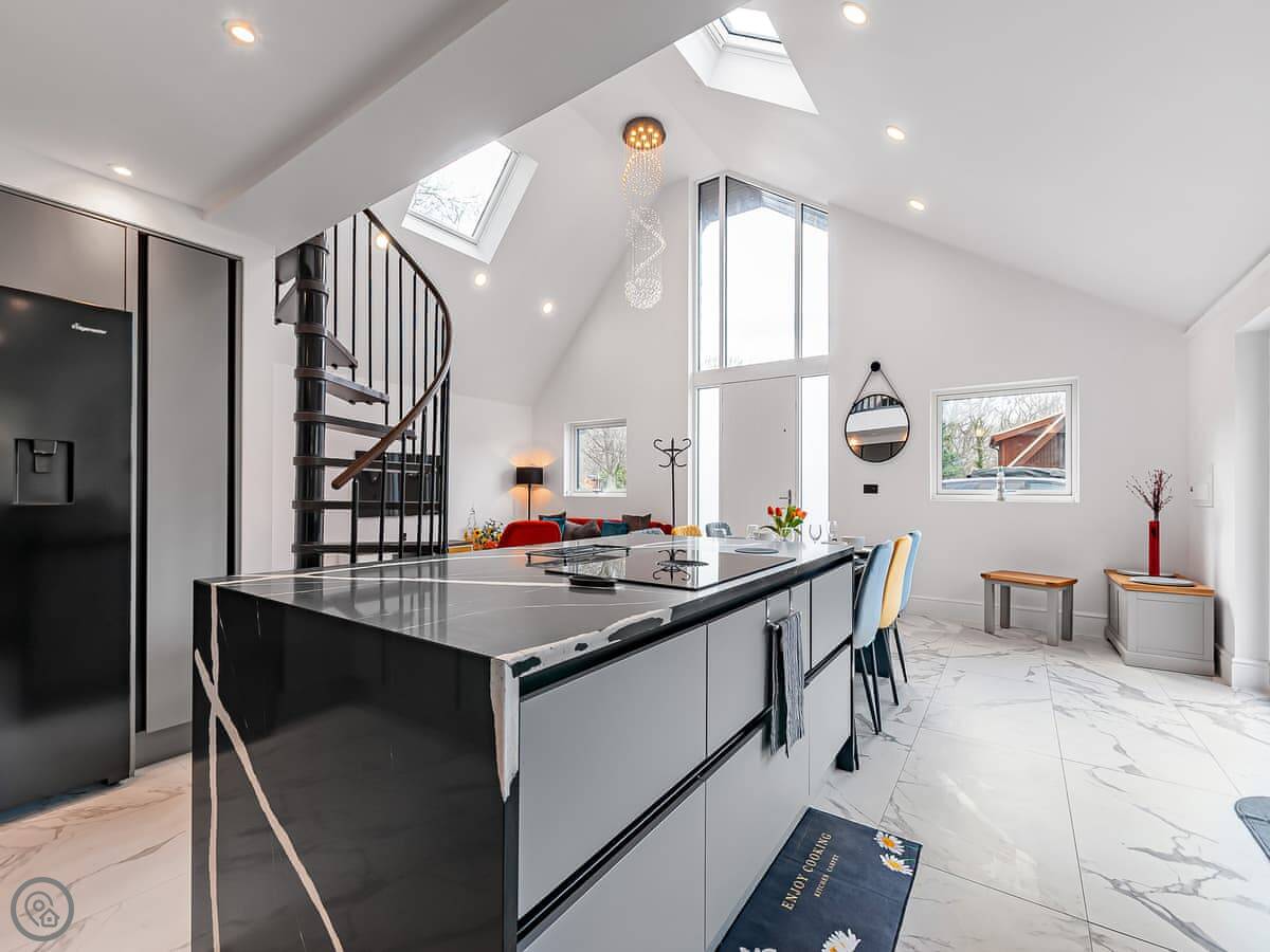 This absolutely stunning, three bedroom house was designed, built and furnished to a very high standard, and offers pure luxury for guests! From the large, spacious, open-plan living area, which includes a wood burner, to all the expected kitchen mod cons, the property offers a woodland rural retreat feel, yet is located around 5-minute drive to the beaches of Whitstable! Downstairs has two bedrooms, whilst the third bedroom is located on the first floor, which is accessed via a stylish spiral staircase. This leads you to a lovely galleried floor with a rear glass wall overlooking the woodlands, giving you that rural feeling.
