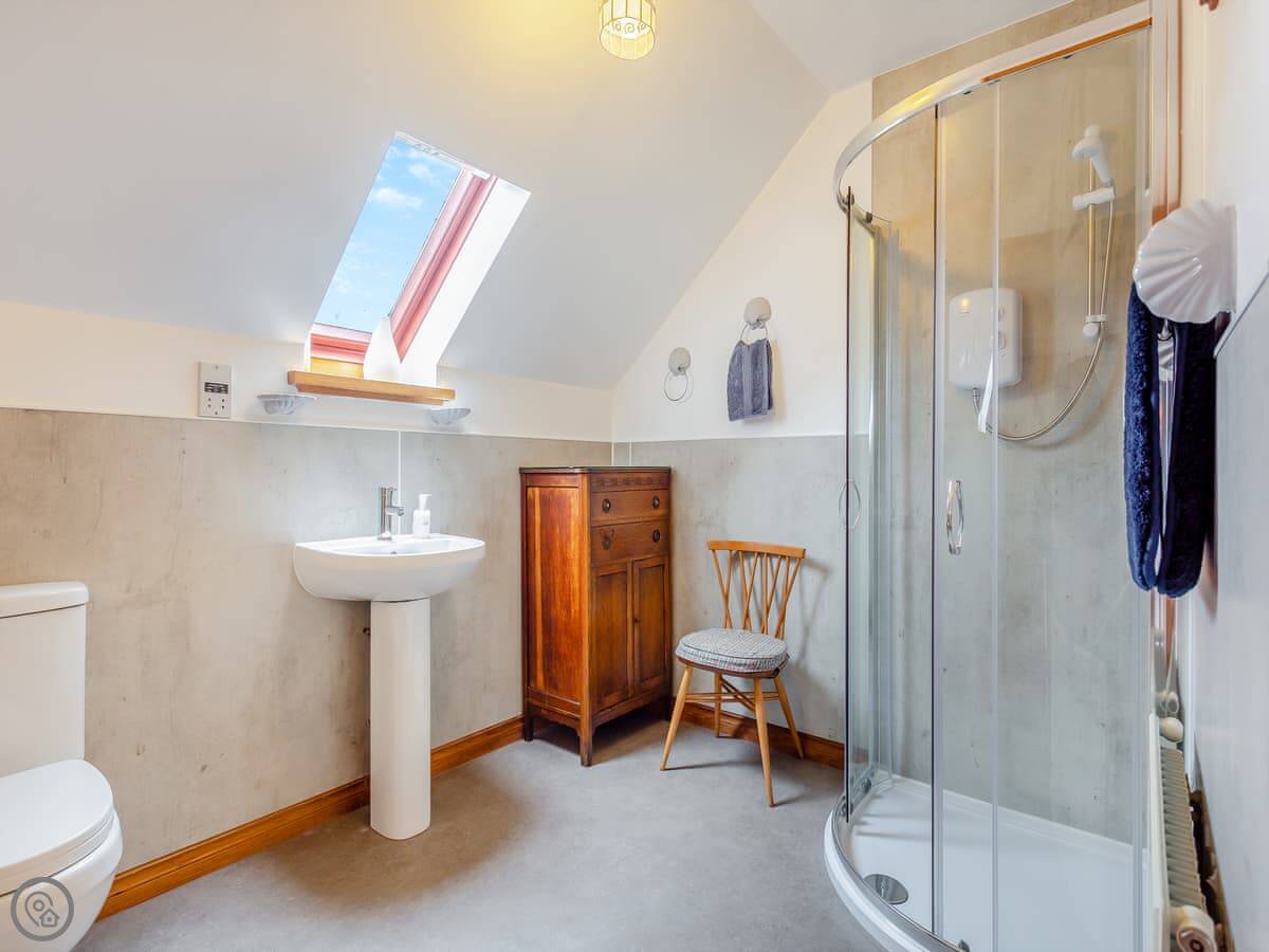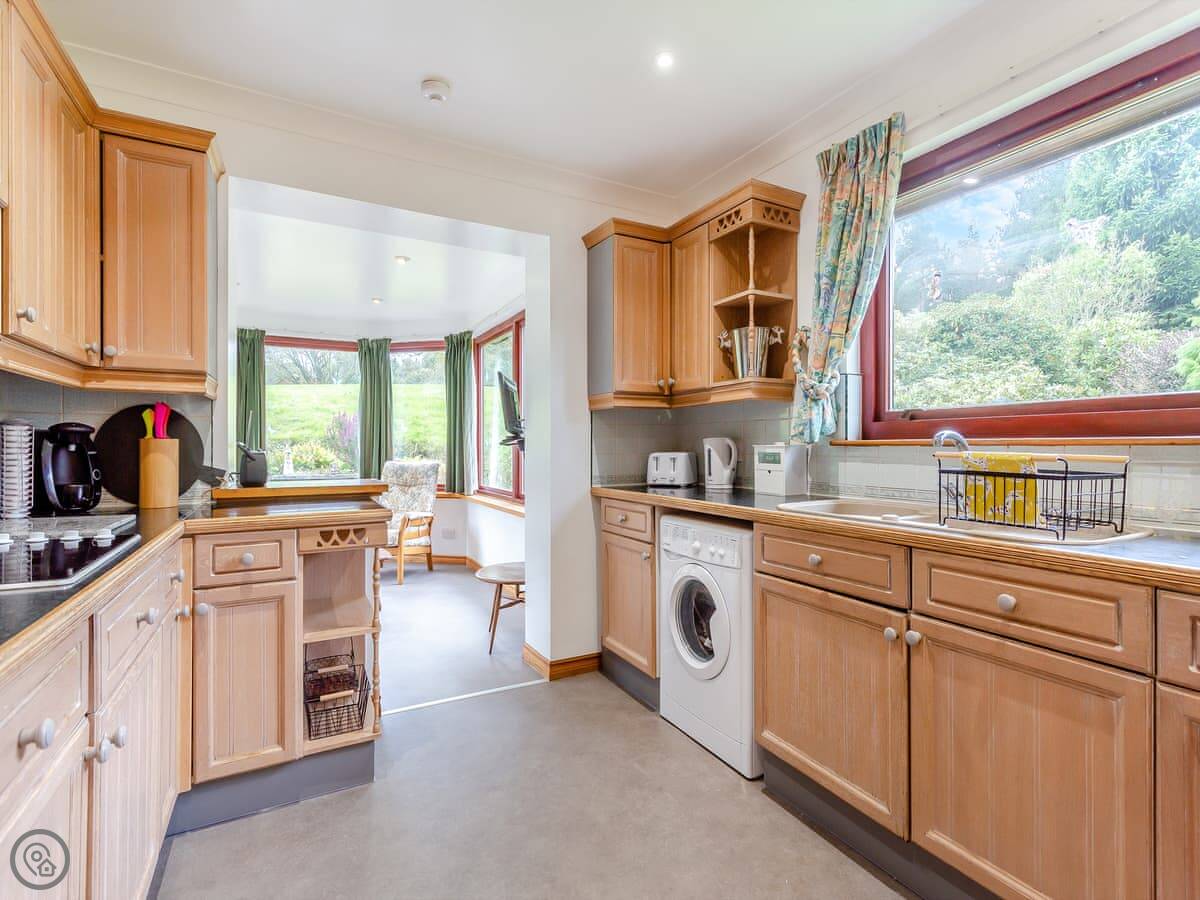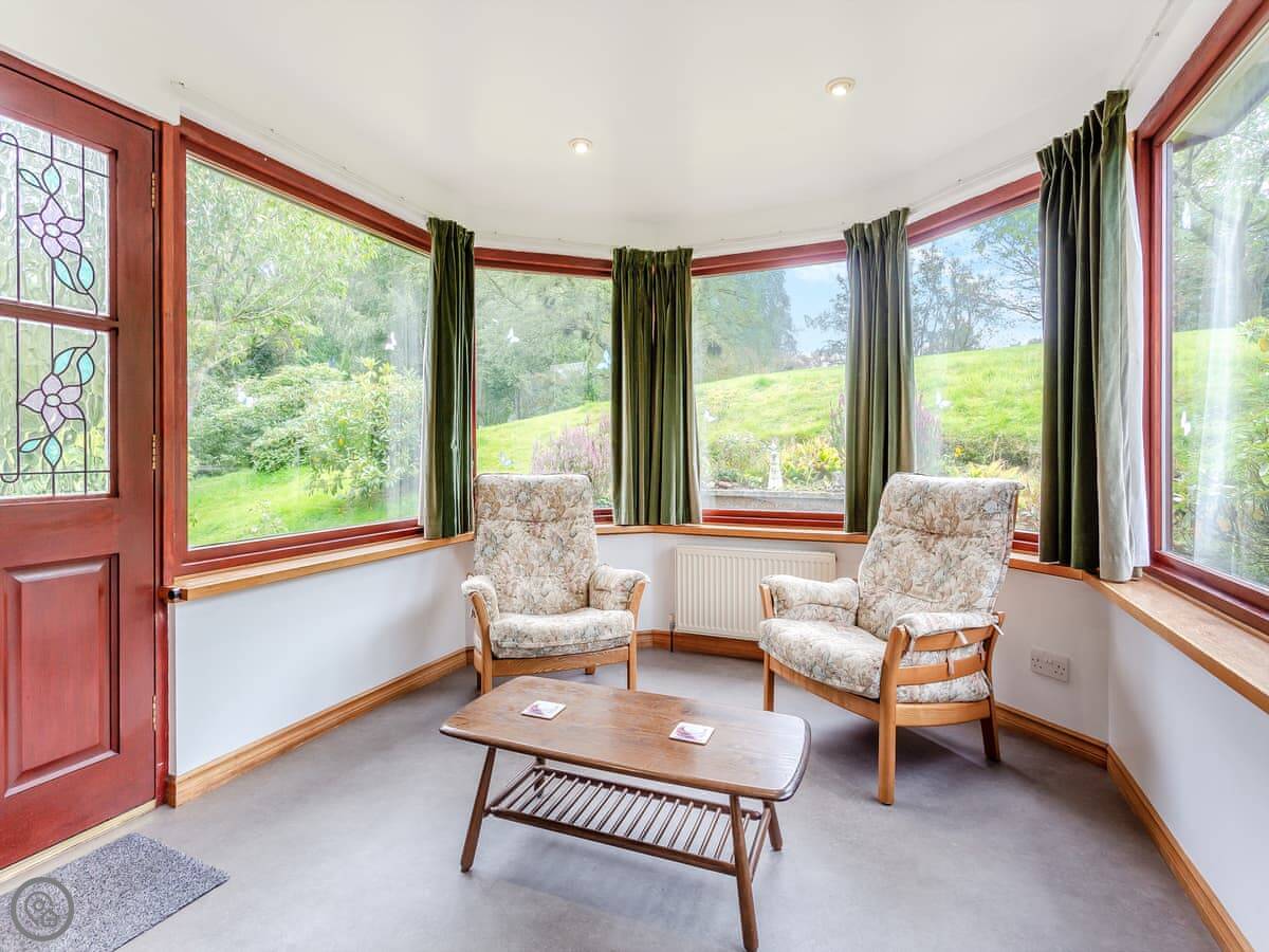 The living area is open-plan at the front, so you get the view. There's a conservatory at the back, which is another place to sit. The kitchen has what you need. There's a separate toilet downstairs.