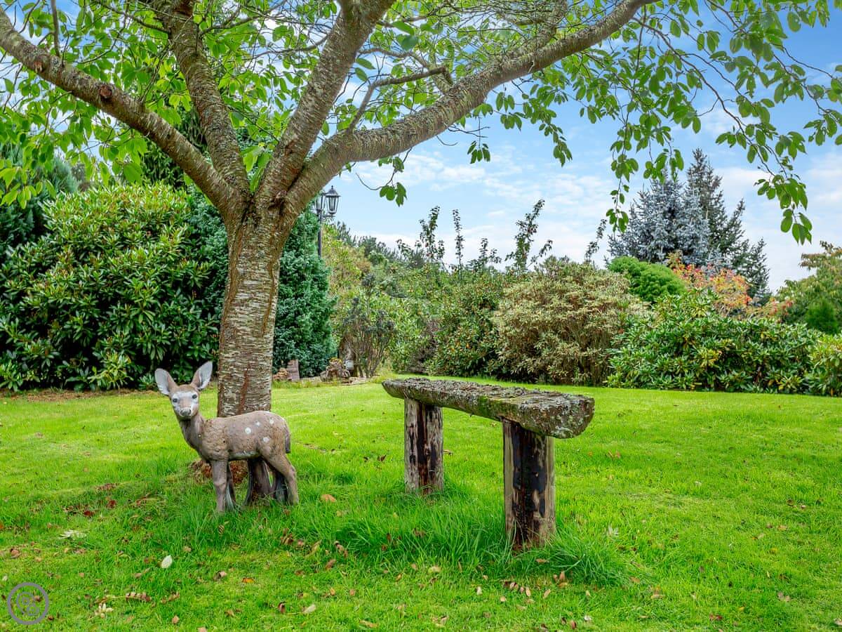 Drummond House is off the A96, between Inverness and Nairn, near Loch Flemington. It's a bungalow. The garden is big, enclosed, and has lots of trees and different spots to sit. You'll see rabbits and sometimes deer.