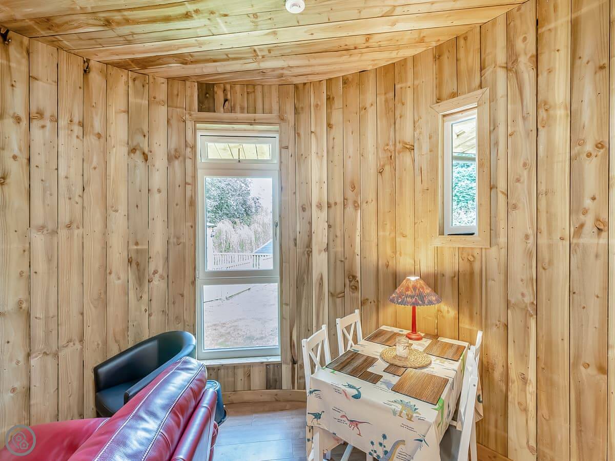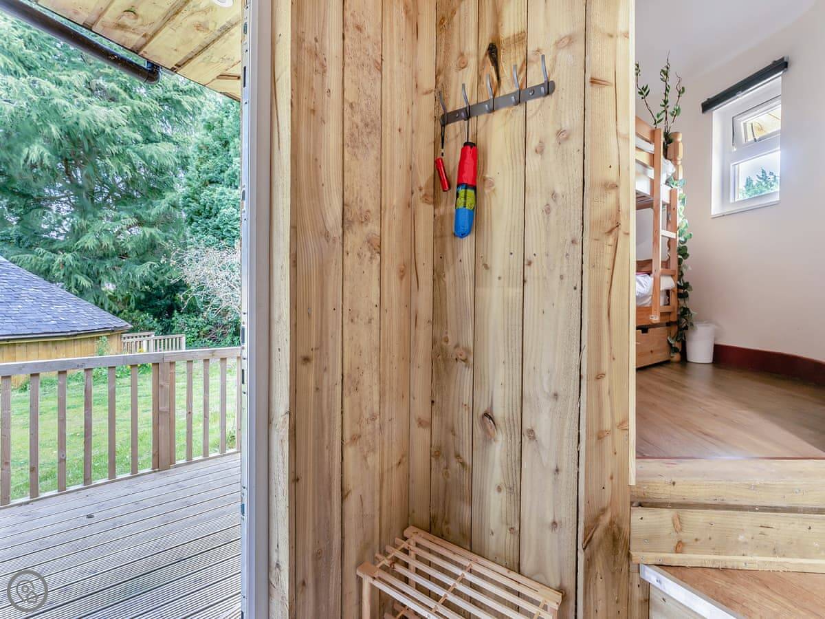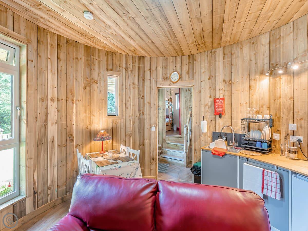 The Treehouse is in Polmont, near Falkirk. It's one of six places built in the walled garden of Kinneil House. It's detached, built under a big cherry blossom tree, with three round rooms on different levels.