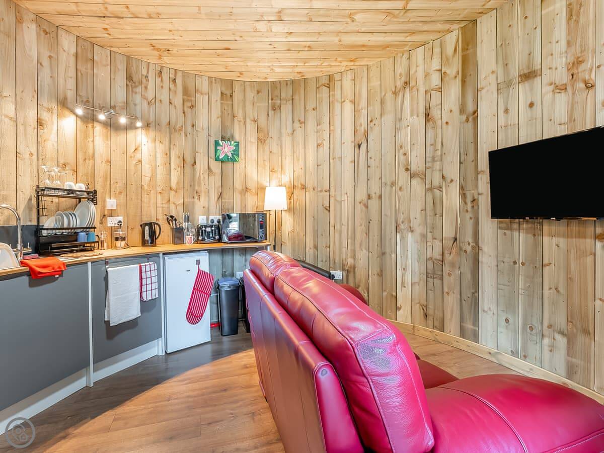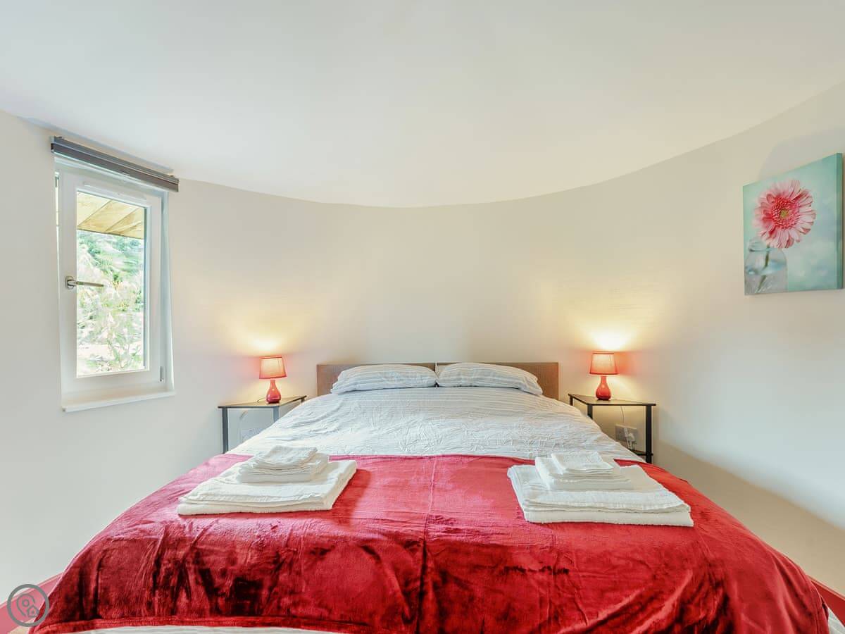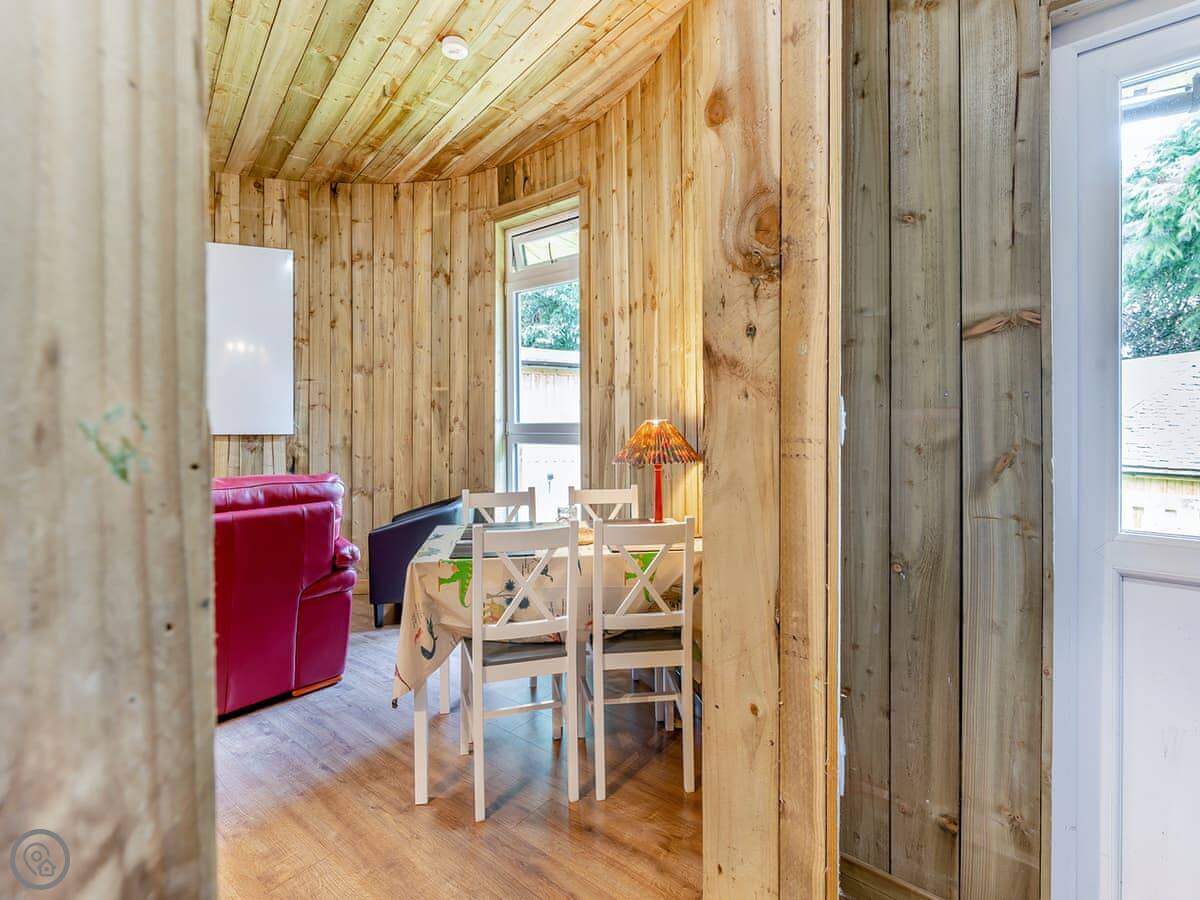 The Treehouse is in Polmont, near Falkirk. It's one of six places built in the walled garden of Kinneil House. It's detached, built under a big cherry blossom tree, with three round rooms on different levels.
