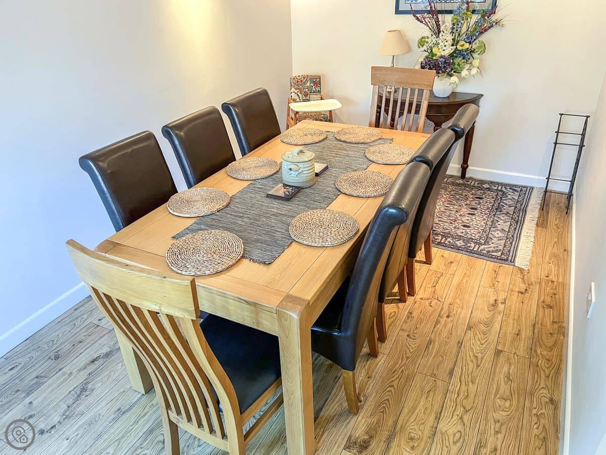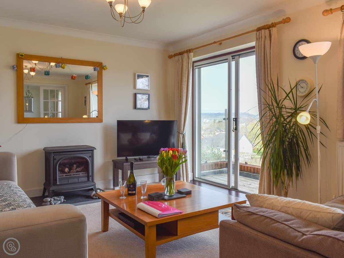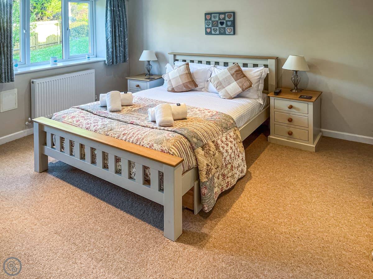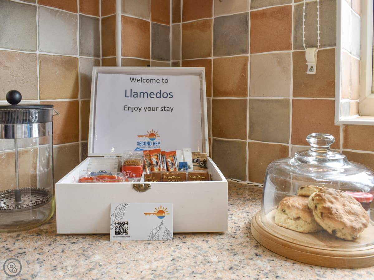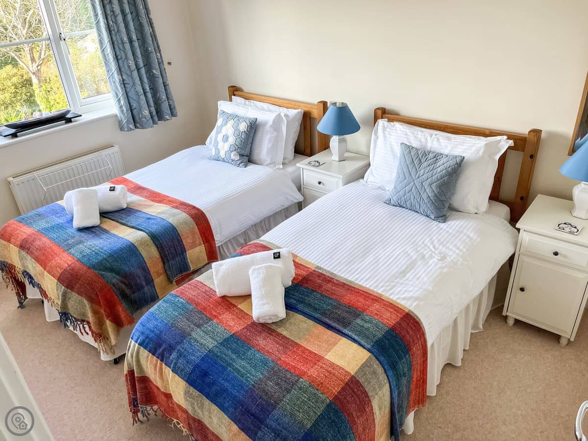 This is Llamedos. It's in Bideford, up a quiet cul-de-sac. A detached house, sleeps eight. You've got parking for two cars on the drive.