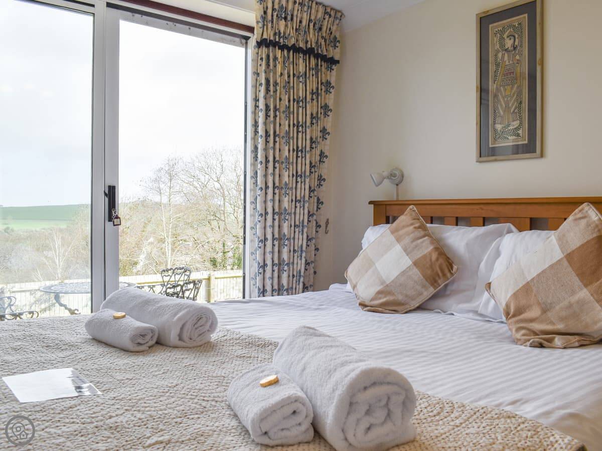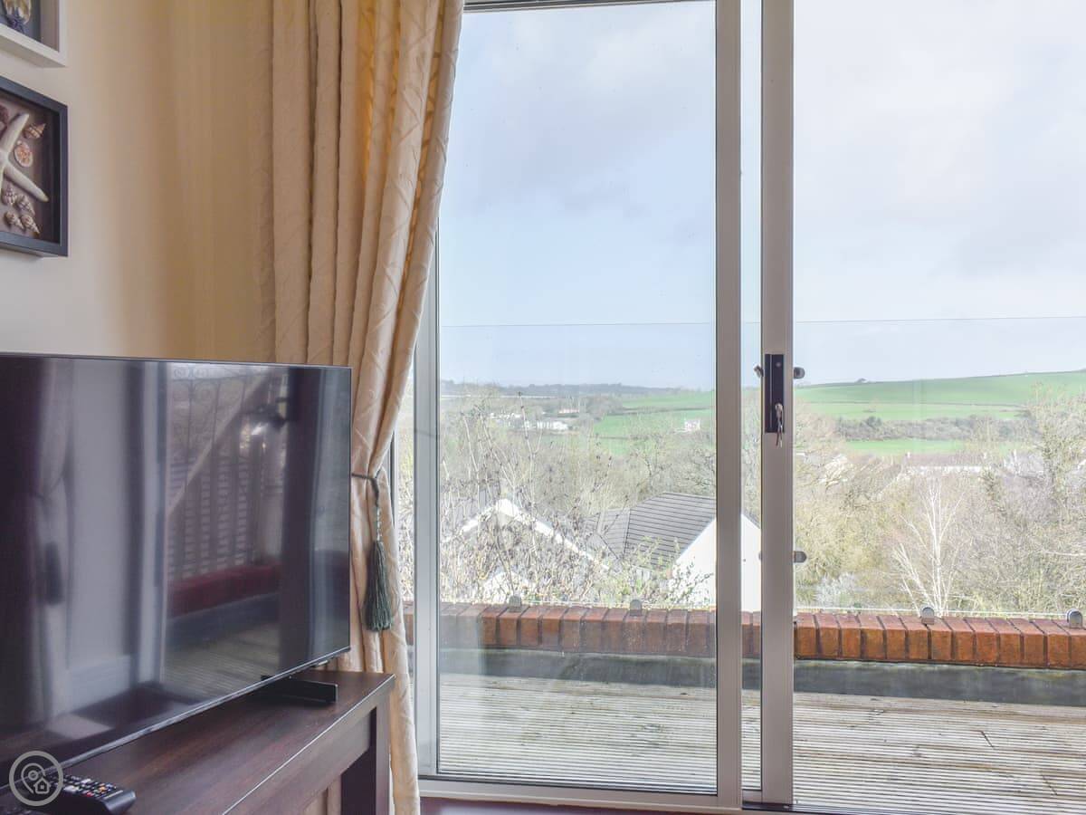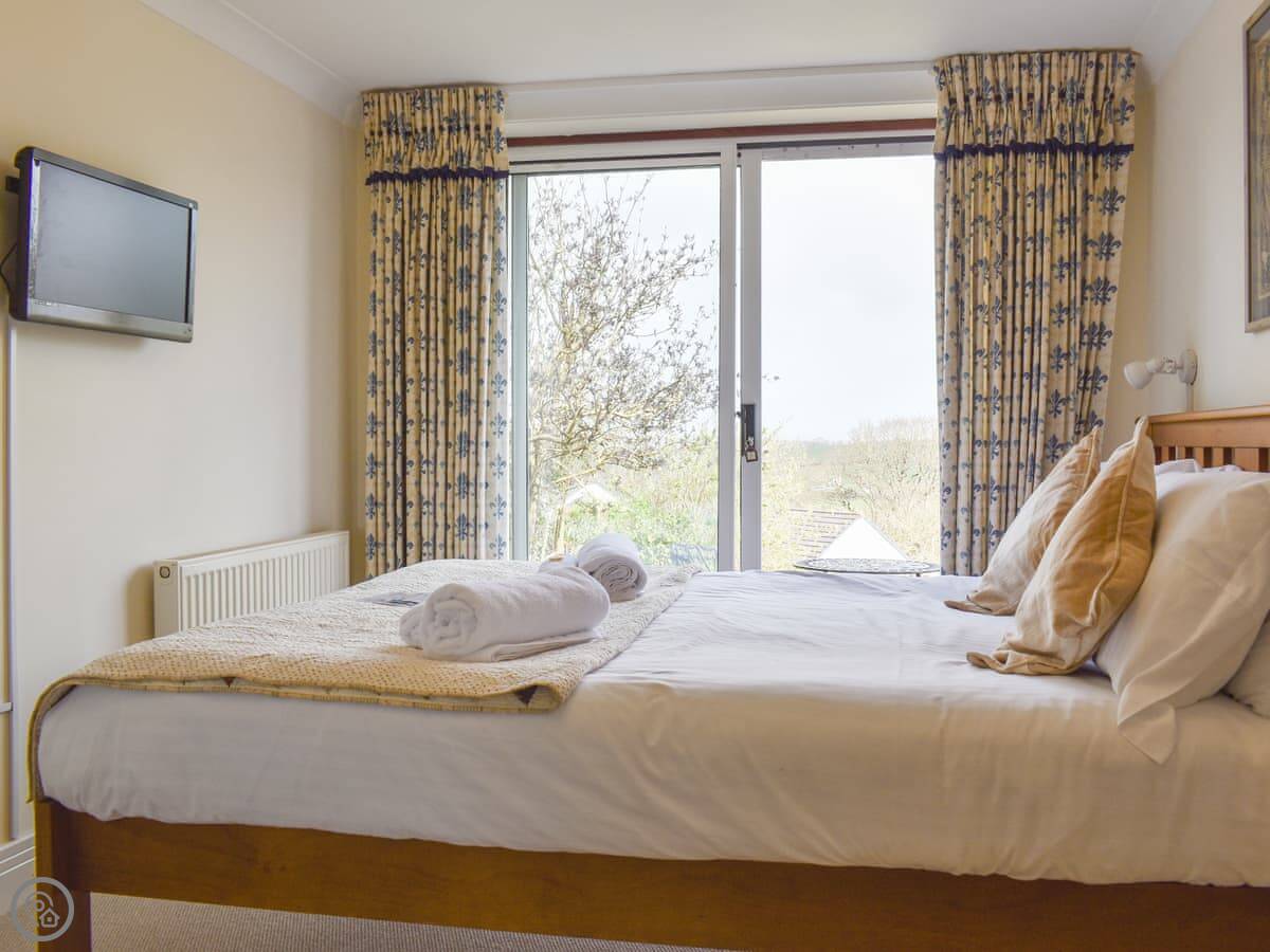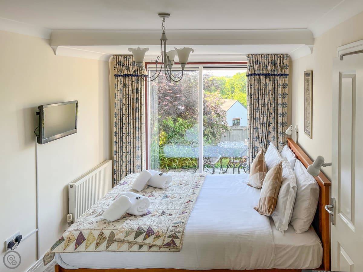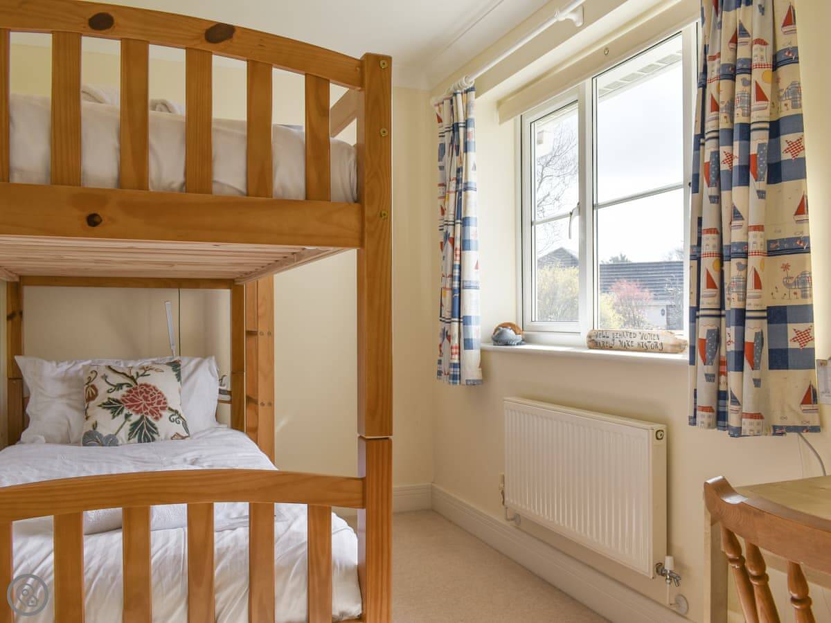 This is Llamedos. It's in Bideford, up a quiet cul-de-sac. A detached house, sleeps eight. You've got parking for two cars on the drive.