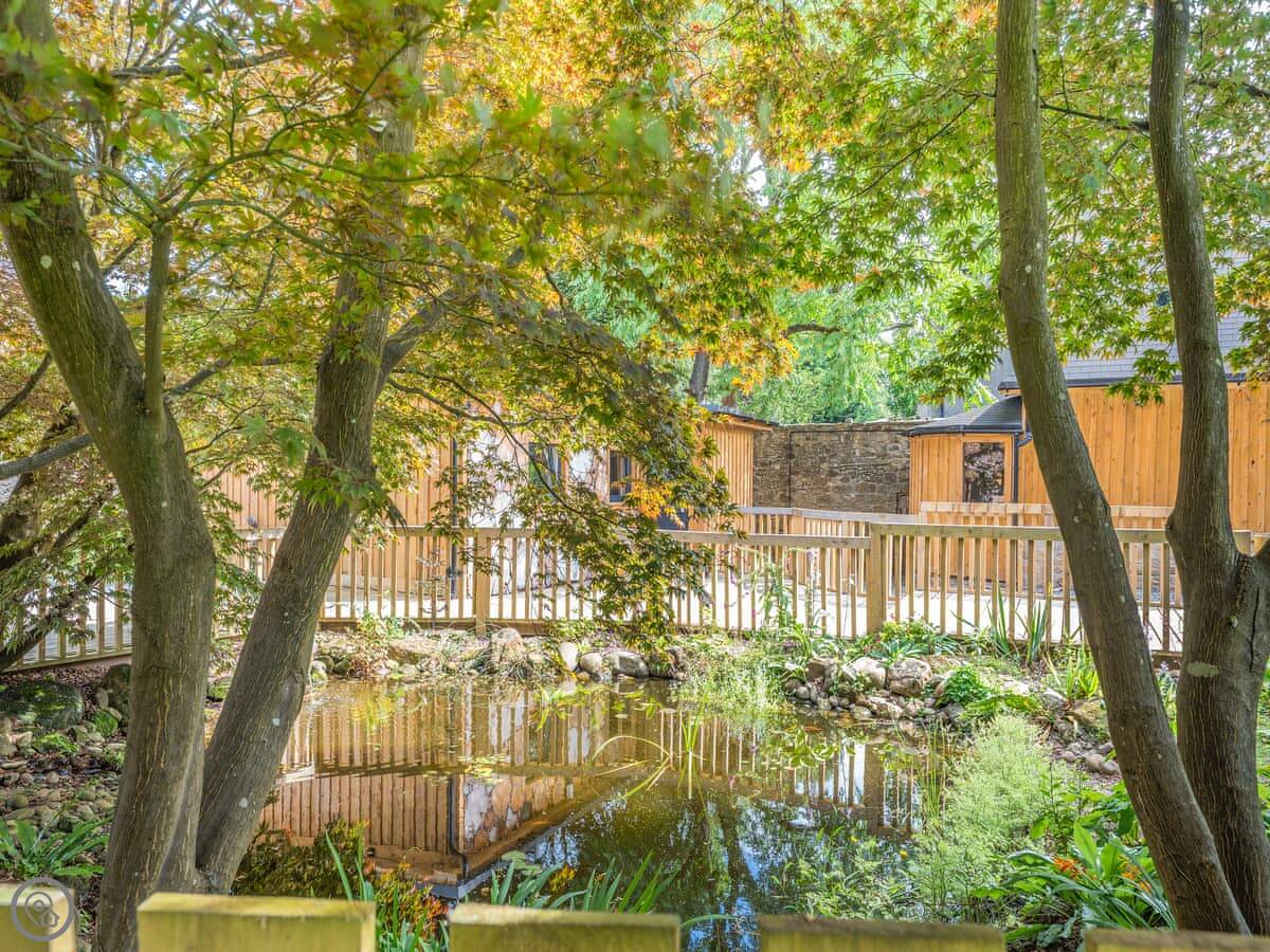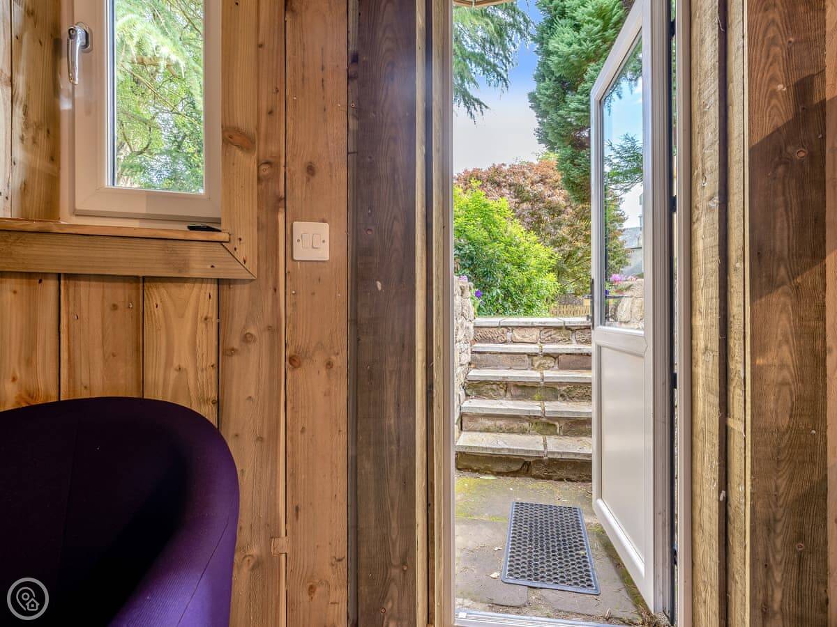 Outside, you have the patio and a BBQ. You can wander around the shared walled garden. You'll see birds and other wildlife in there. It's quiet.
