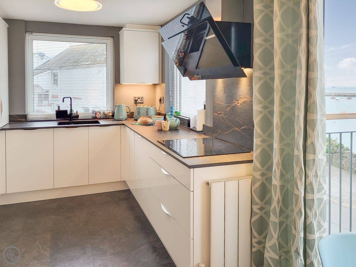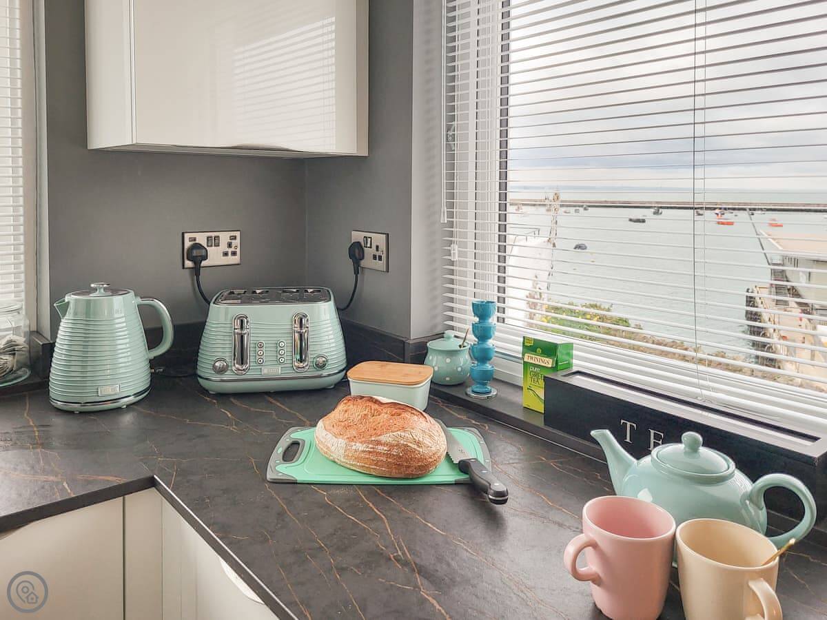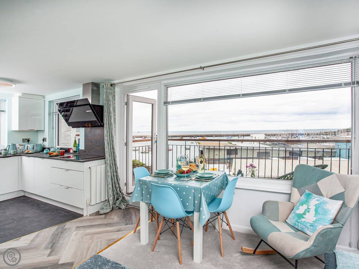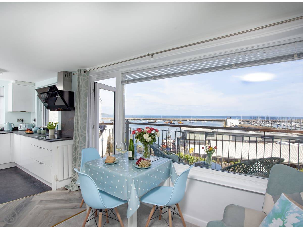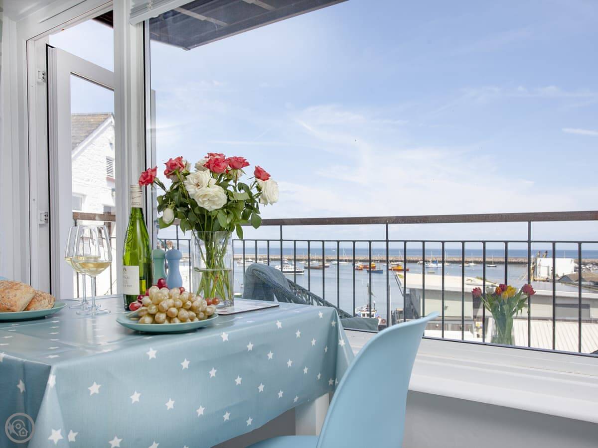 The main thing is the view. It looks straight out over the outer harbour and the sea. You’re up a floor, so you get a proper panorama. There’s a balcony off the living area so you can sit outside with it.