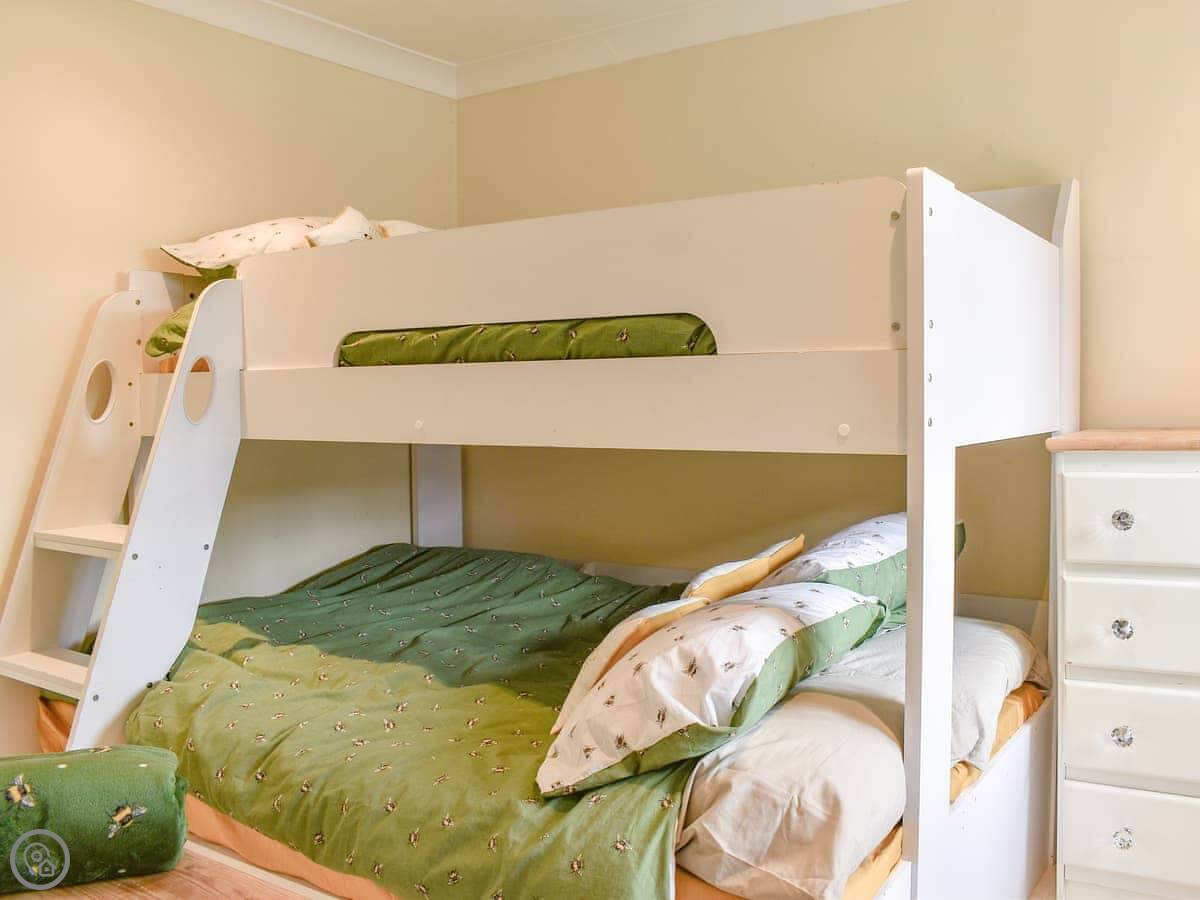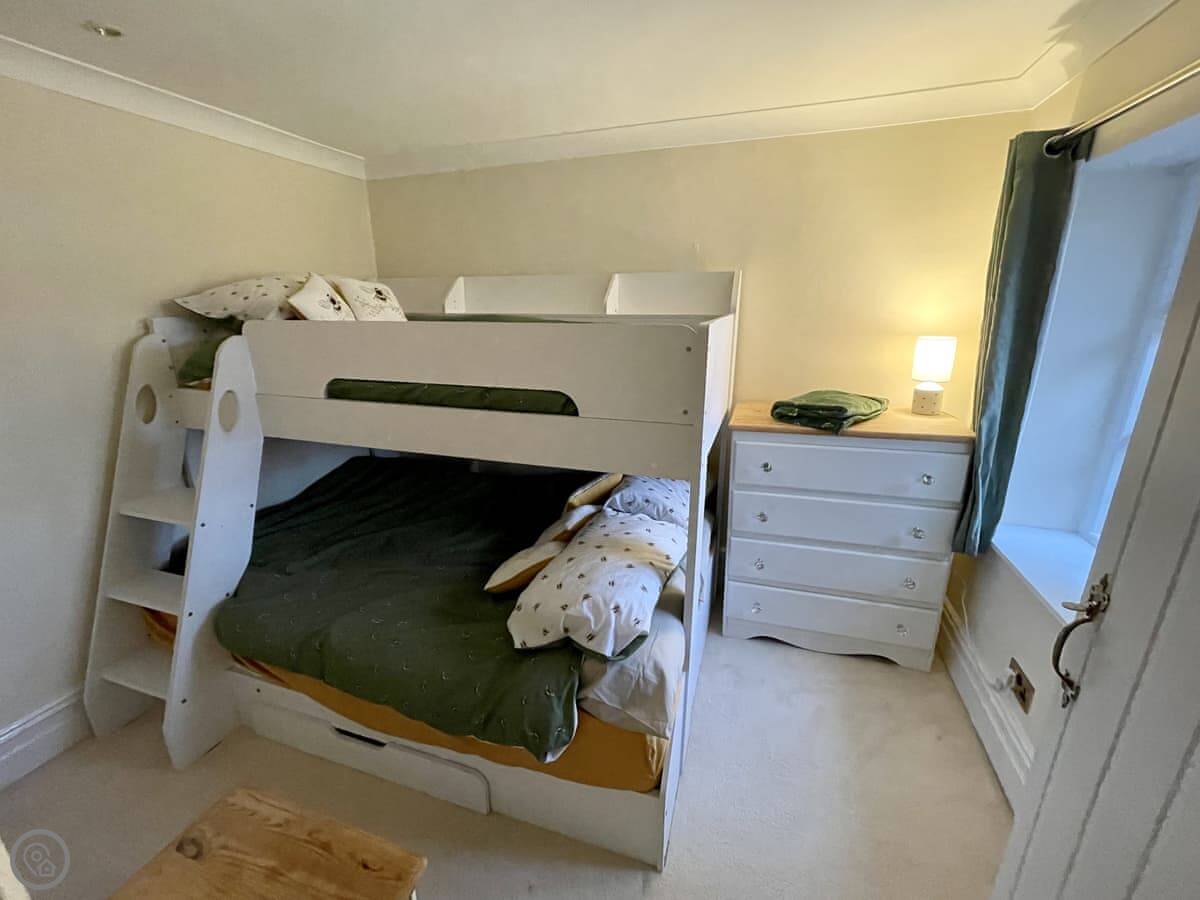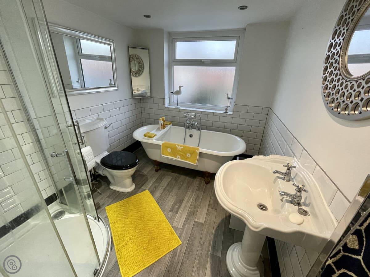 It sleeps five, in two bedrooms. There's one bathroom with a shower and a freestanding bath. It has a 4 Star rating. The stairs are fairly steep, which is common in these cottages.