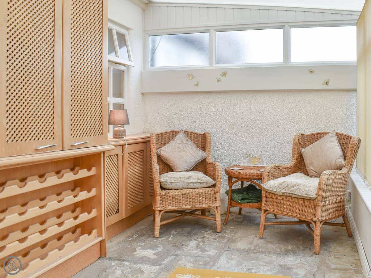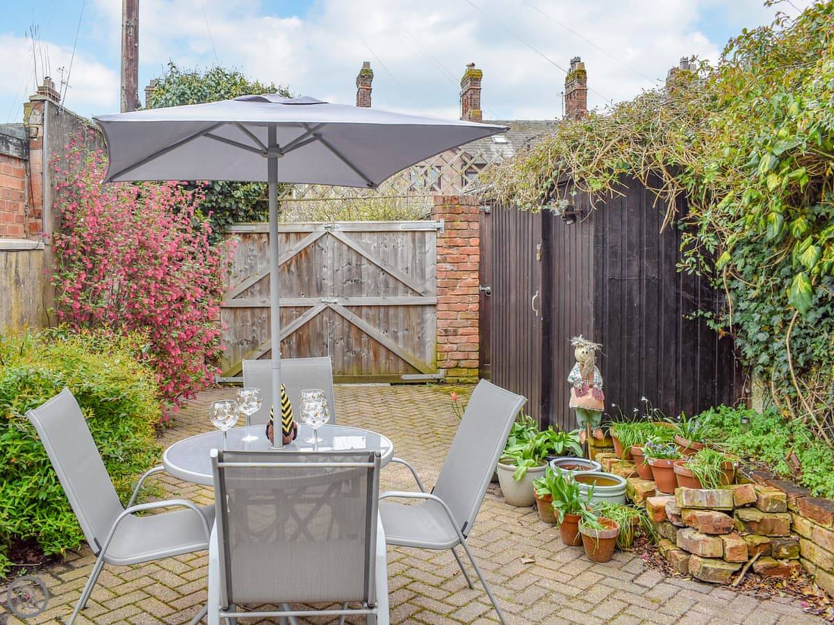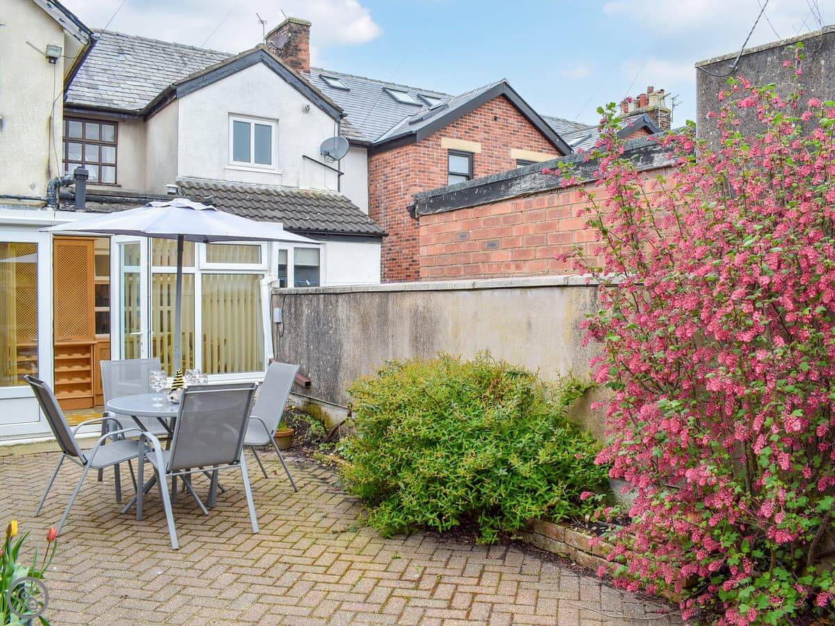 The back yard is fully enclosed. It's paved, so good for sitting out with a coffee. The conservatory looks onto it.