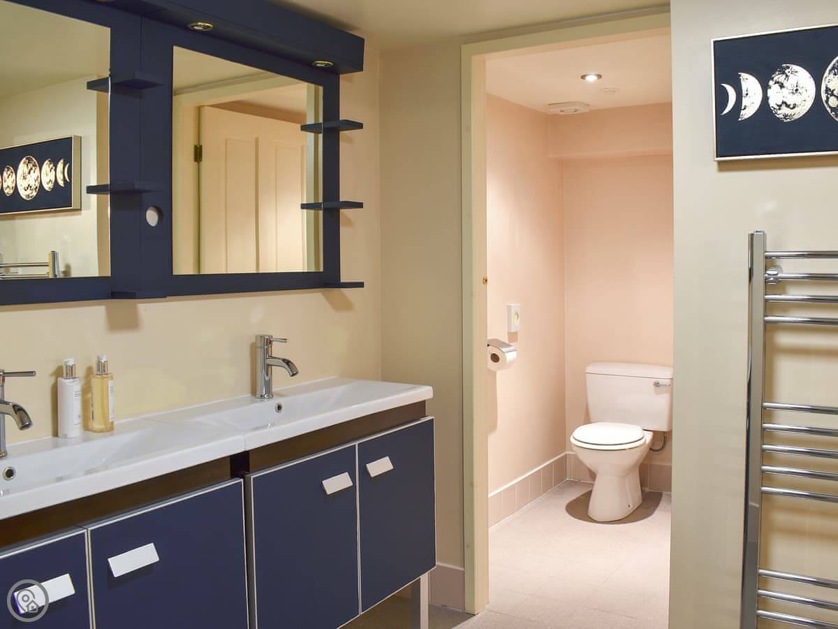 The house sleeps eight. Four bedrooms, all with their own bathrooms. It's a 5 Star place, which means it's well kitted out and comfortable. It's modern inside, but it still feels like a cottage.