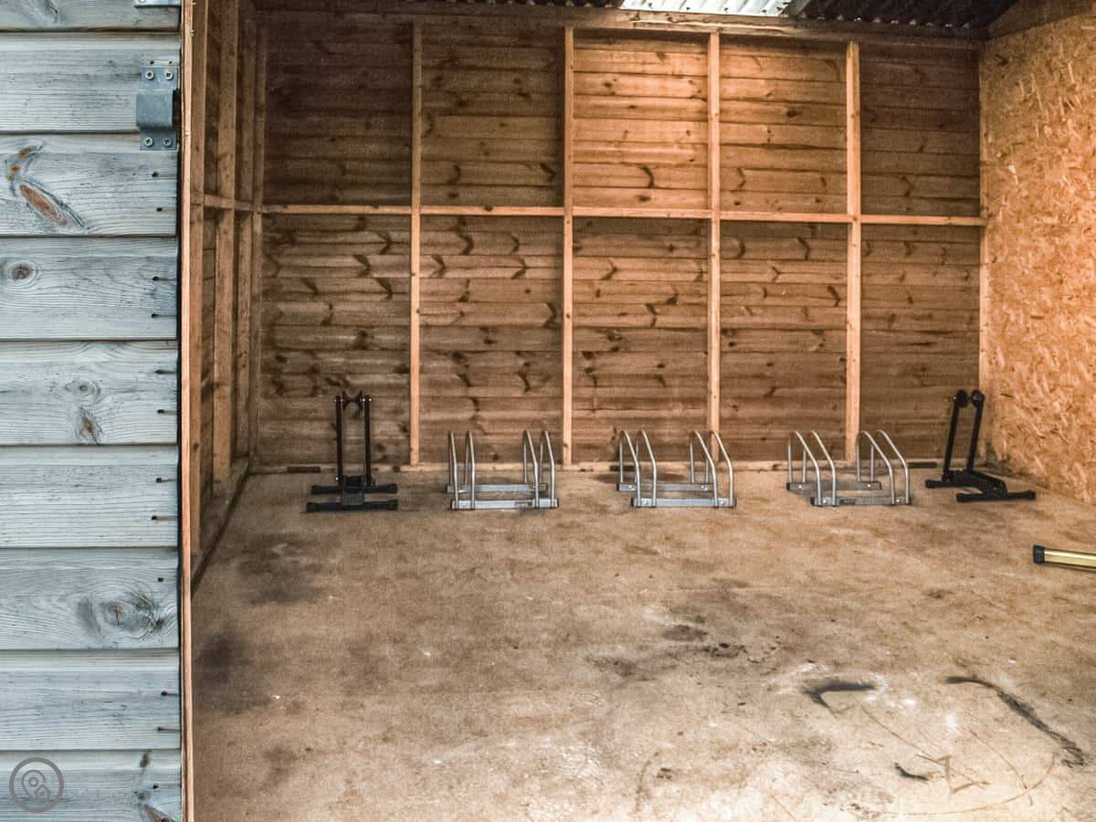 The house has a woodburner, a dishwasher, and a washing machine. Bedding and towels are included. There's a shed with bike racks if you bring cycles. There's parking for two, maybe three cars if you're careful.
