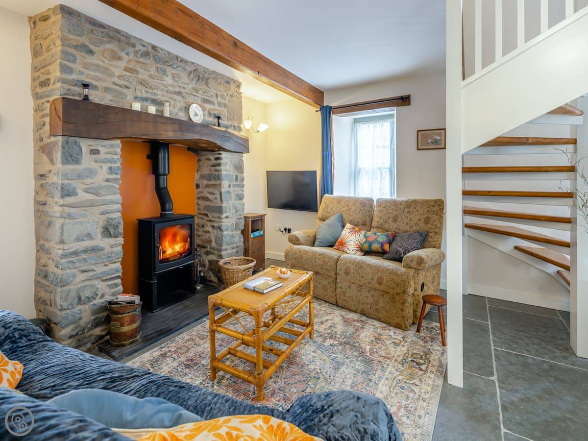 This is Ivy Bush Cottage in Llanddewi Brefi. It’s in a row of three old stone cottages, right in the village. You can walk to two pubs from the door, both do food.