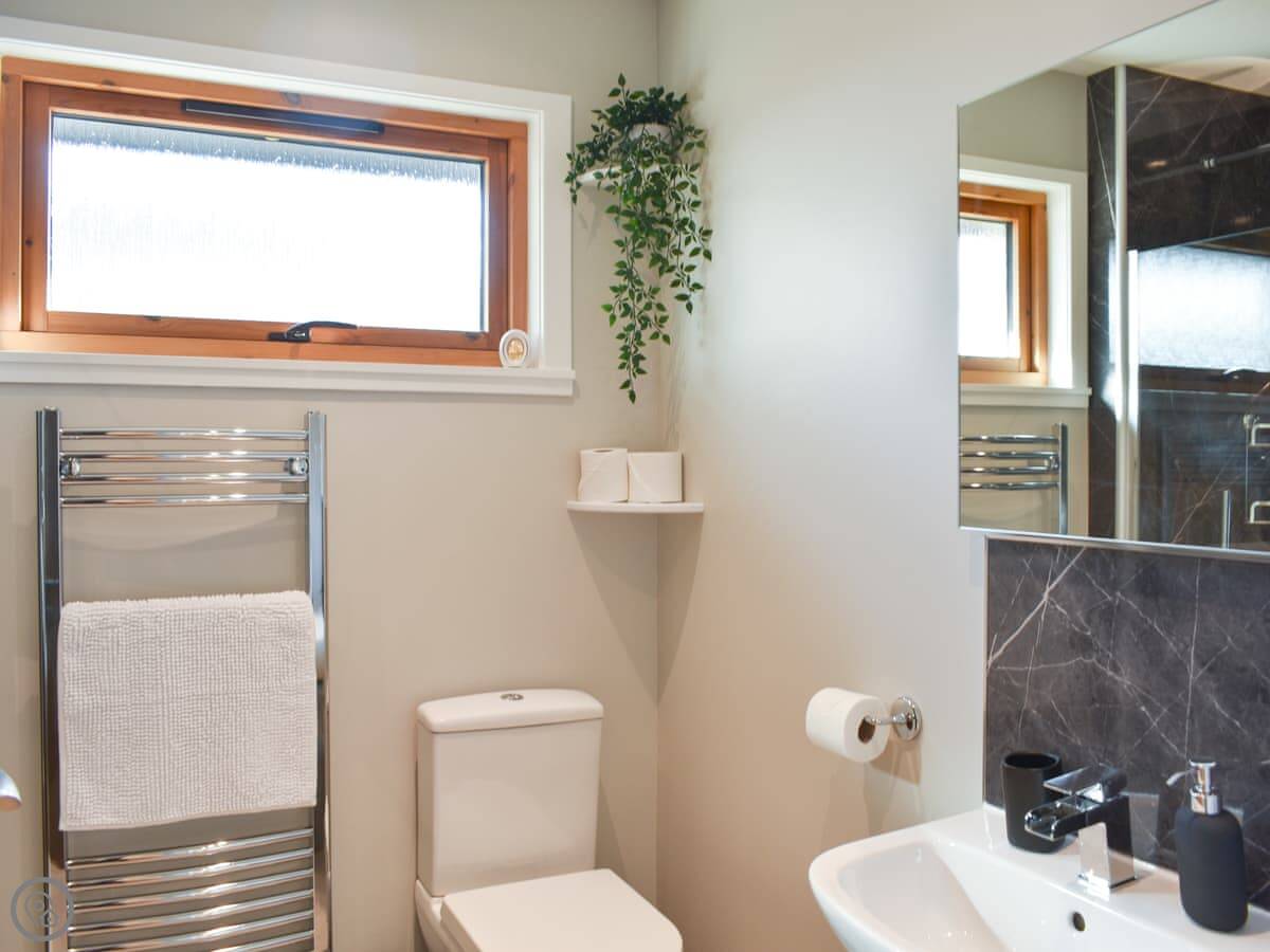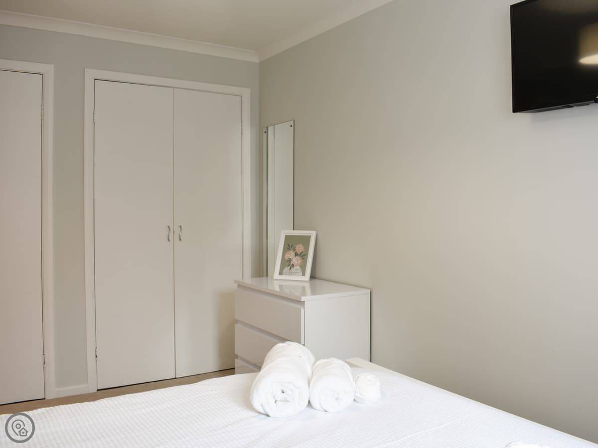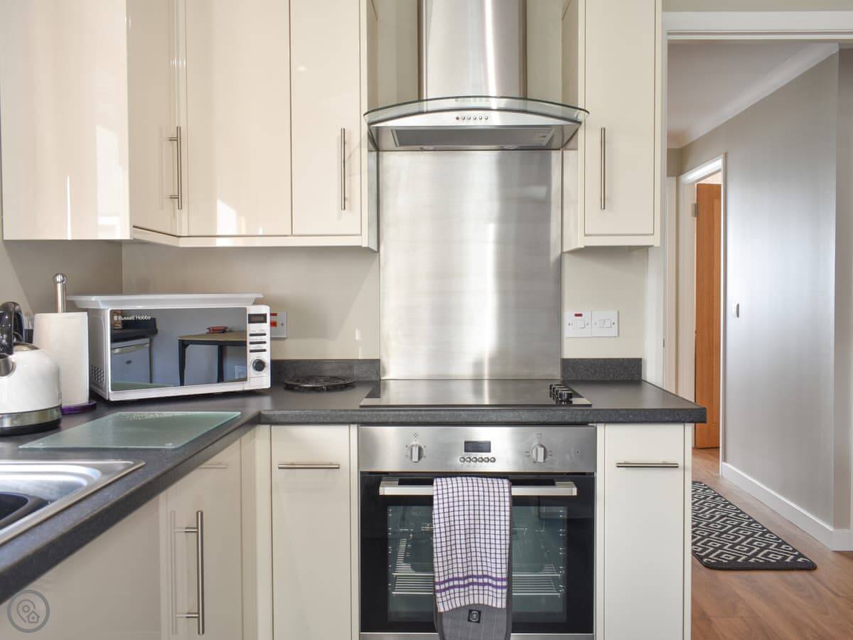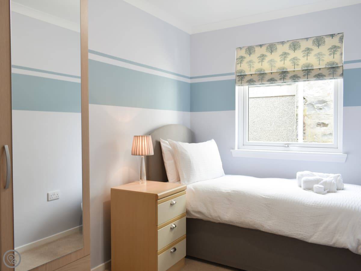 It sleeps four. There are three bedrooms: two doubles and a single. One bathroom with a walk-in shower. It's got a 4 Star rating, so it's comfortable and well looked after.