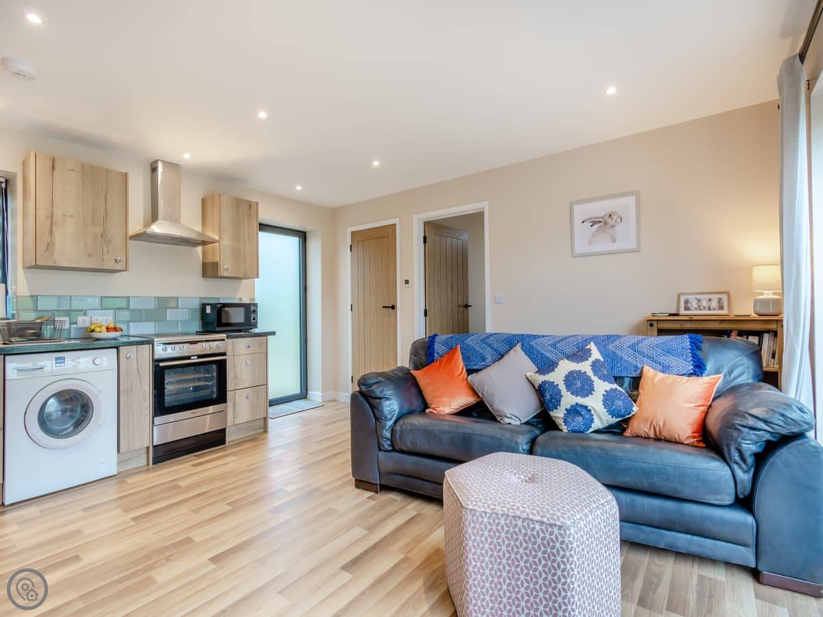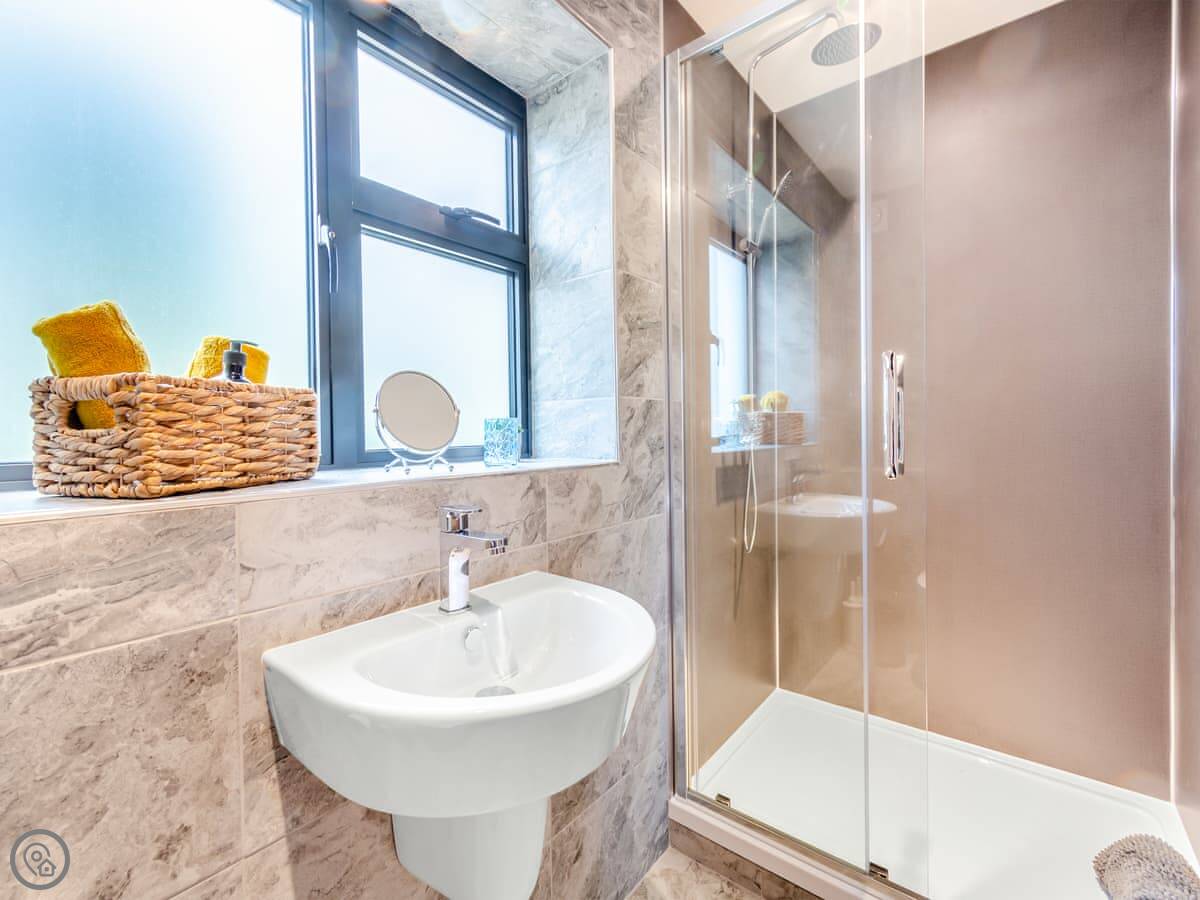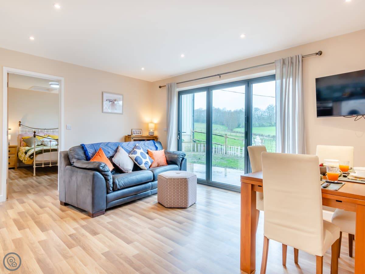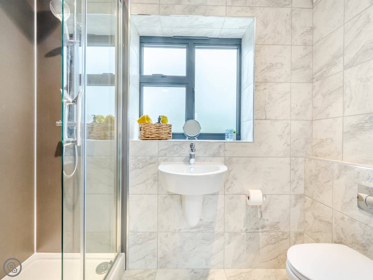 It sleeps four. Two bedrooms, both doubles. Both have their own shower room. Everything is on one level, so no stairs. There's a ramp to the front door.
