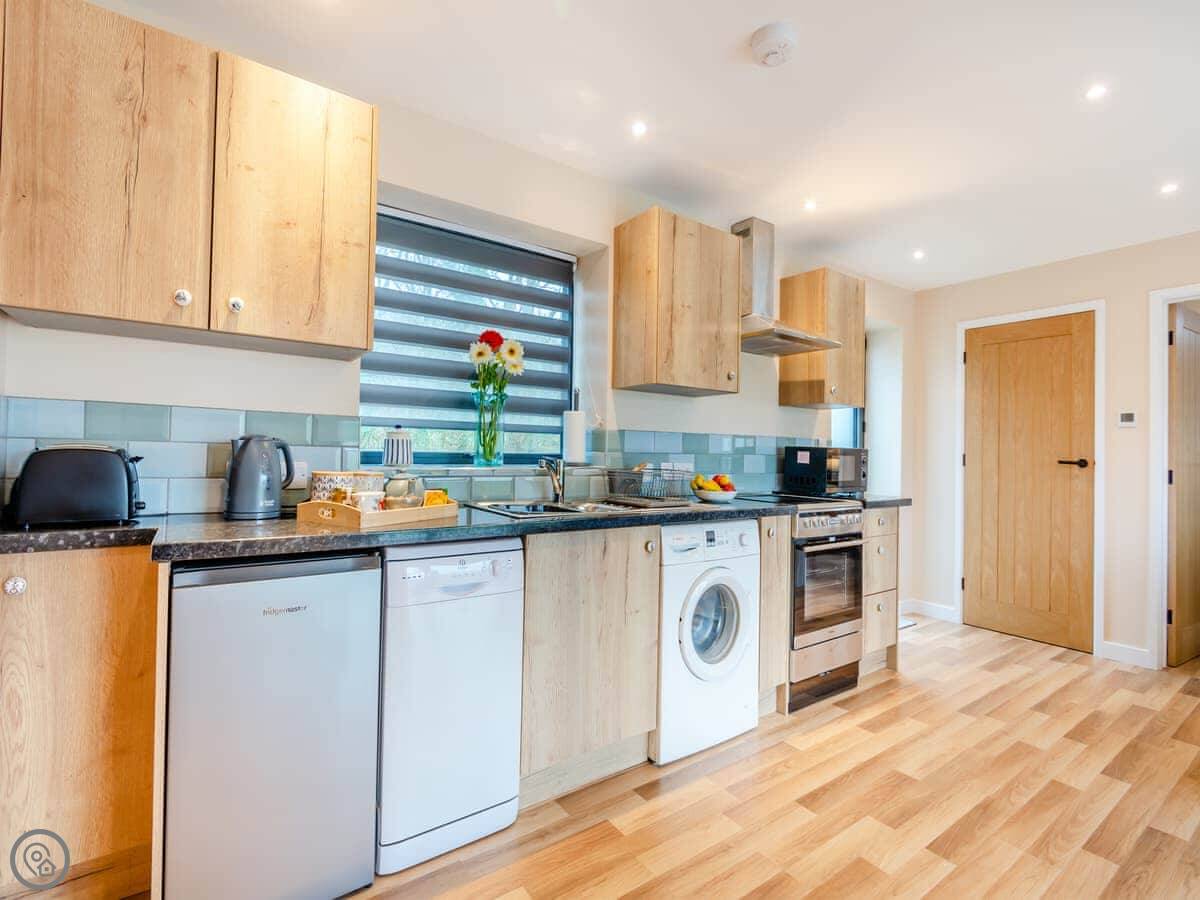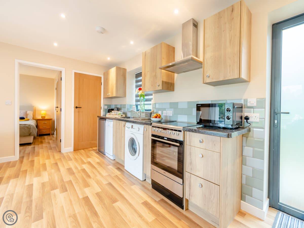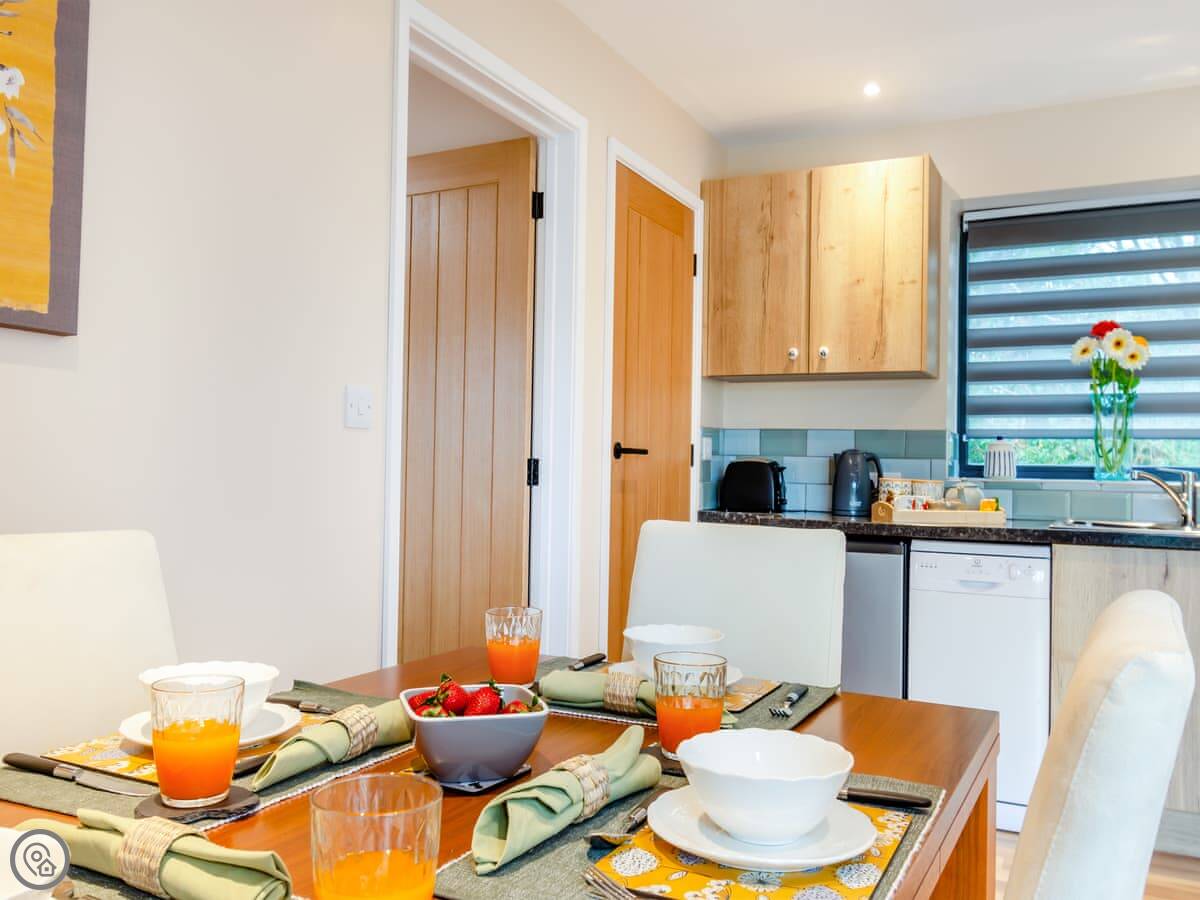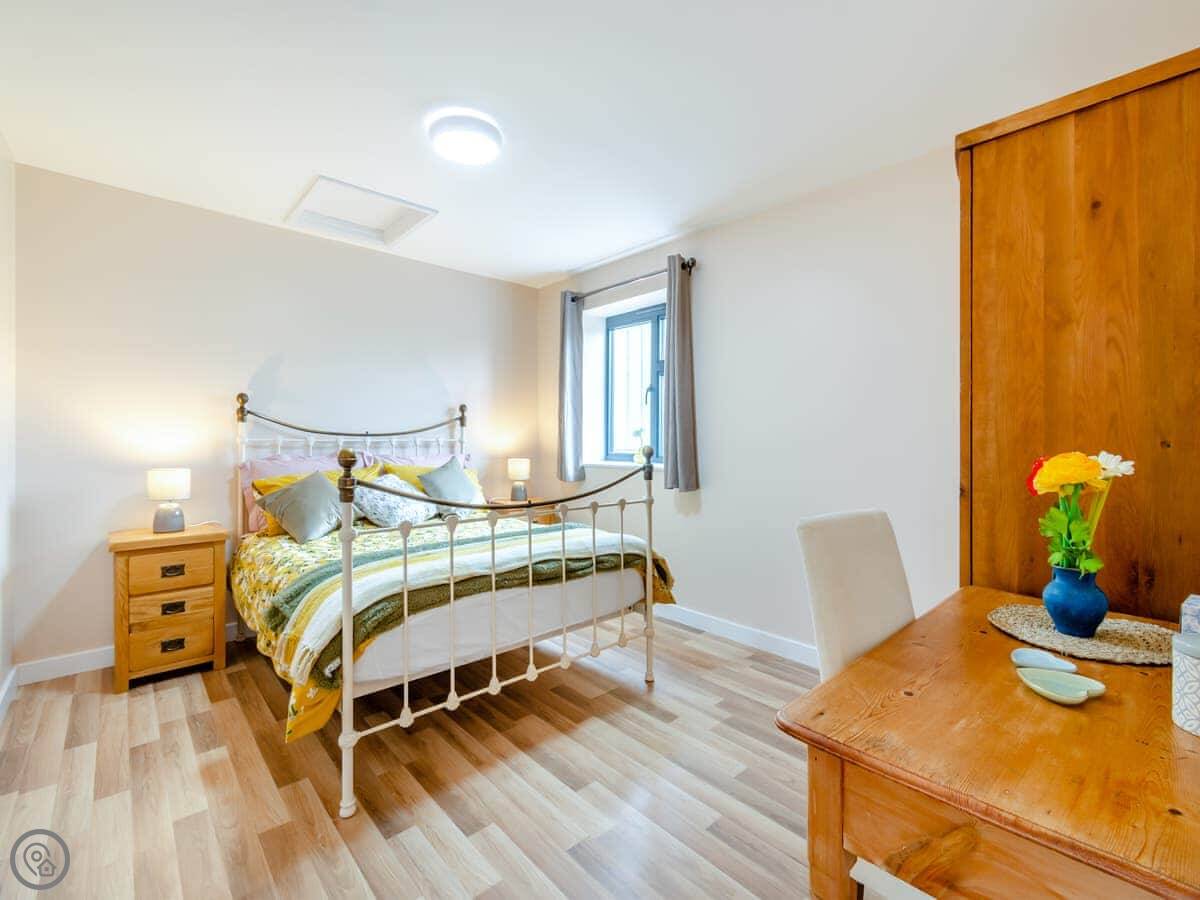 It sleeps four. Two bedrooms, both doubles. Both have their own shower room. Everything is on one level, so no stairs. There's a ramp to the front door.
