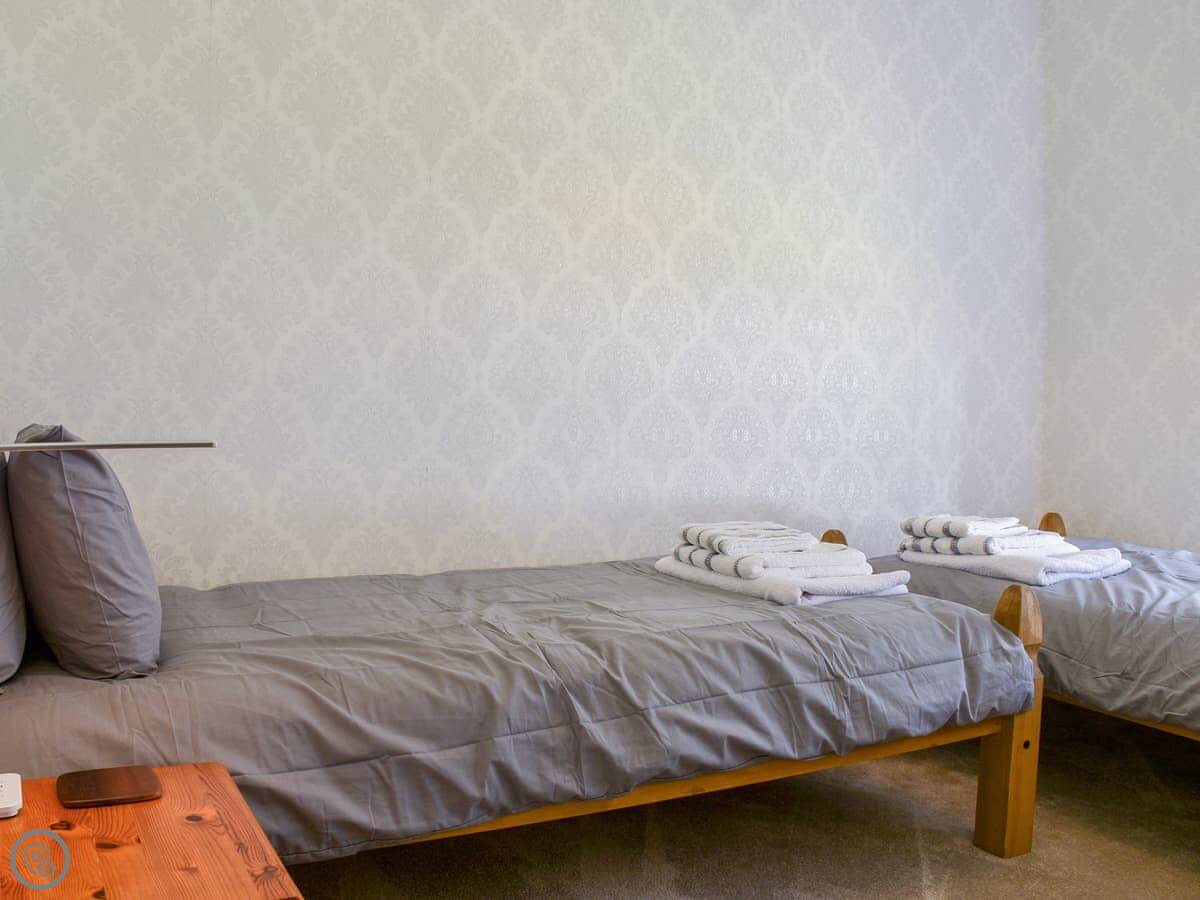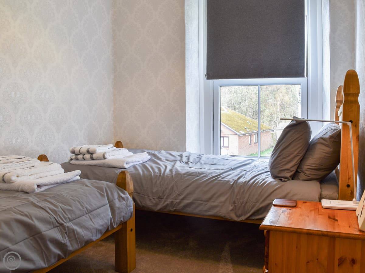It sleeps five. Three bedrooms upstairs, one bathroom downstairs. It's got a 4 Star rating, so it's comfortable and has most things you'd need. The stairs are typical for an old house, a bit narrow.